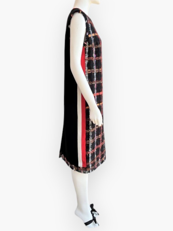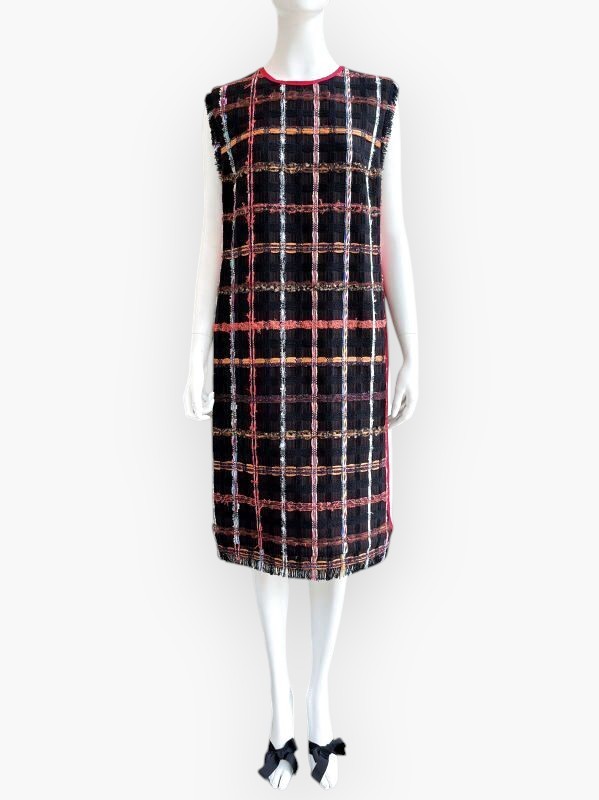 様々な素材の糸でチェック柄を表現したフランス製ツイードの高級感溢れるスペシャルワンピース。