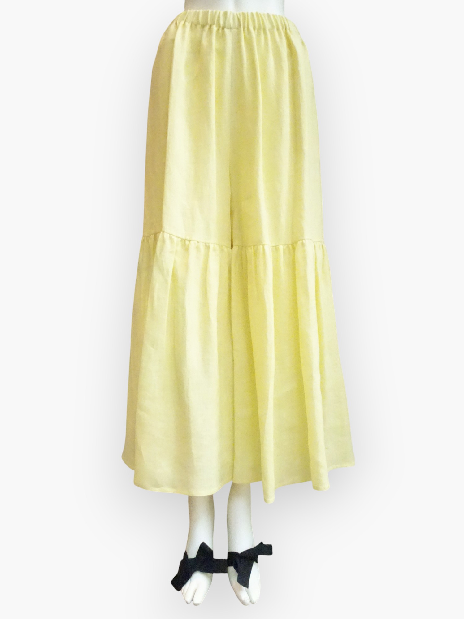 厳選された良質な糸だけを使用し、毛羽立ちが少なく上品な光沢が特徴のフランス産リネン素材のワイドパンツ。