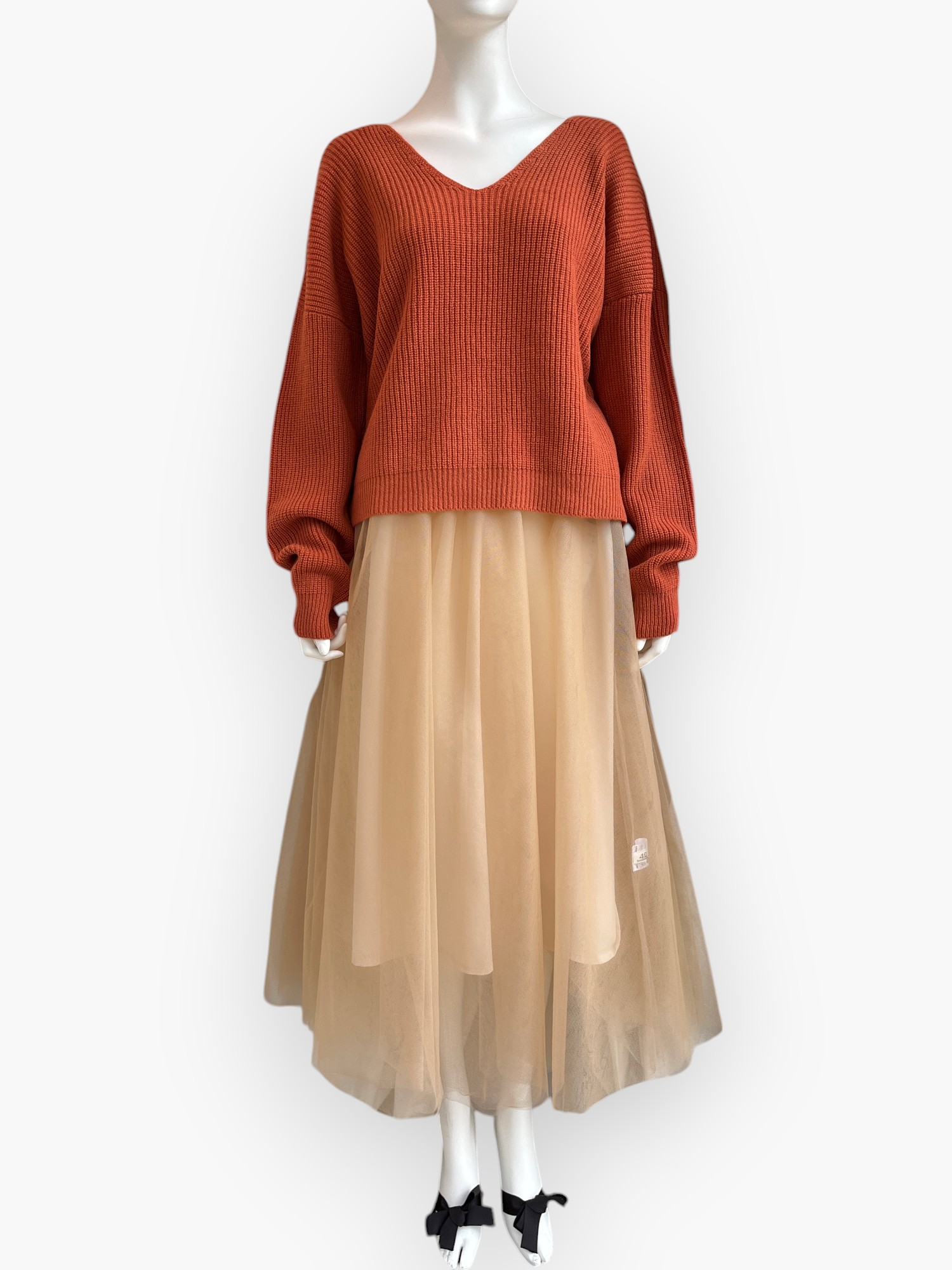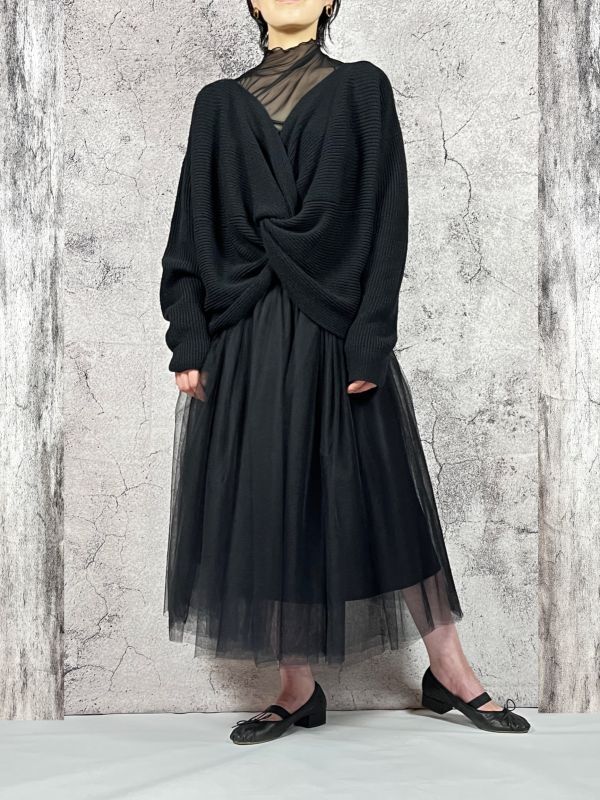 インナーにチュールを重ねたエレガントなスタイリングもおすすめ。