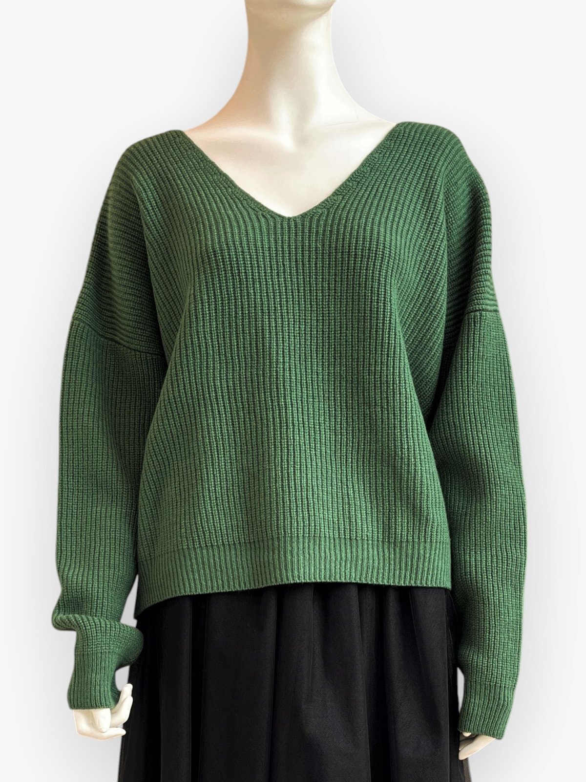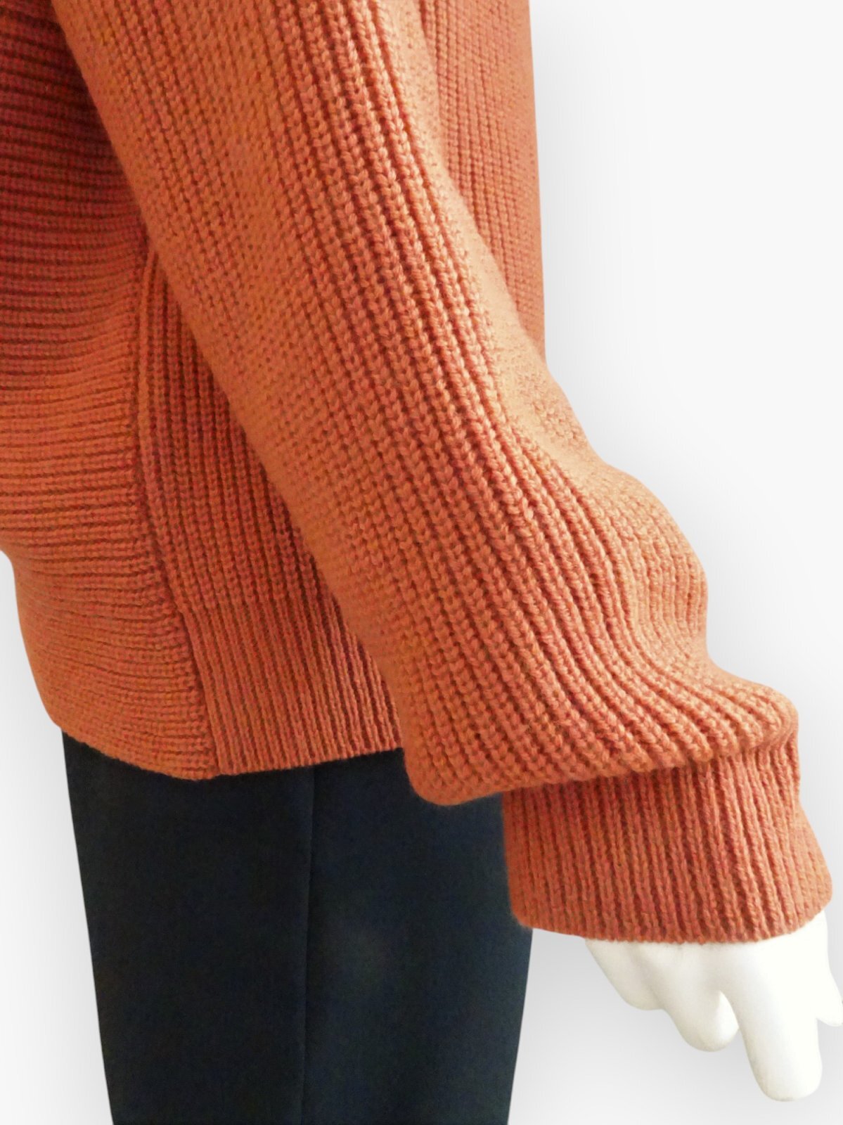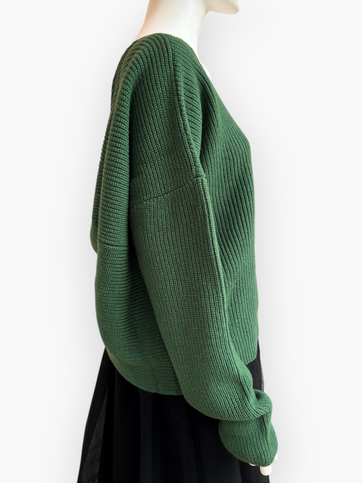 メリノウールとバルキーアクリルをブレンドしたボリューミーで軽いニット。