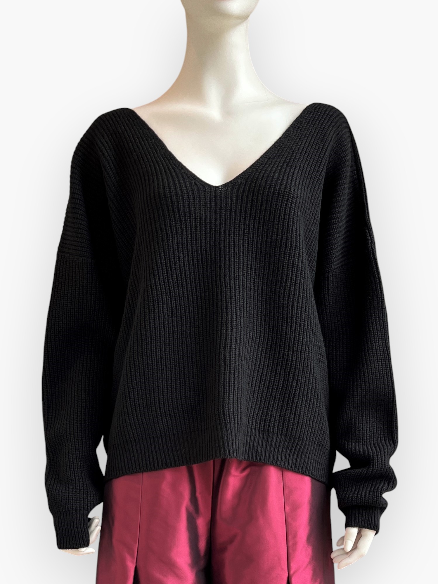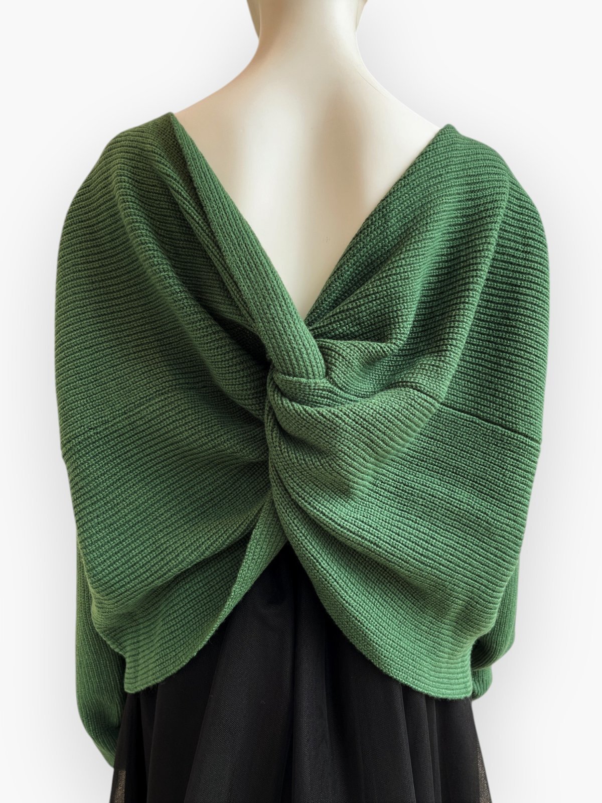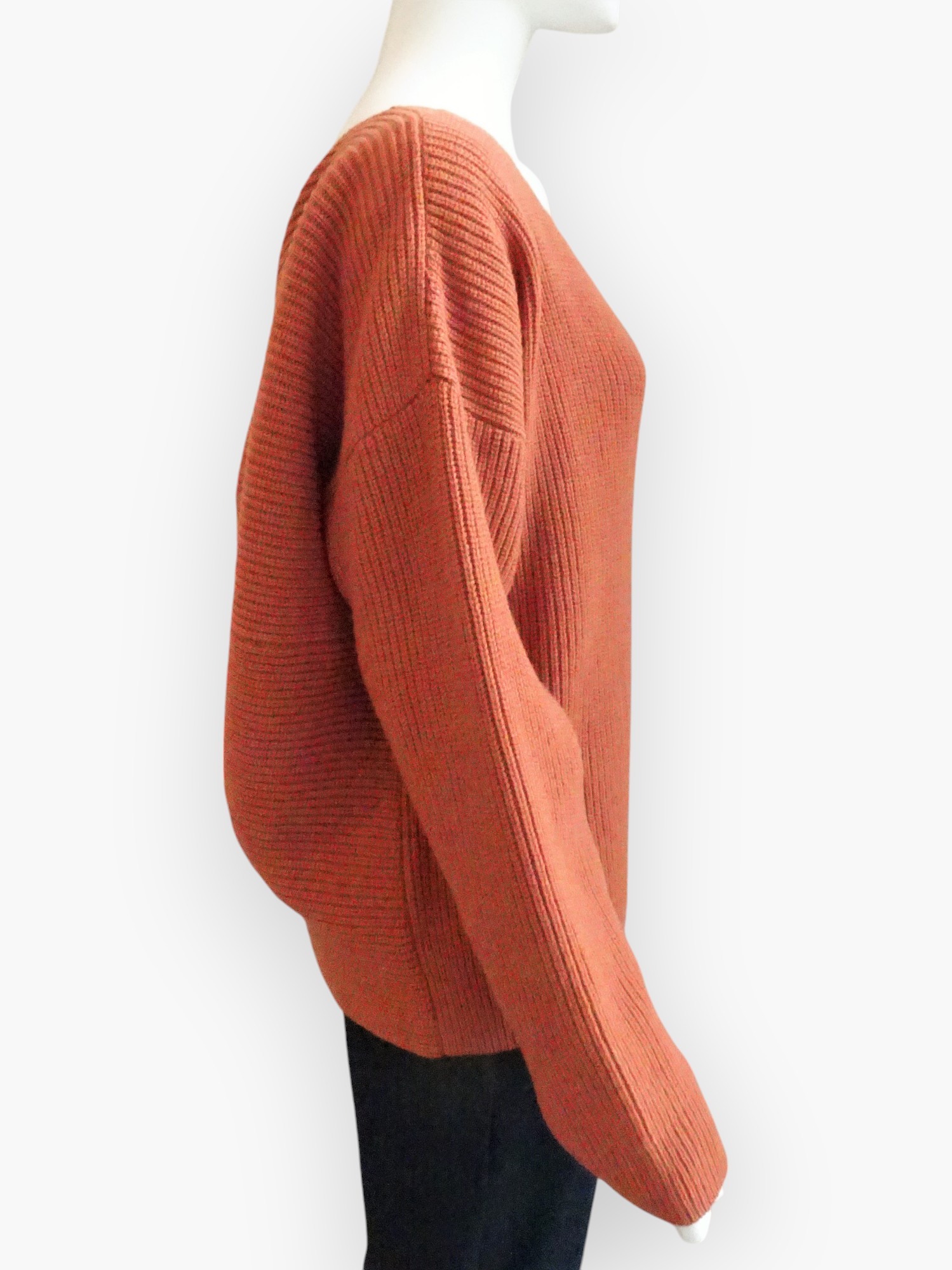メリノウールとバルキーアクリルをブレンドしたボリューミーで軽いニット。
