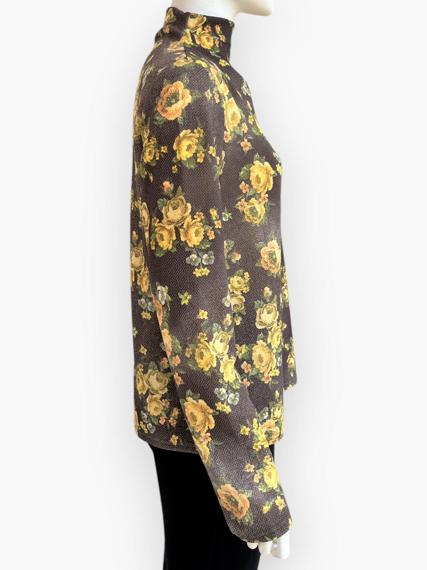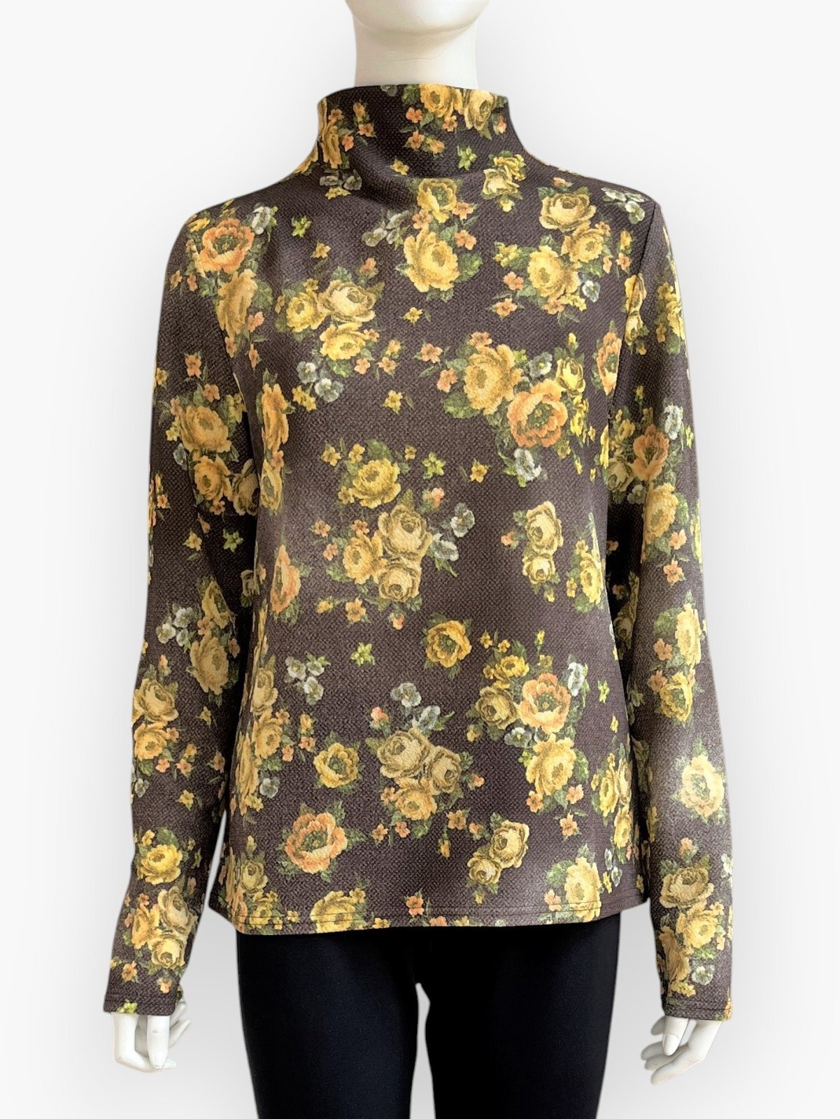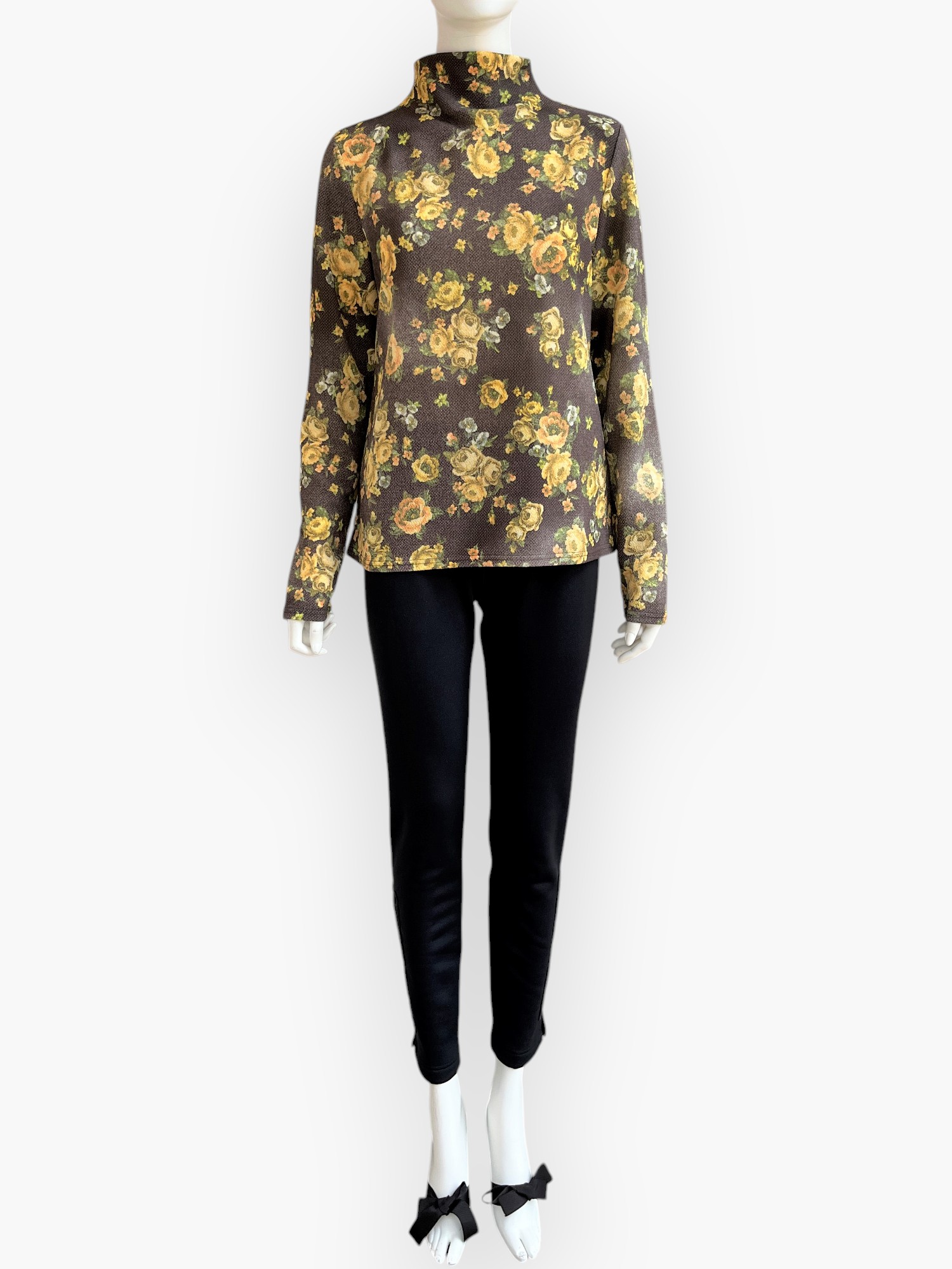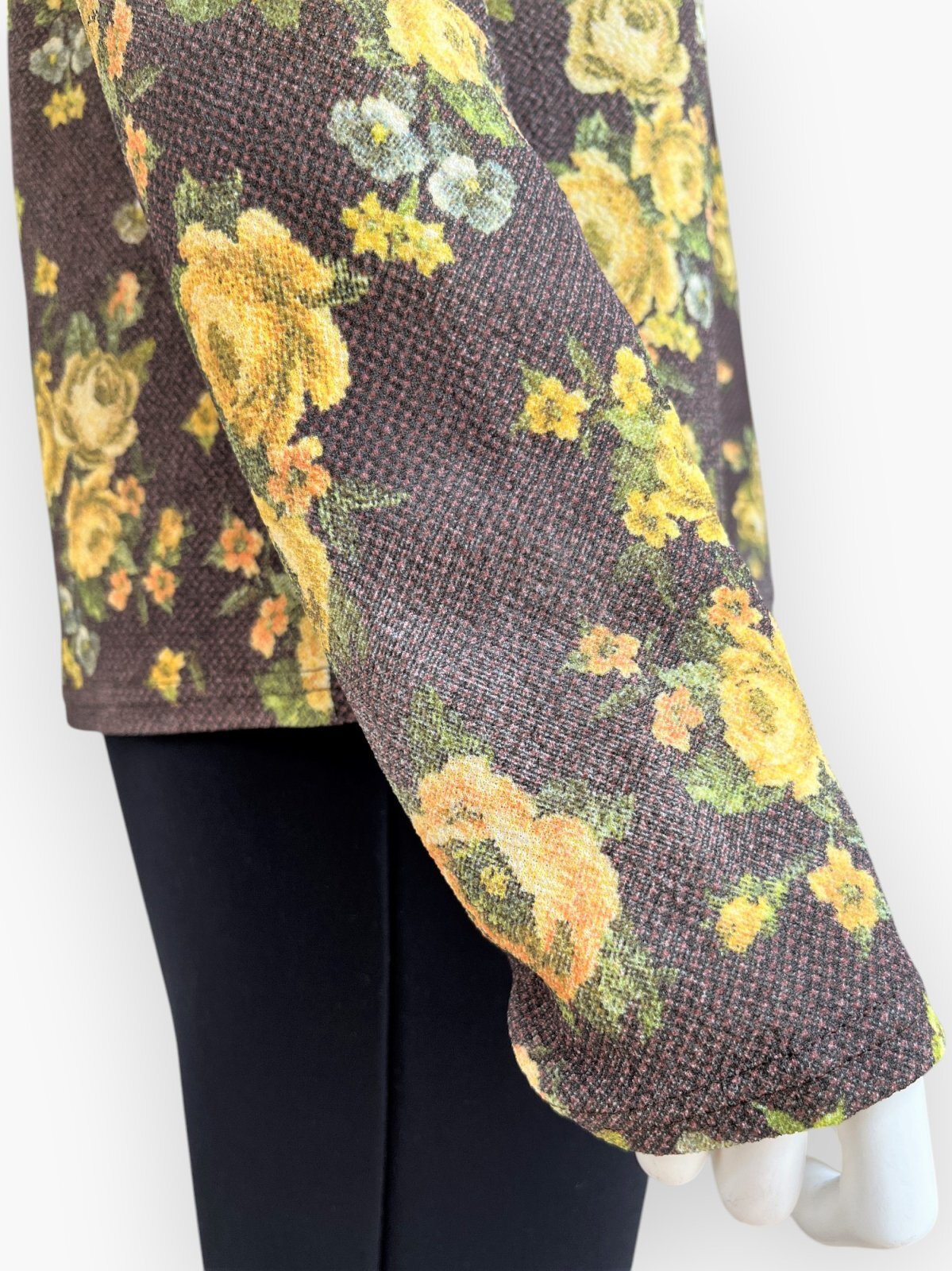 ふくらみと軽量感のある凸凹組織のアムンゼン素材に所々かすれたシャビ―感をだしたオリジナルフラワープリントカットソー。