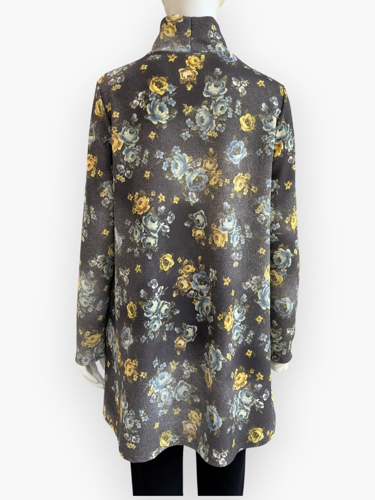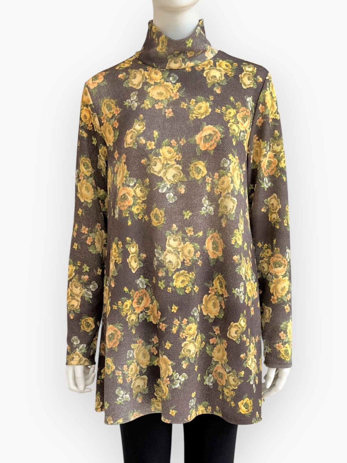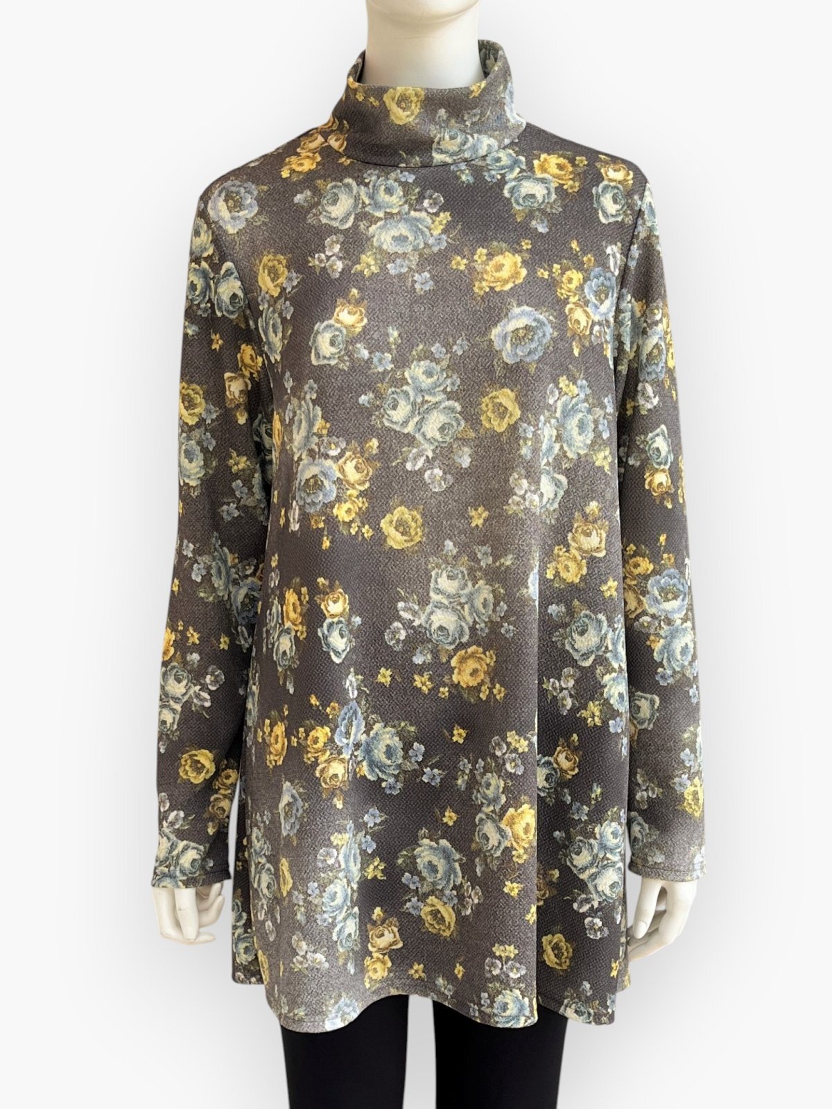 ふくらみと軽量感のある凸凹組織のアムンゼン素材に所々かすれたシャビ―感をだしたオリジナルフラワープリントチュニック。
