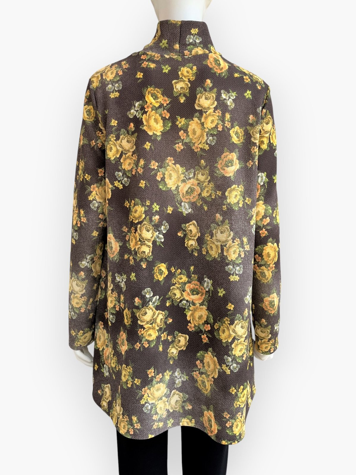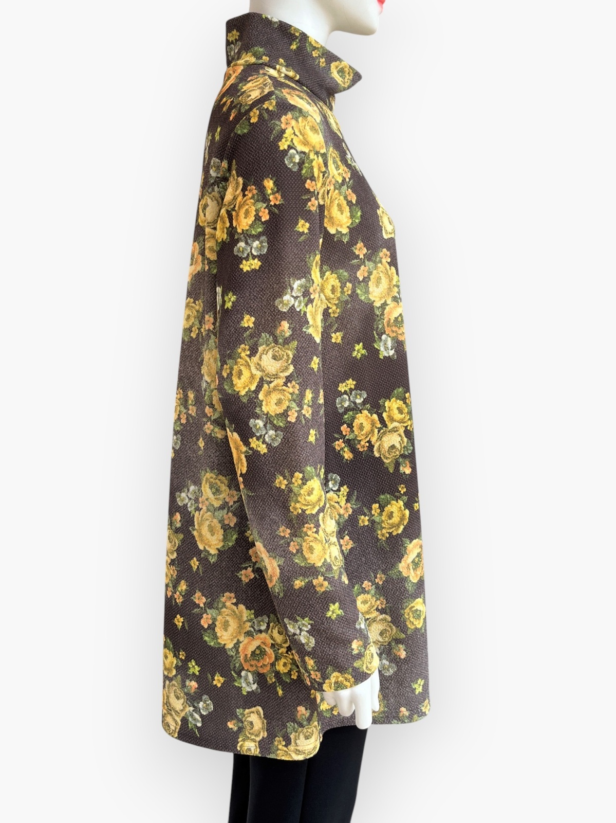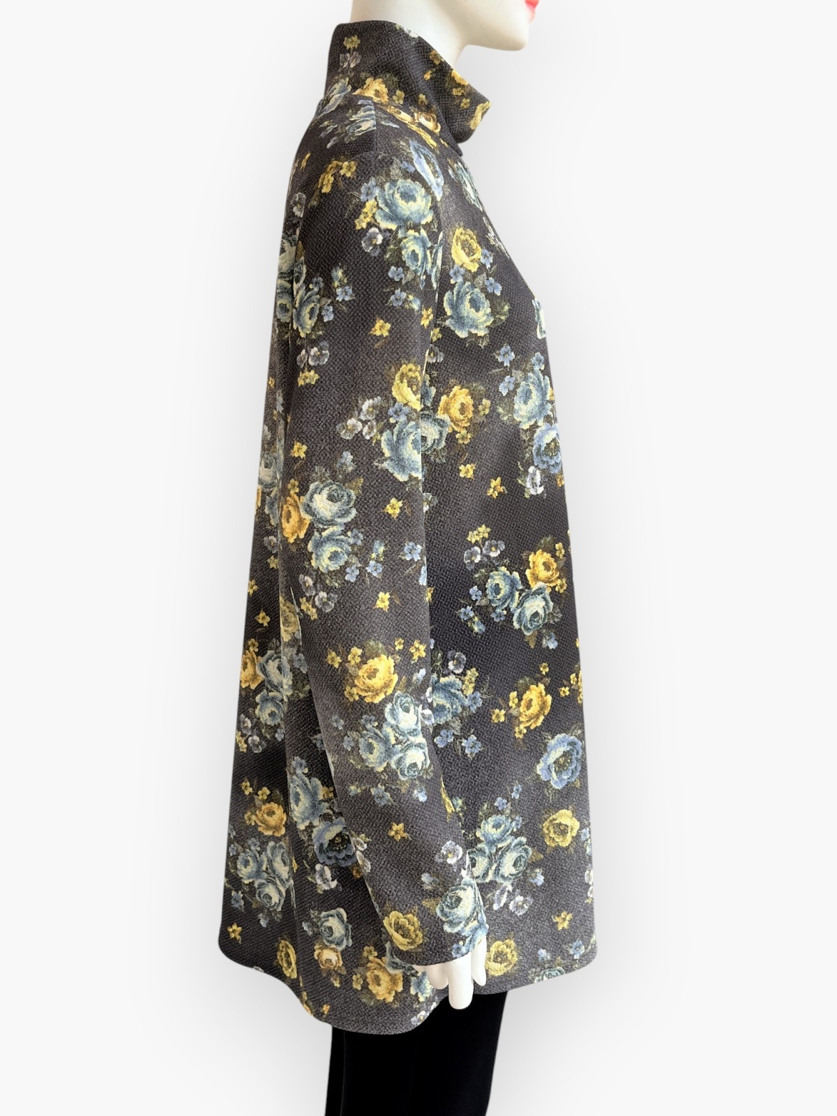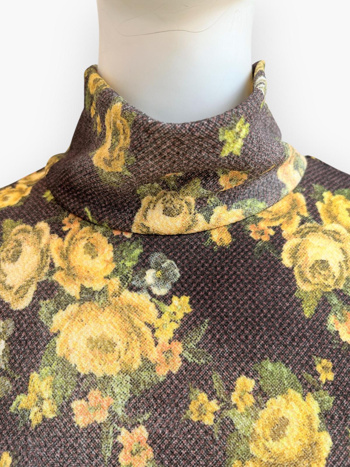 ふくらみと軽量感のある凸凹組織のアムンゼン素材に所々かすれたシャビ―感をだしたオリジナルフラワープリントチュニック。
