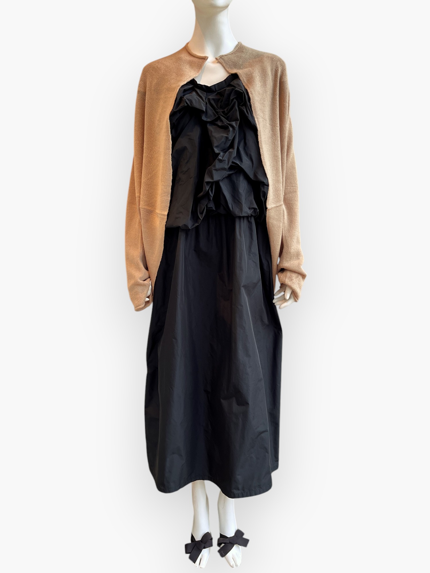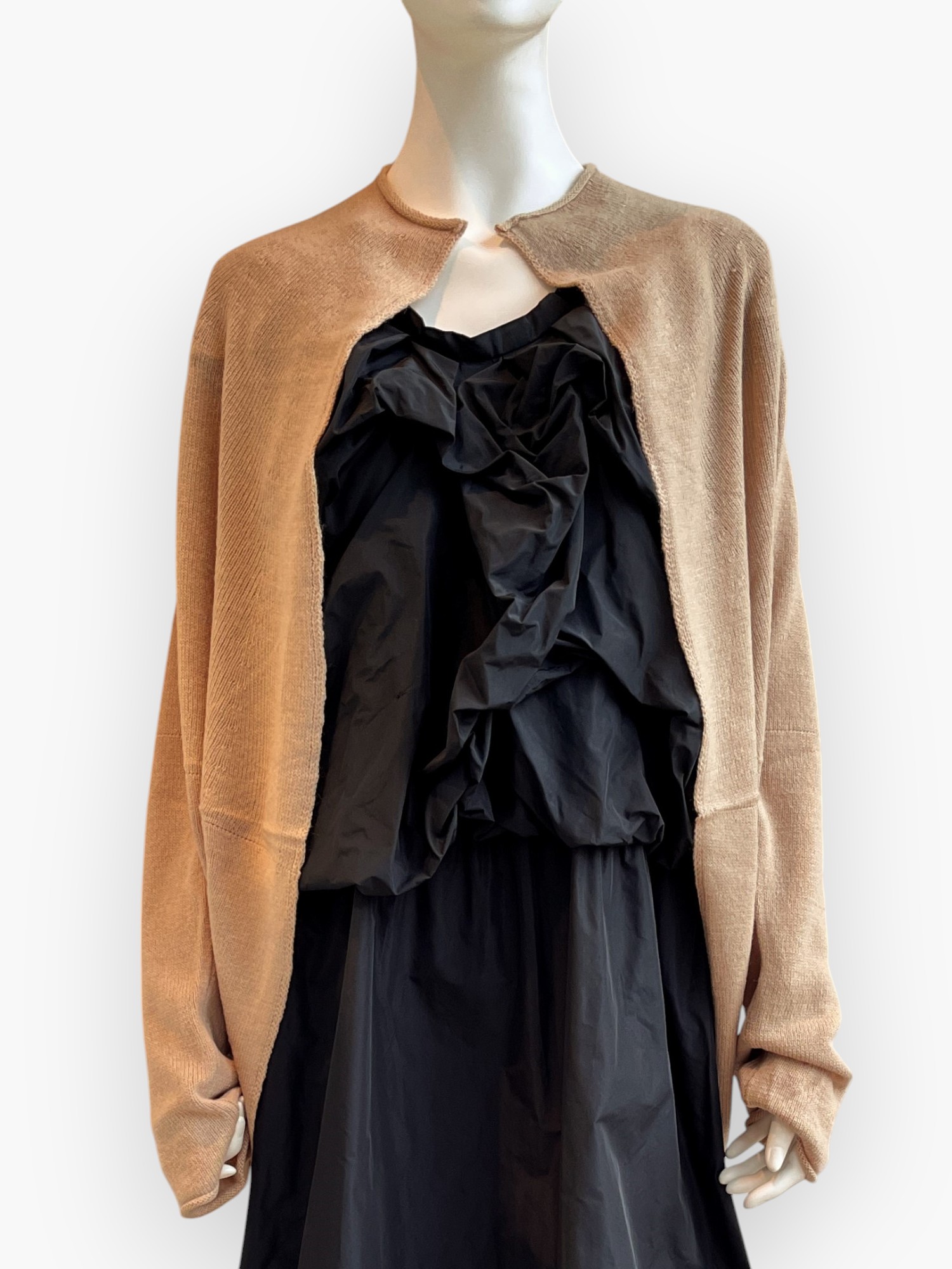 体をつつみこむ様な優しいシルエットのニットカーディガン。