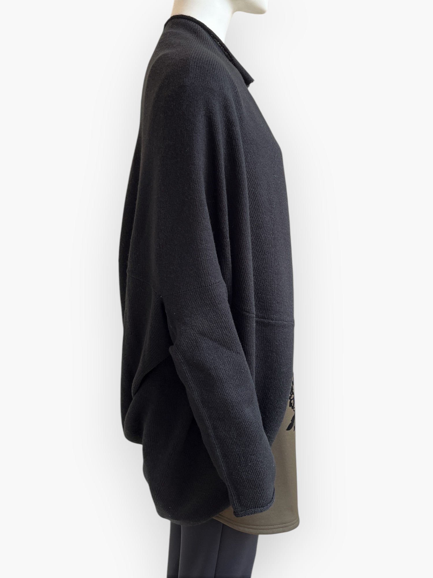 横から、後ろから見た印象もやわらかくゆったりした着心地の一枚。