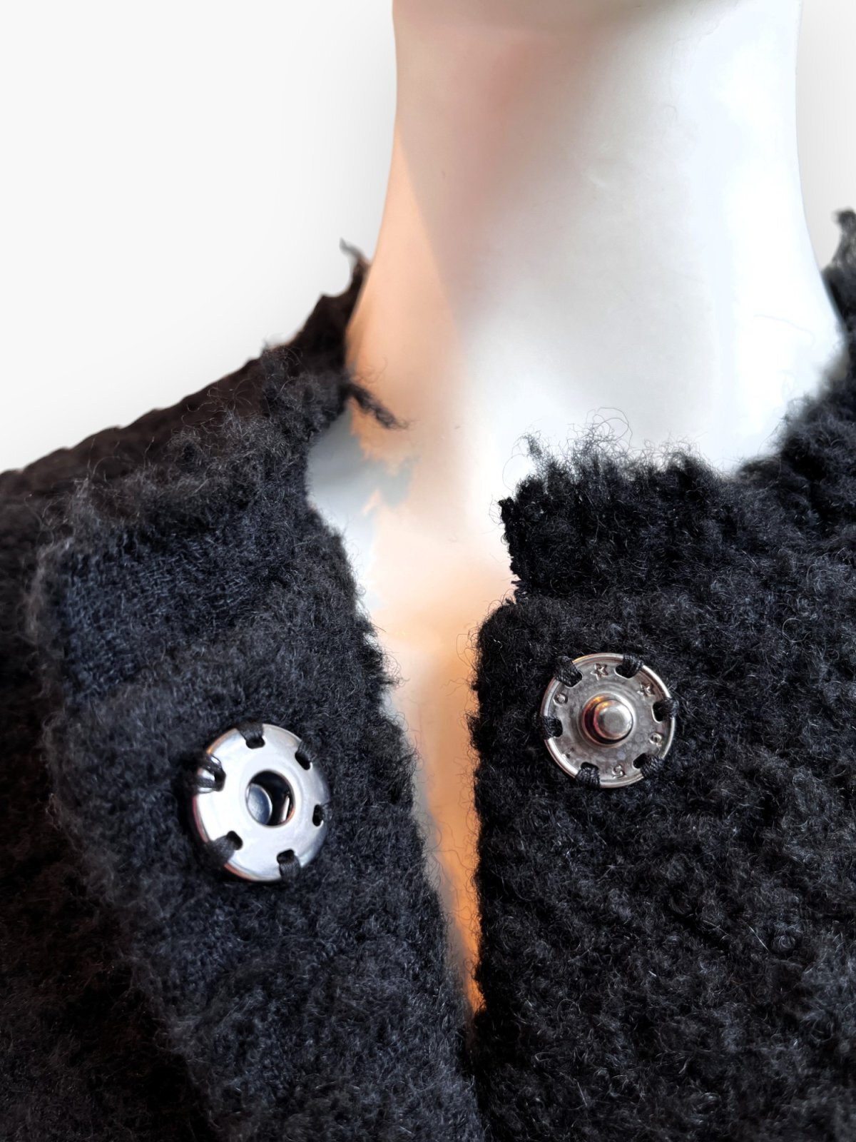 大きめのポケットや大きさの違うパールボタンなどディティールにもこだわりました。