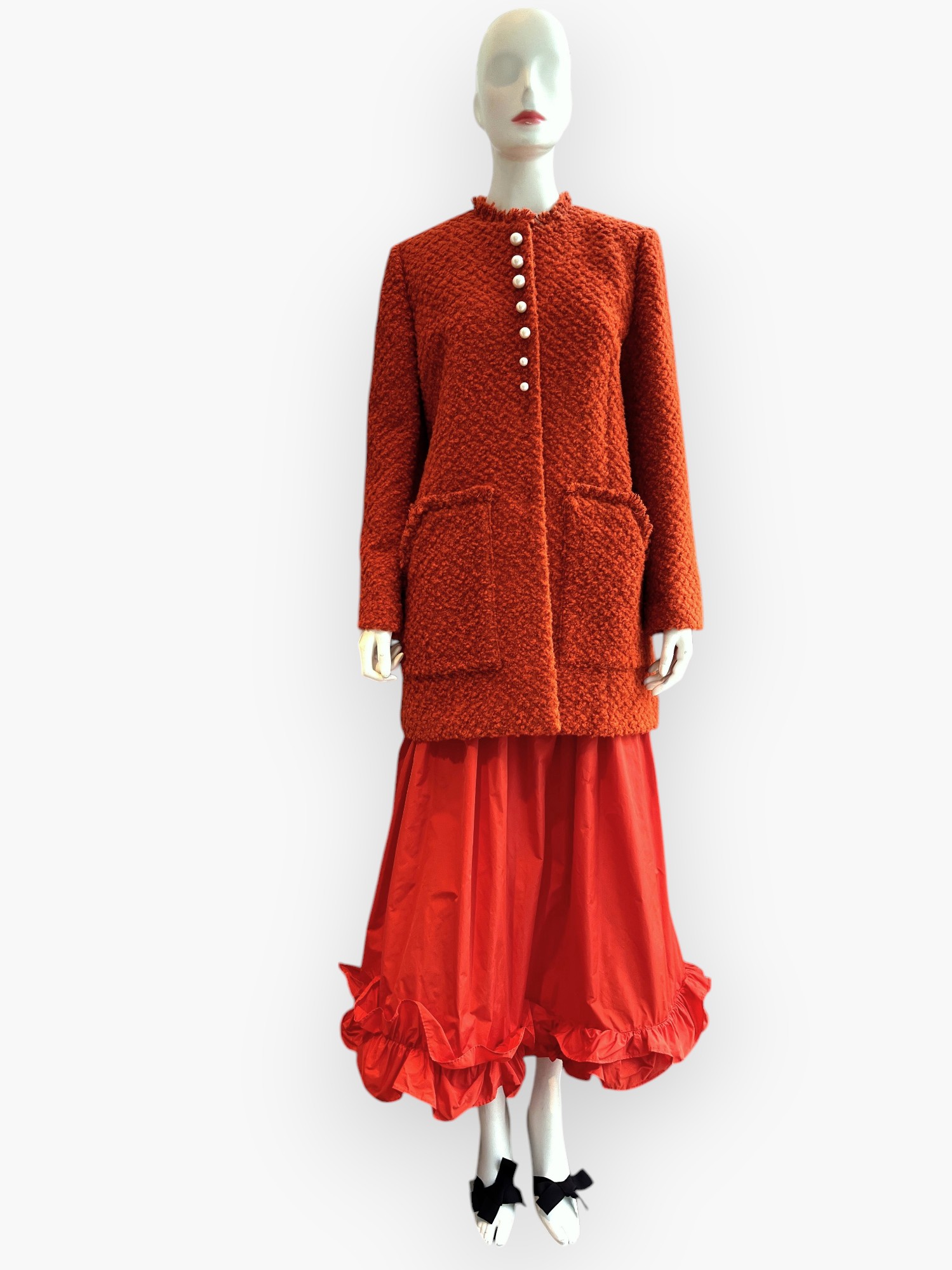 ウールのループ糸を織り込みその部分をわた状に起毛させたフワフワした立体感と軽さが特徴的なツイード生地です。