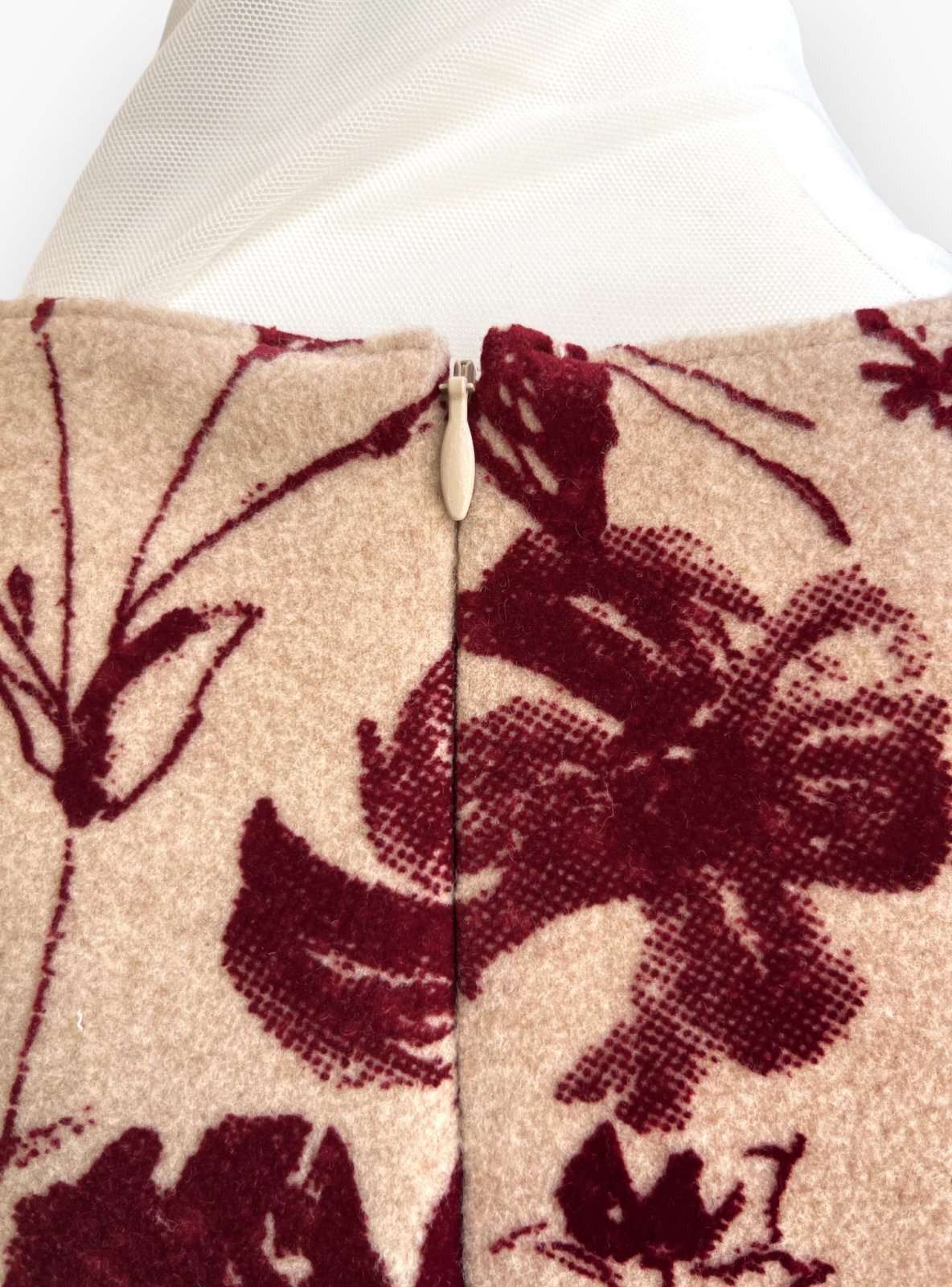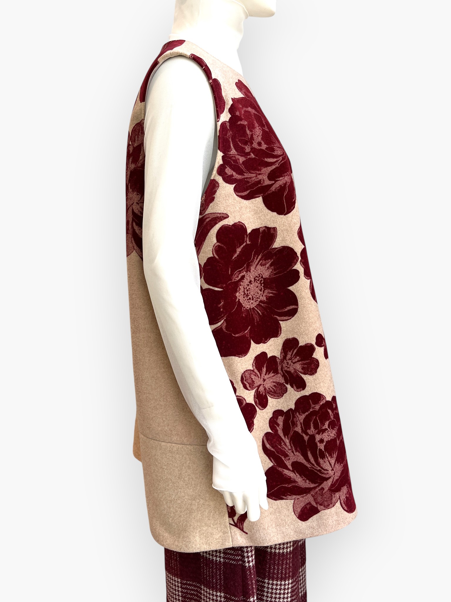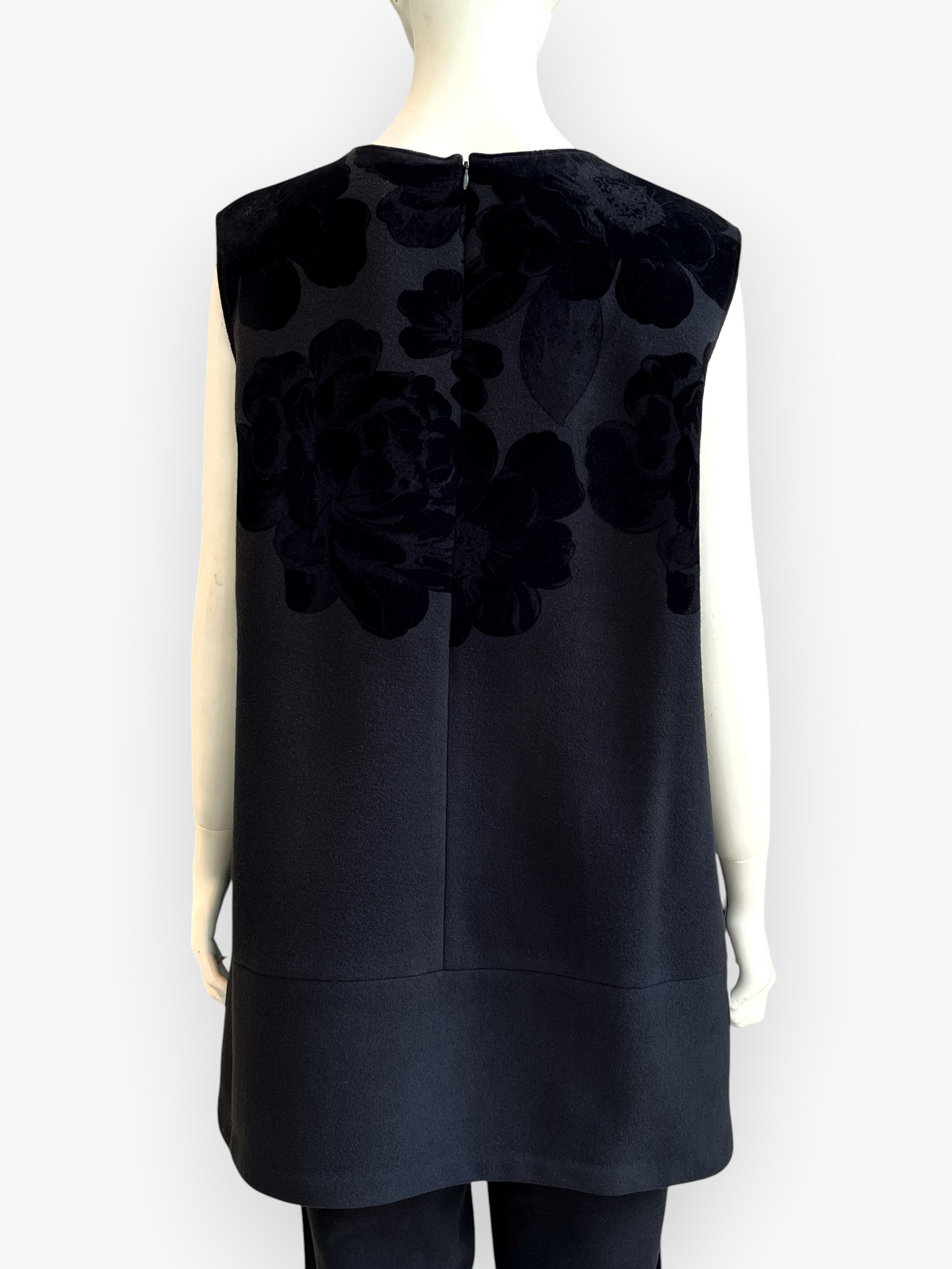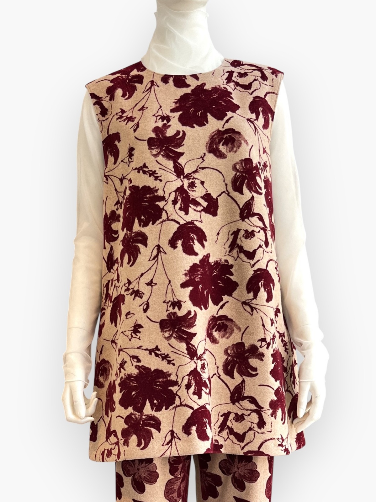 インパクトのある大柄フラワーと合わせやすい総柄フラワーをフロッキー加工したチュニック。