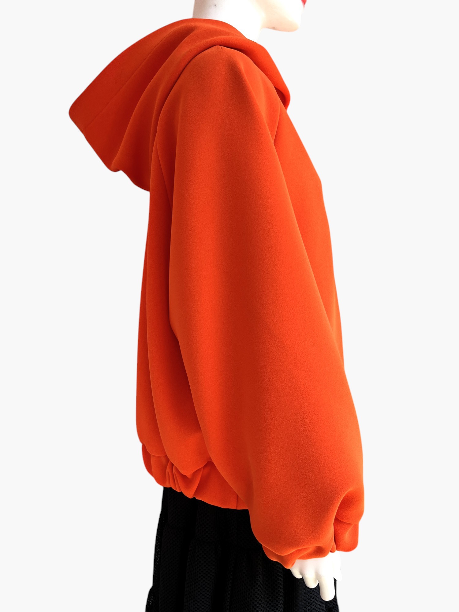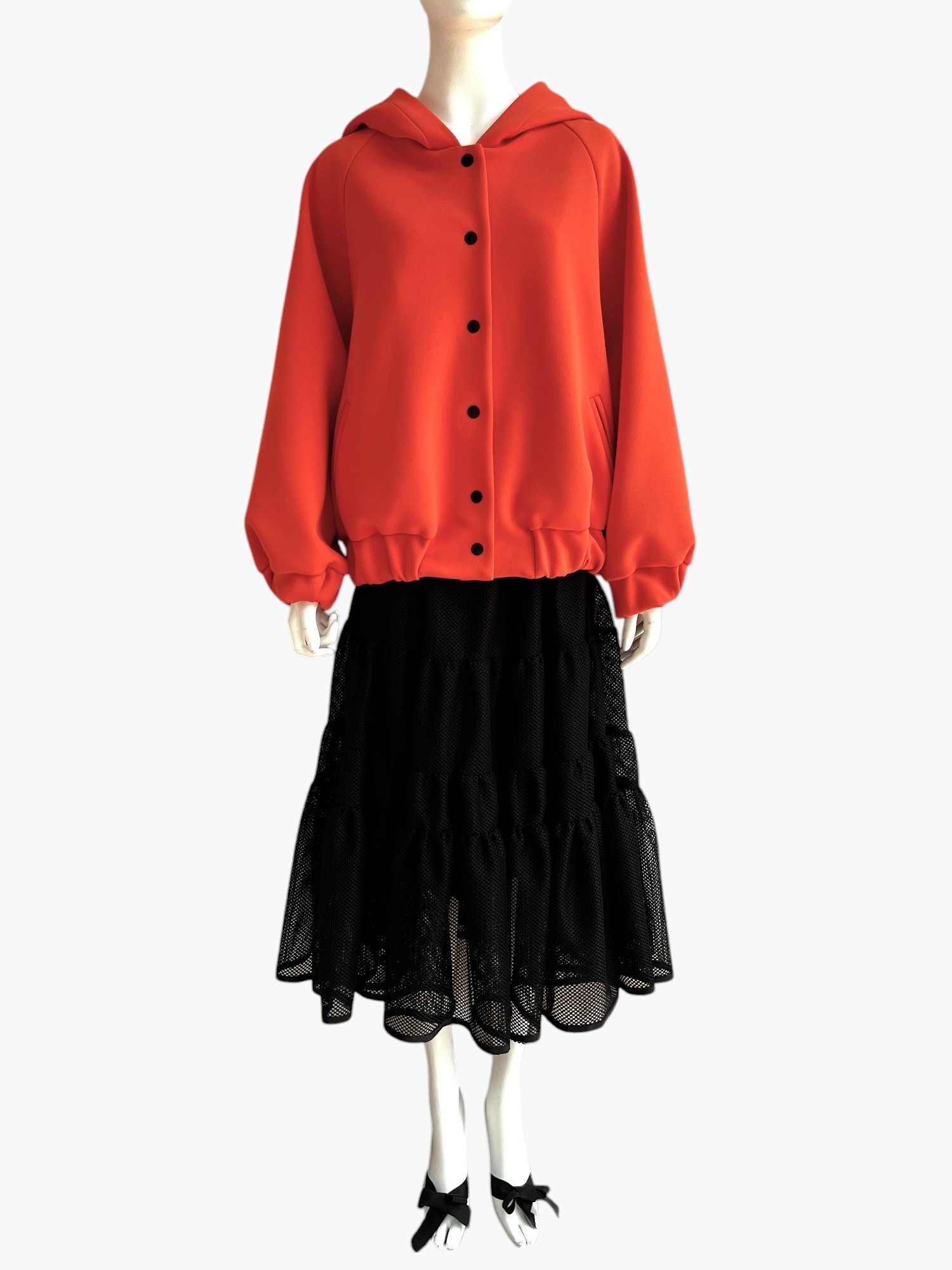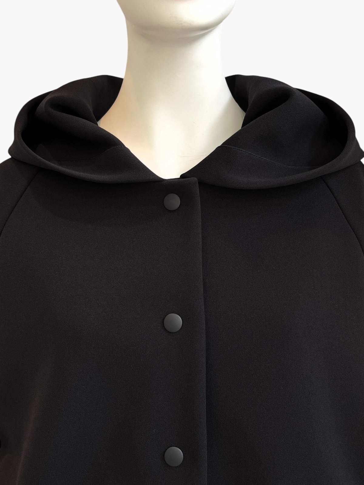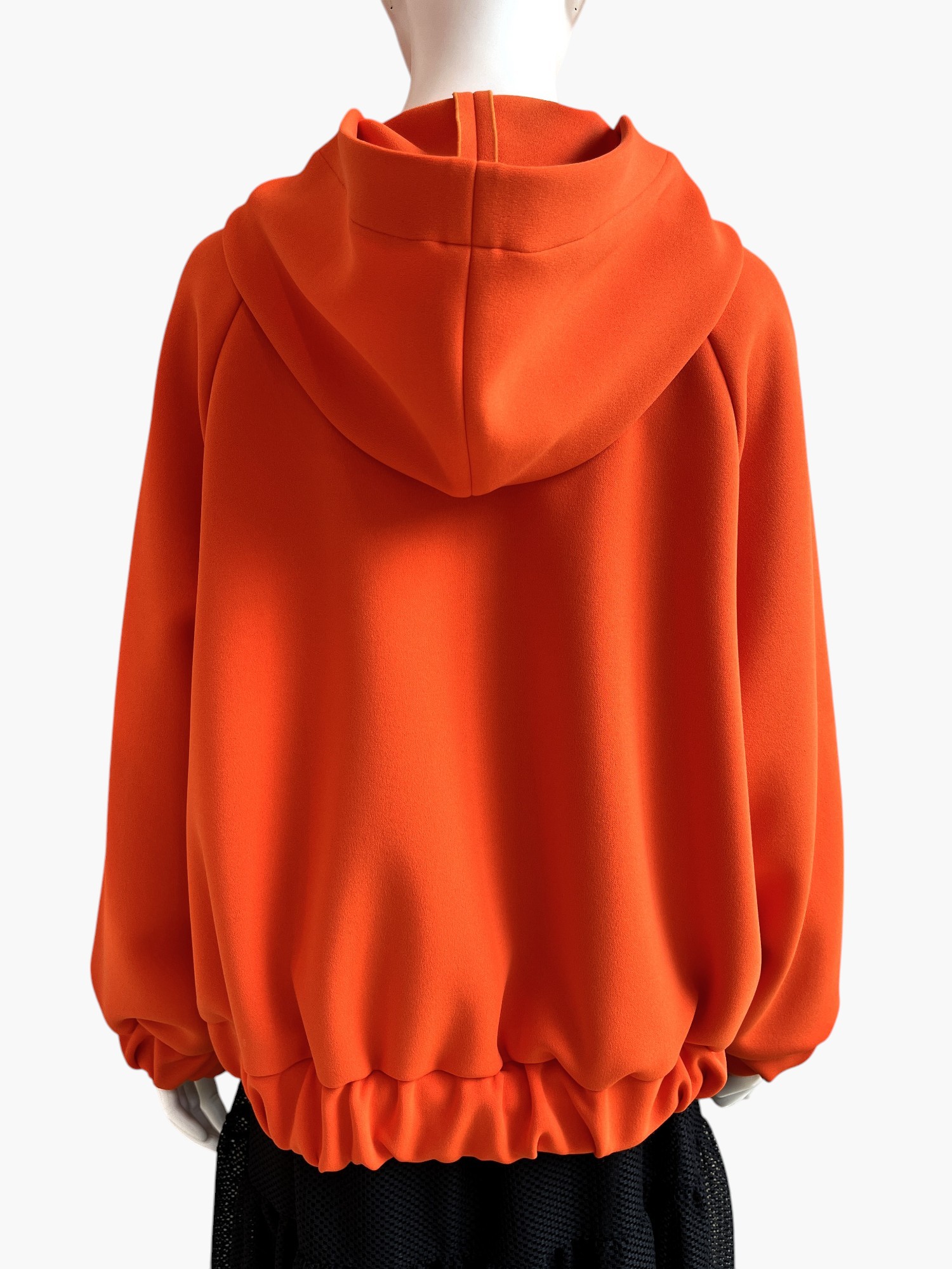 重厚感あるジャージー素材で仕立てたフード付きブルゾン。