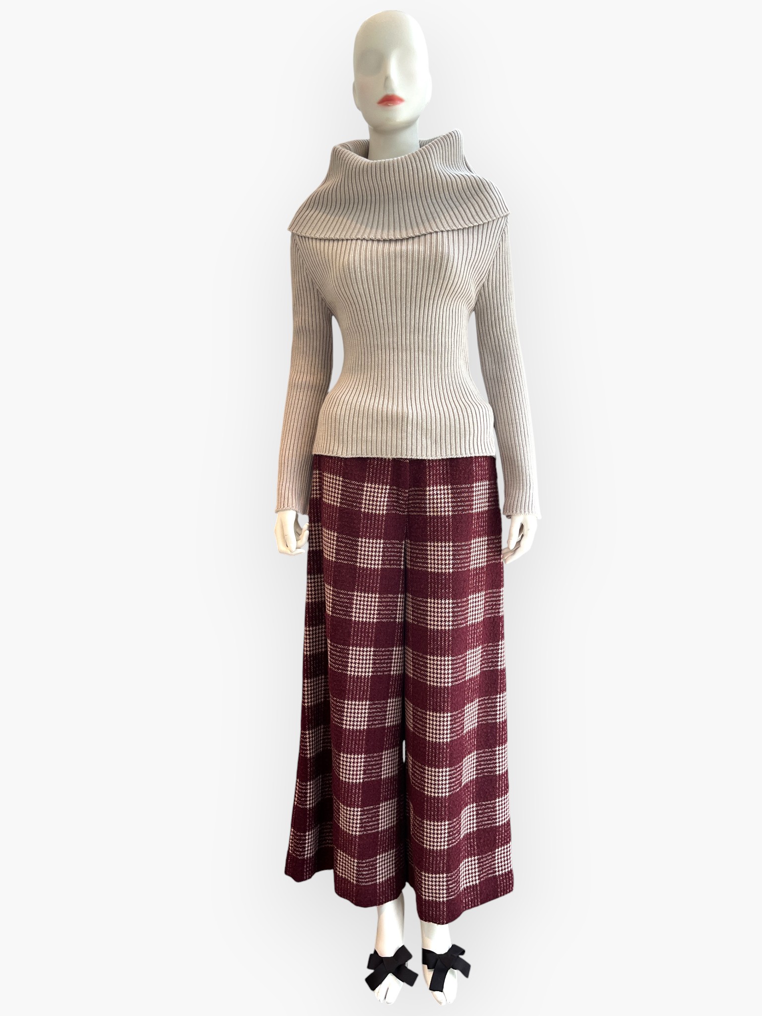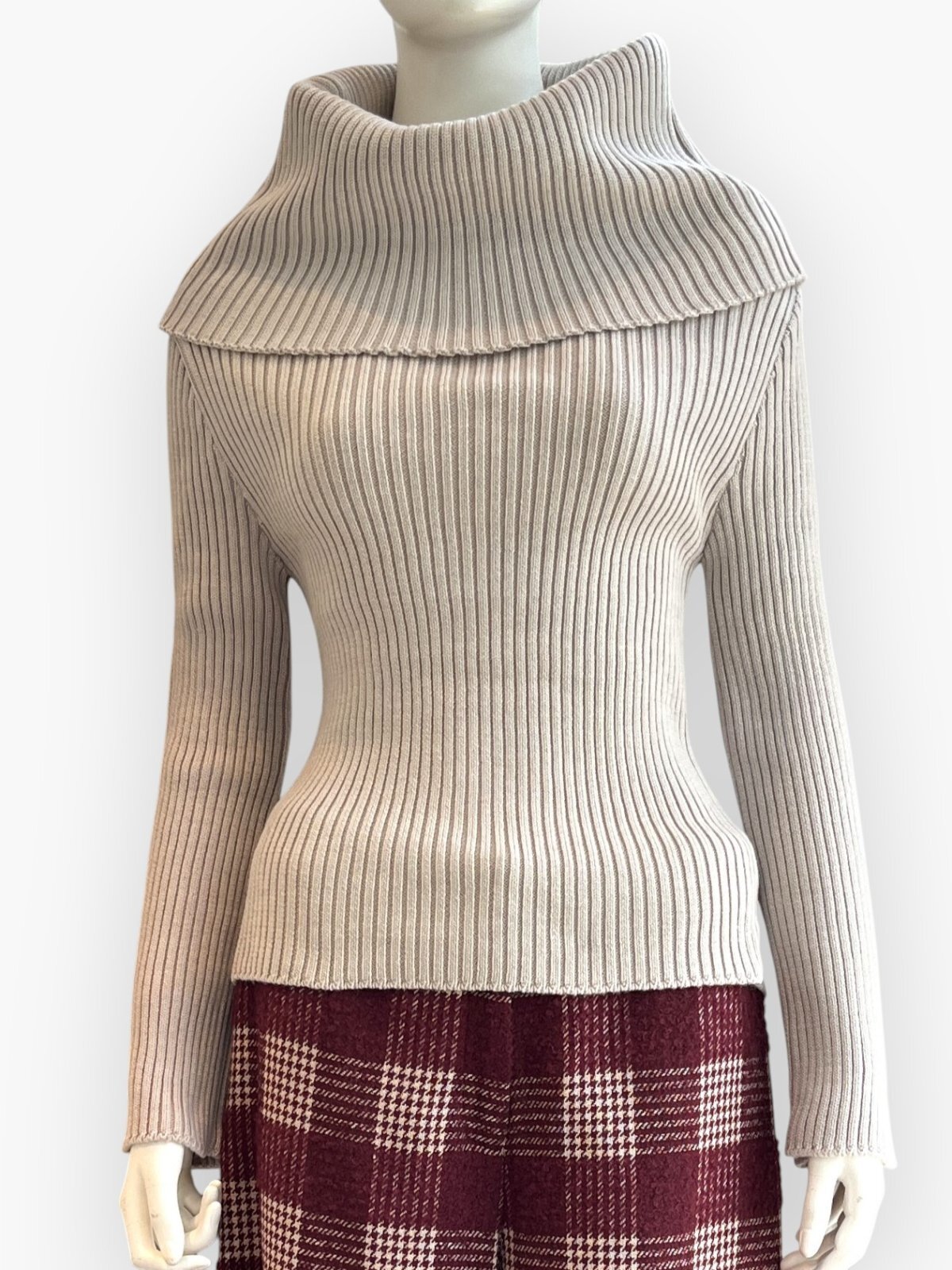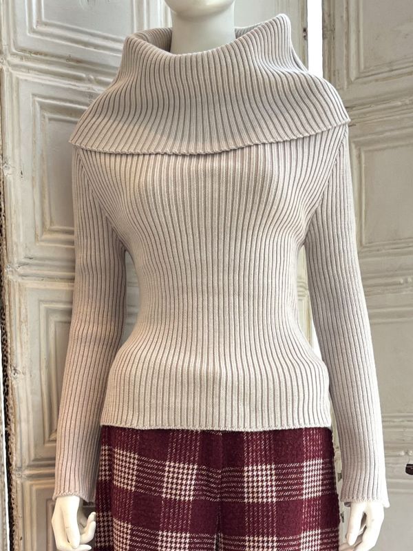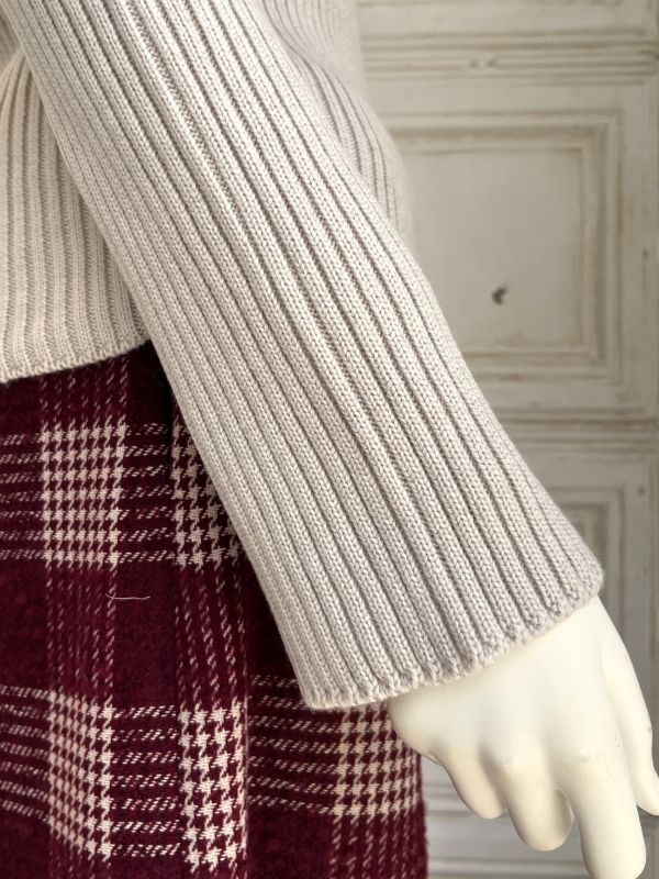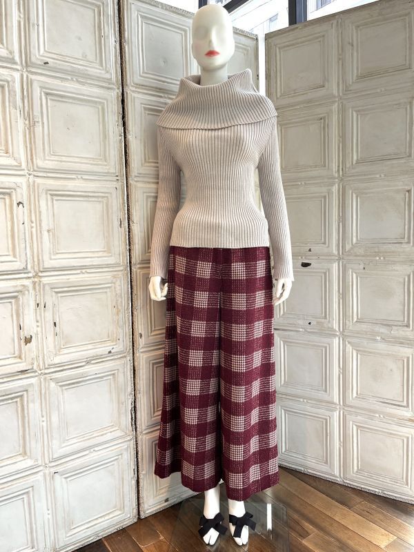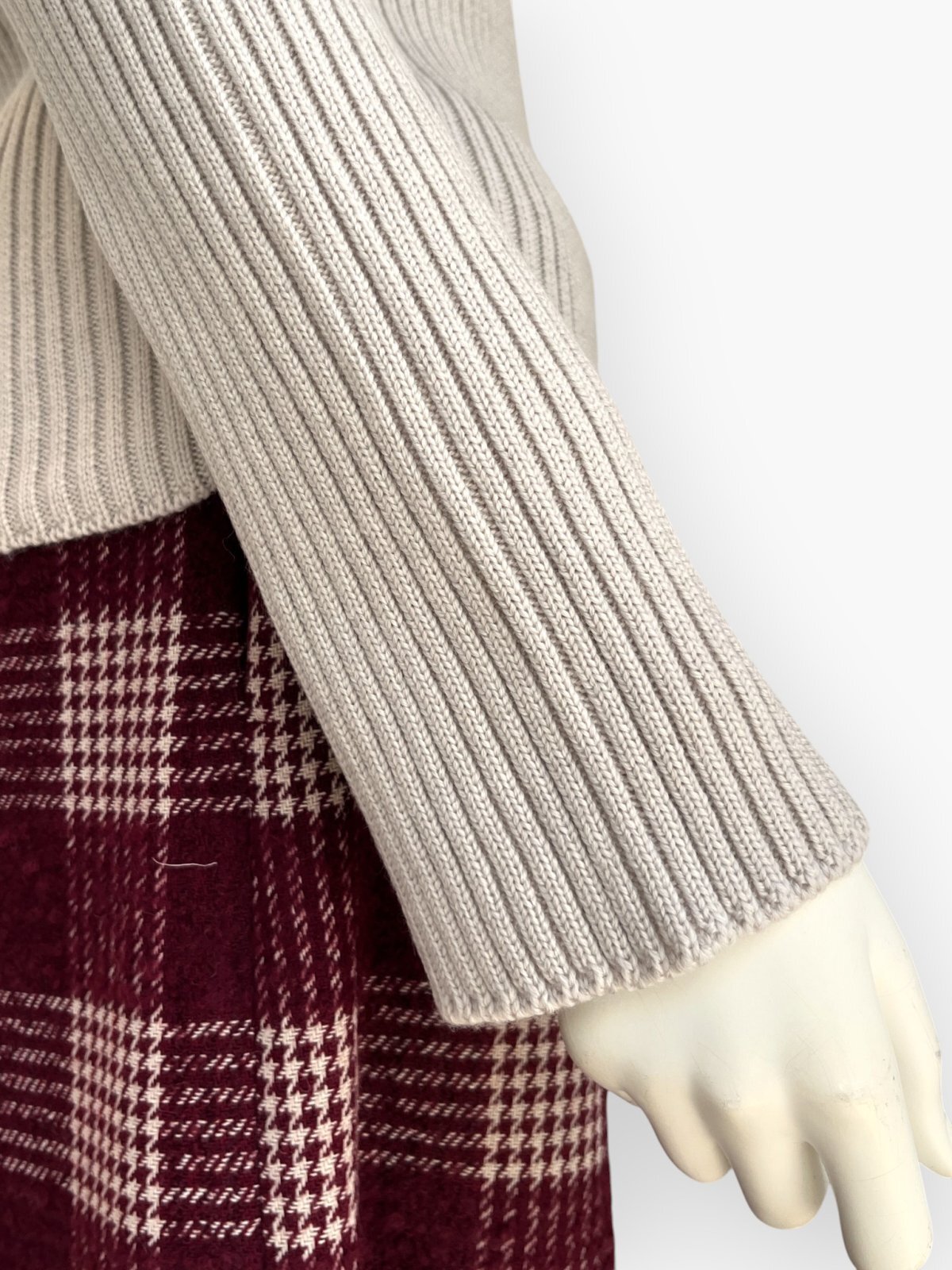 ざっくりとしたリブニットは伸縮性があり、リブが縦のラインを強調してすっきりとした印象を与えてくれます。