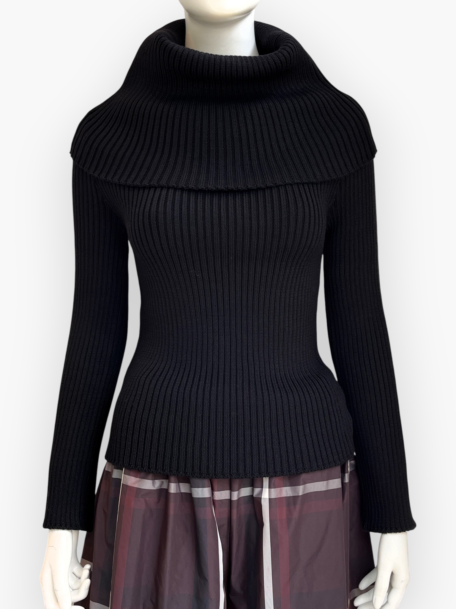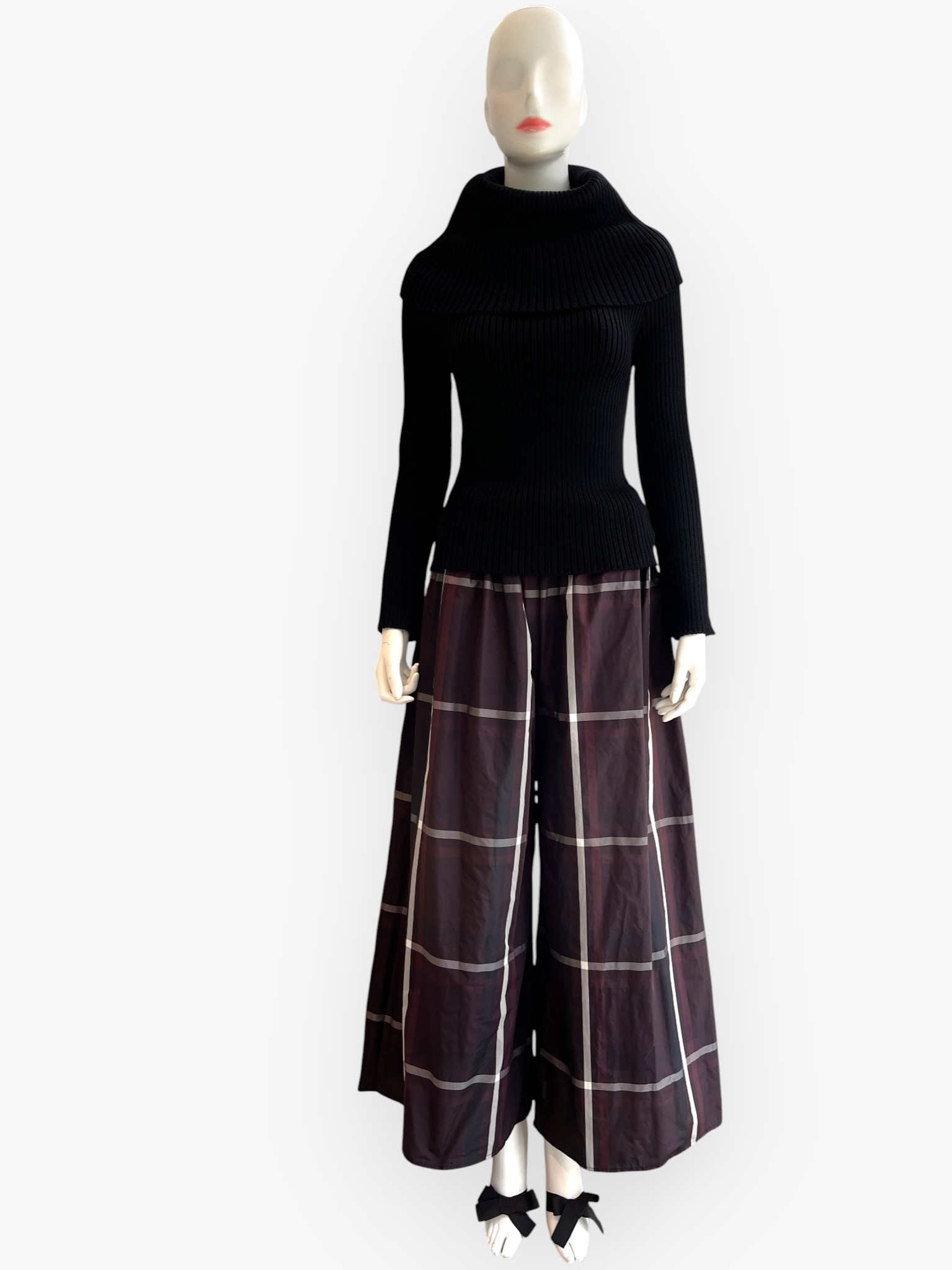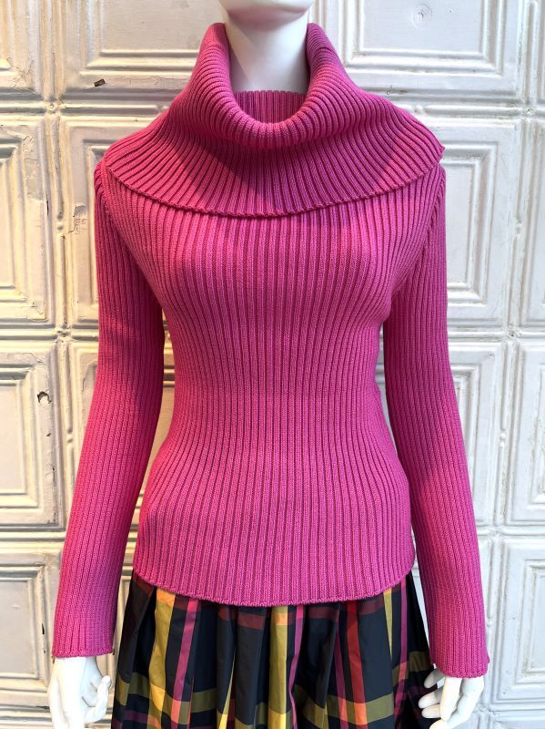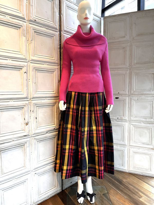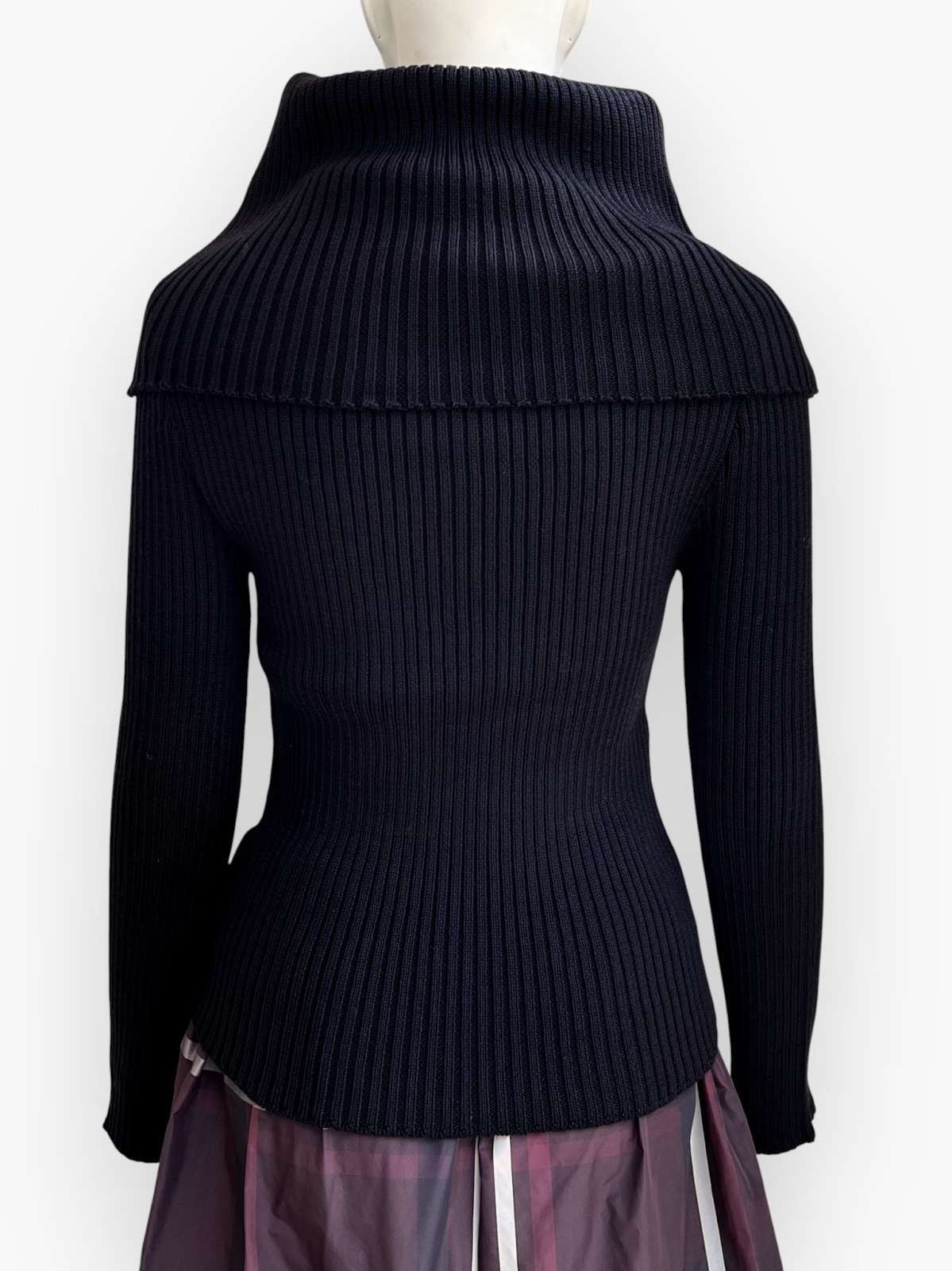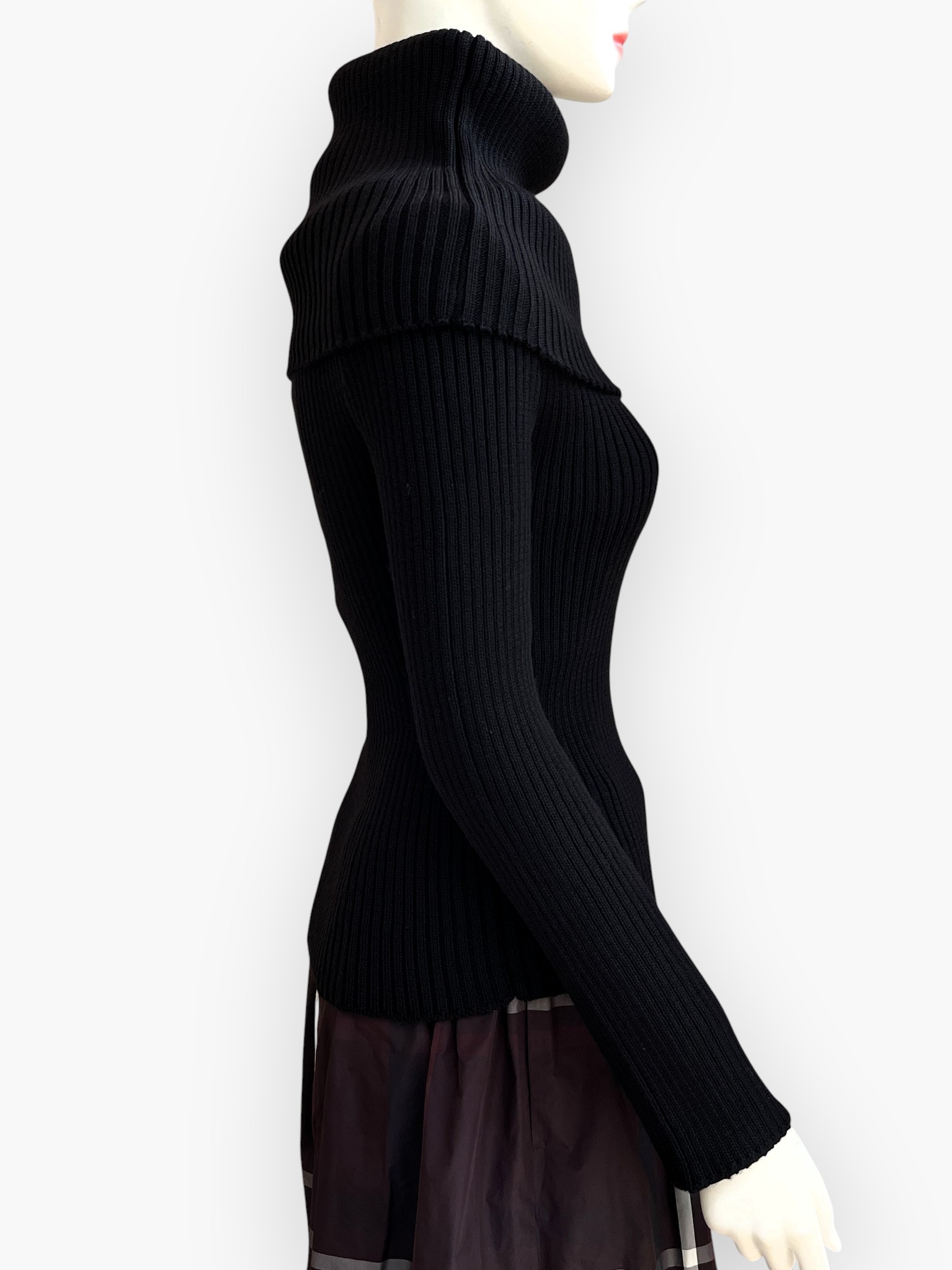 ざっくりとしたリブニットは伸縮性があり、リブが縦のラインを強調してすっきりとした印象を与えてくれます。