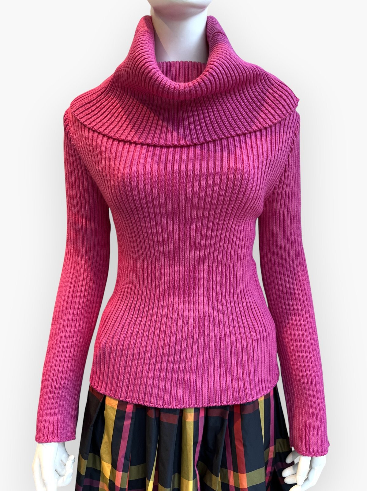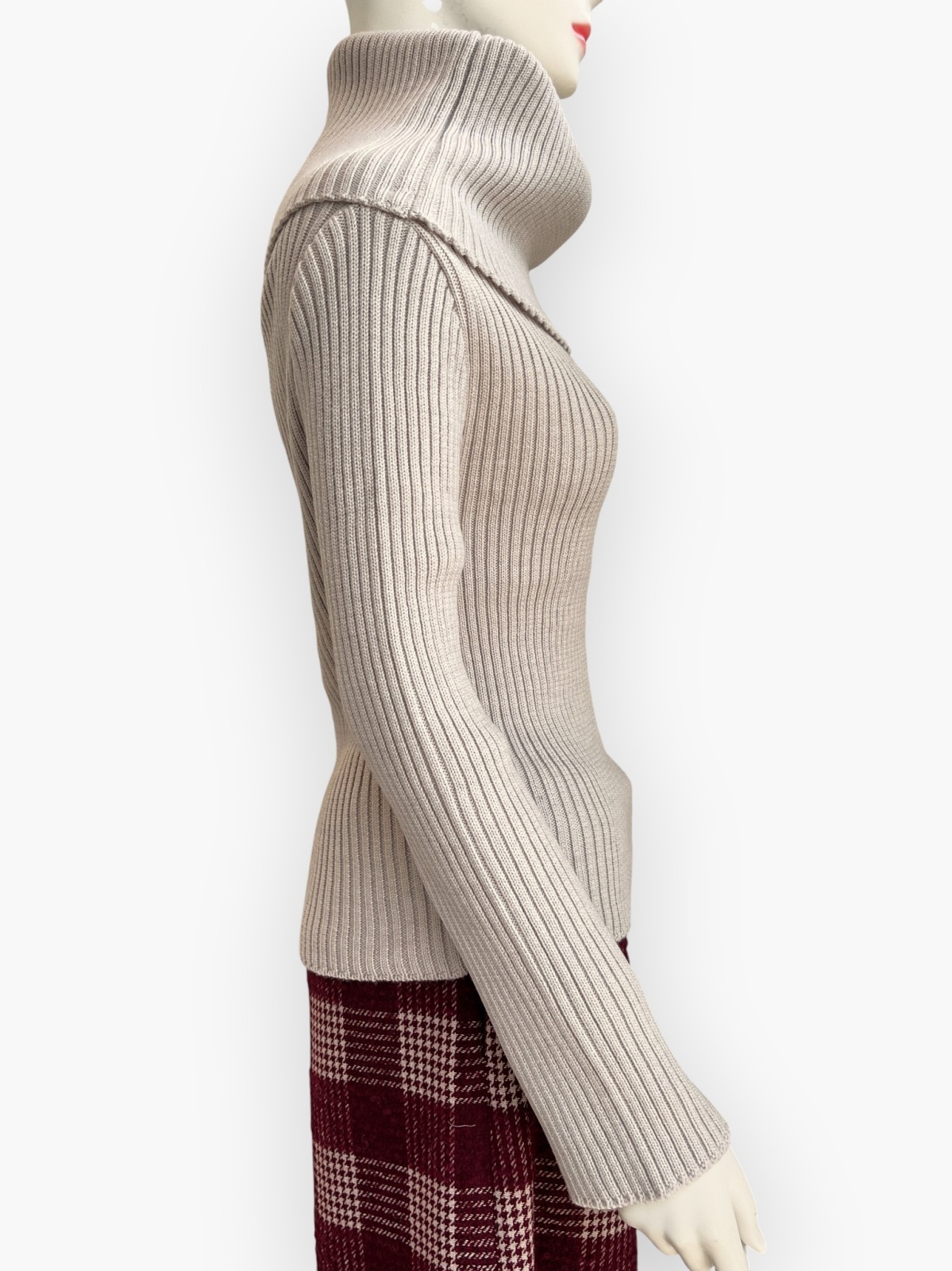 これからの時期に活躍するふっくらした着心地のオフタートルニット。
