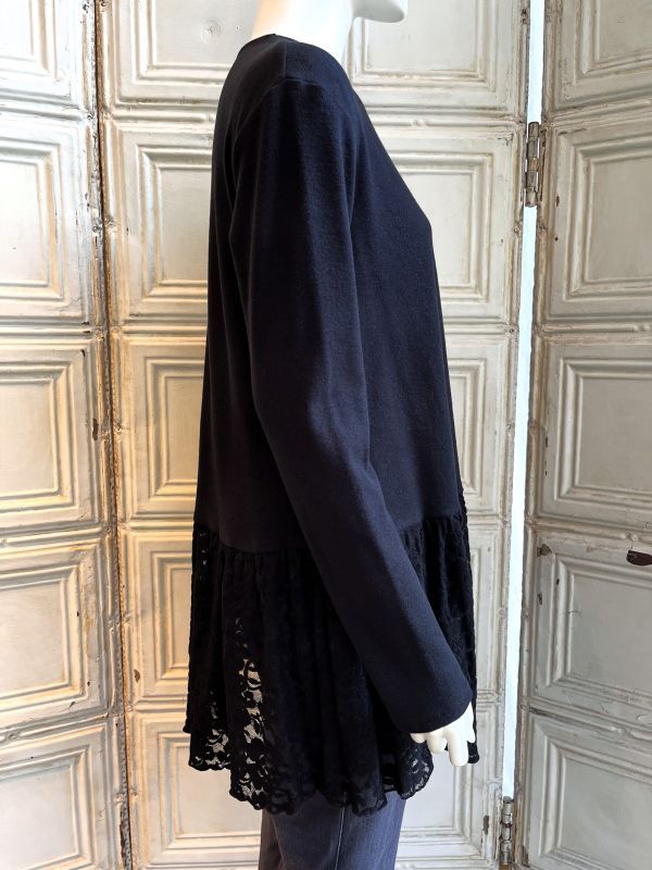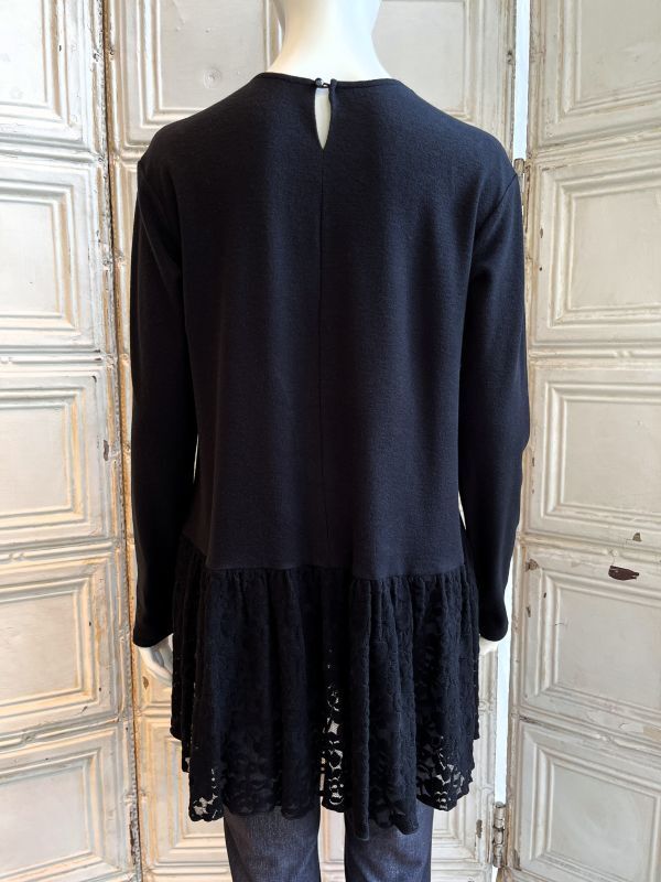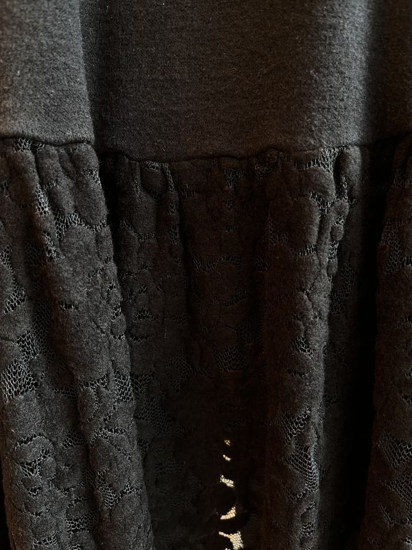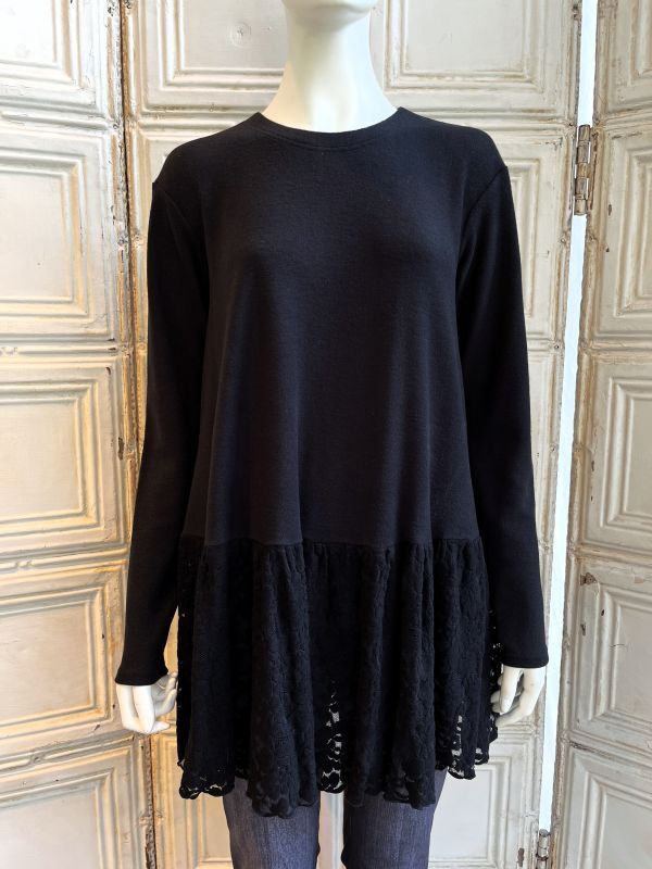 ローウエスト位置に切り替えたフラワーモチーフ柄レースの透け感がエレガントなチュニック。