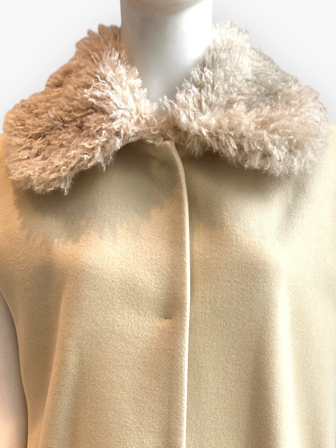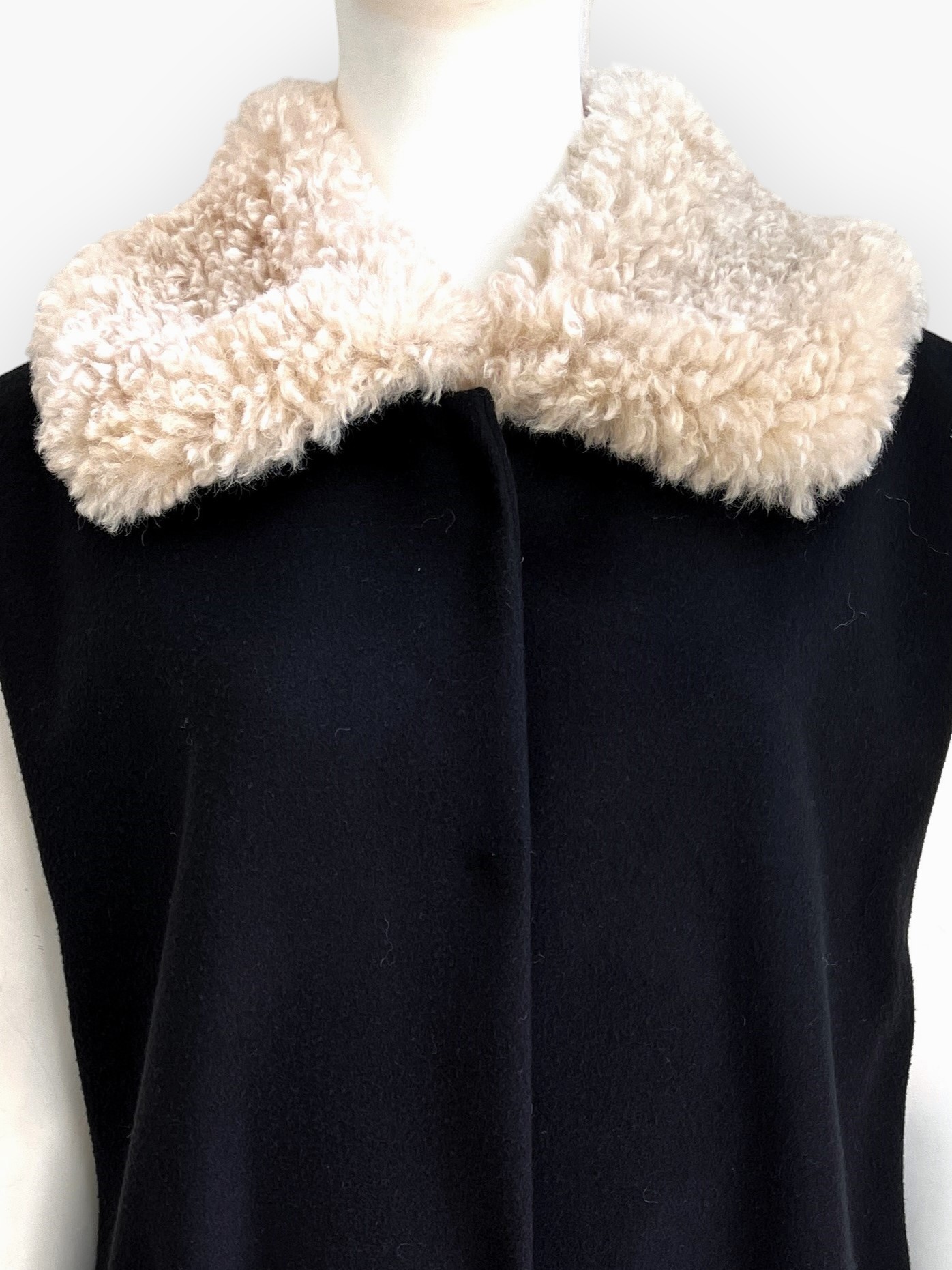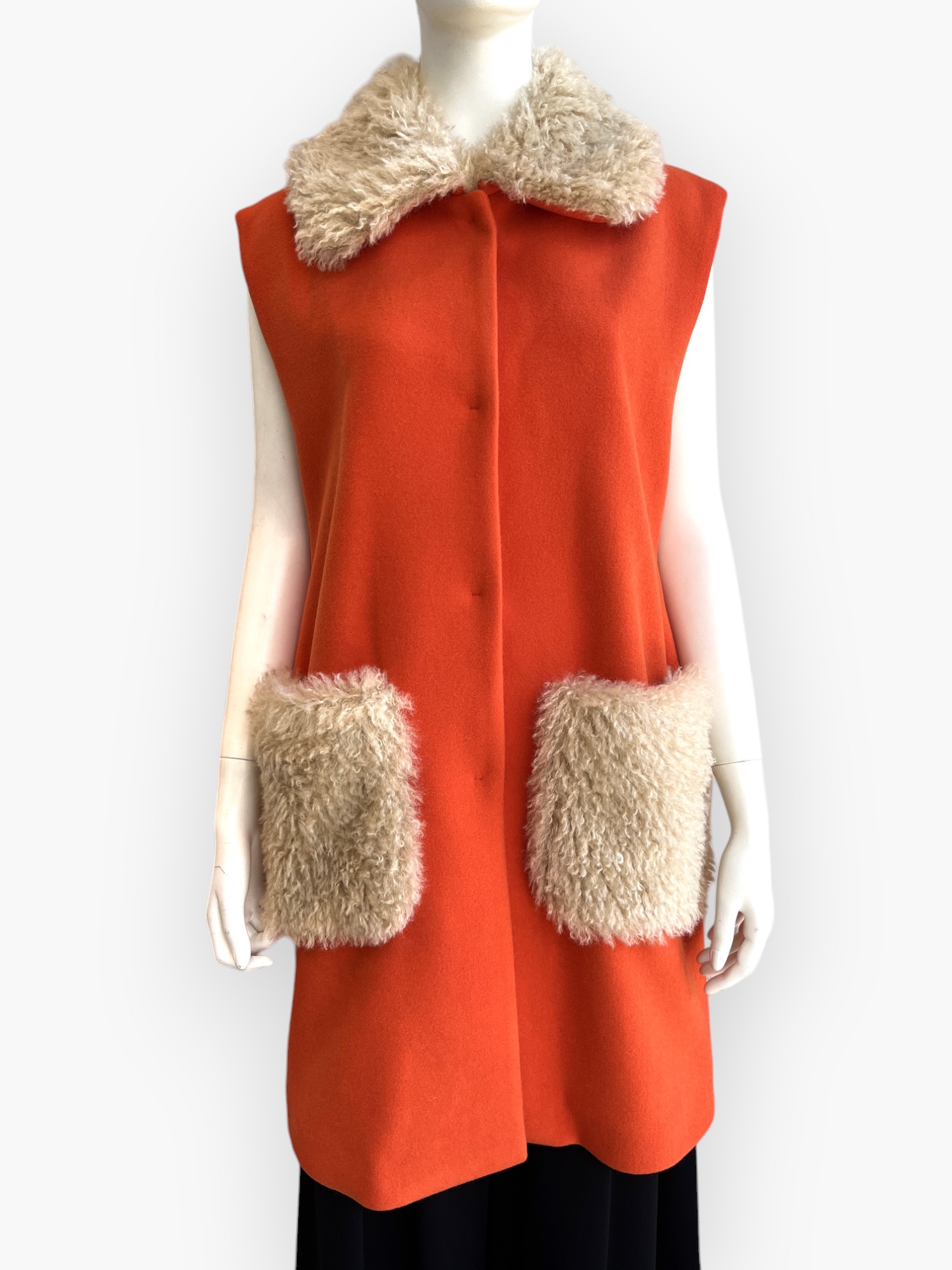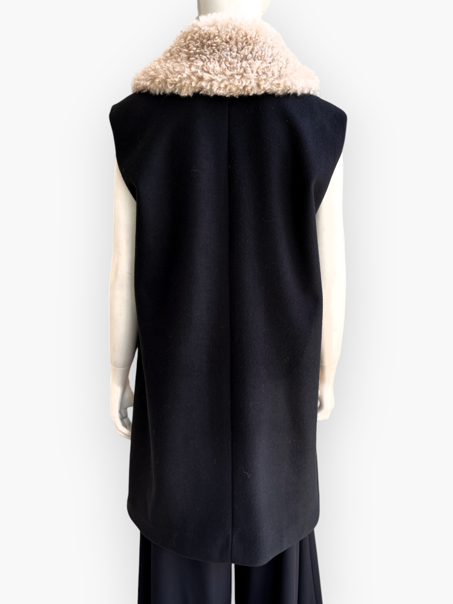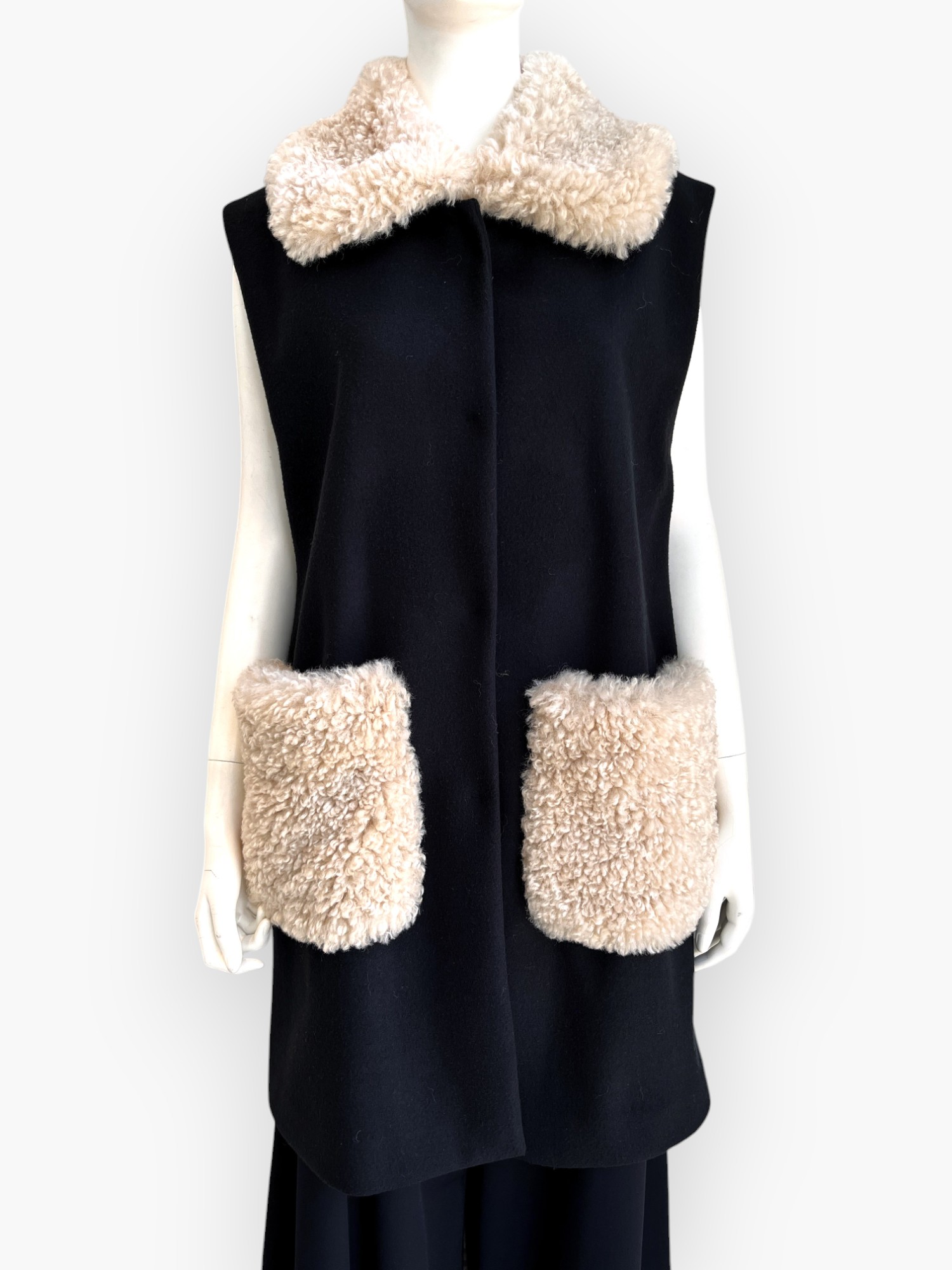 大き目の襟とポケットに施したフェイクファーがポイントの大人かわいいジレ。