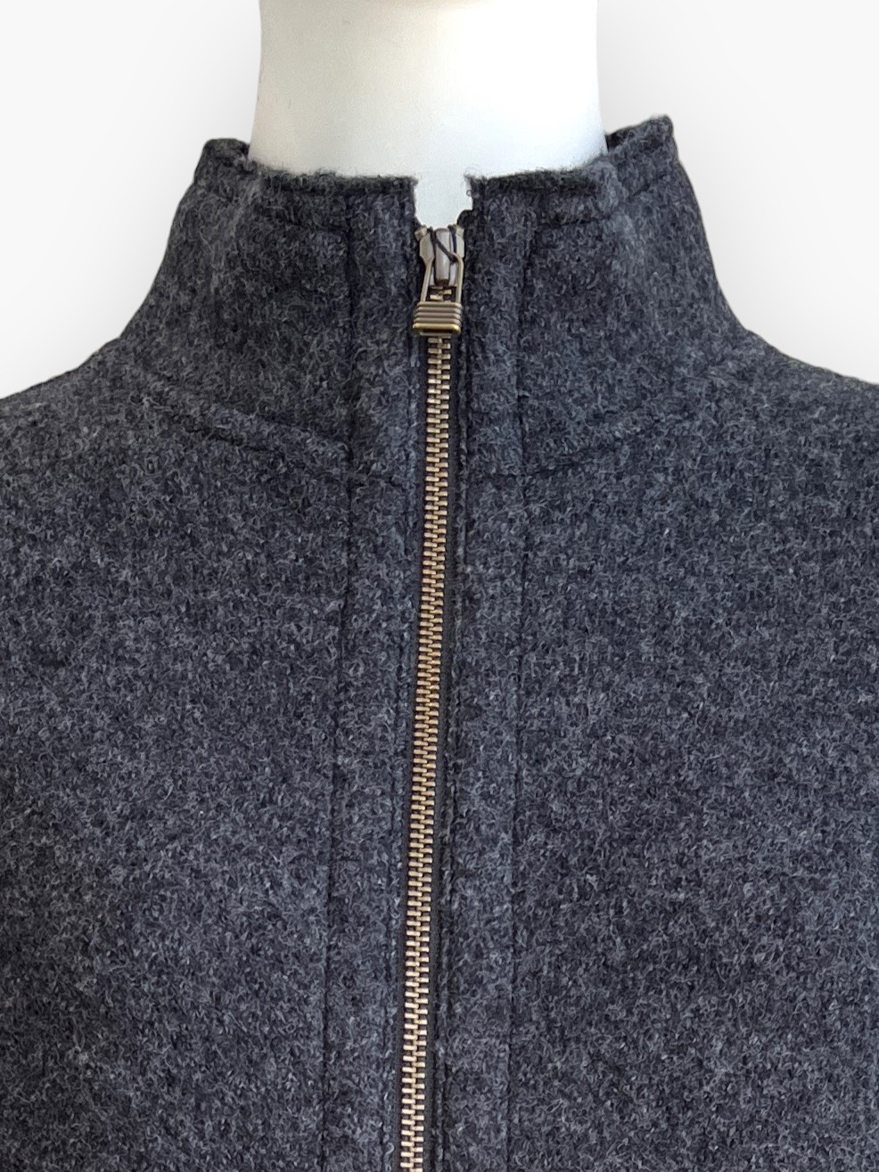 スタンドネックとフロントのファスナー使いでスポーティーな印象をプラス。