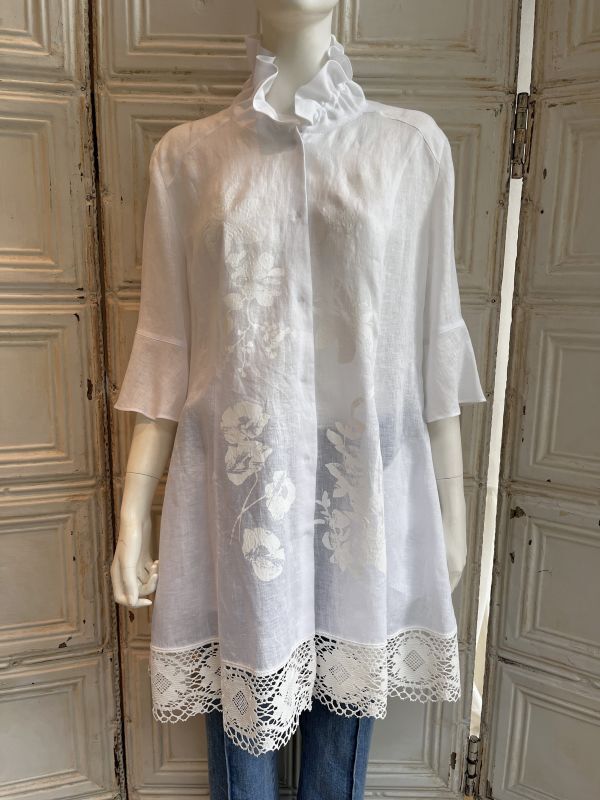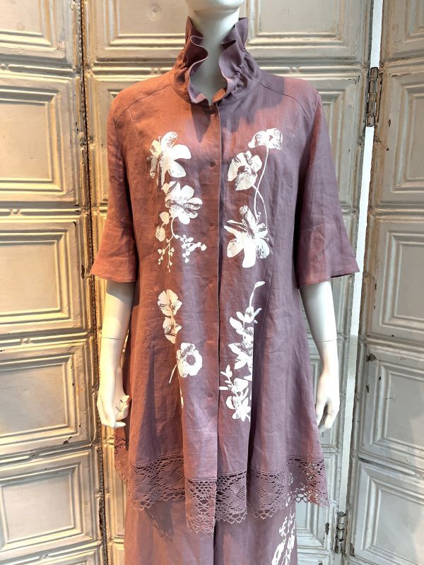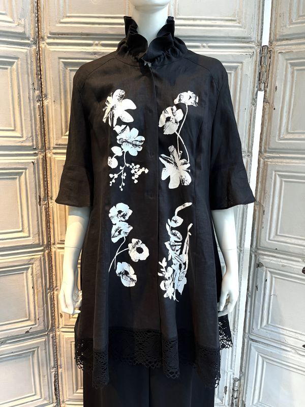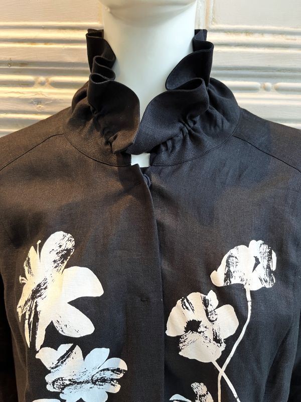 オリジナルフラワー柄をペイント風に顔料プリントした着映えるブラウスジャケット。
