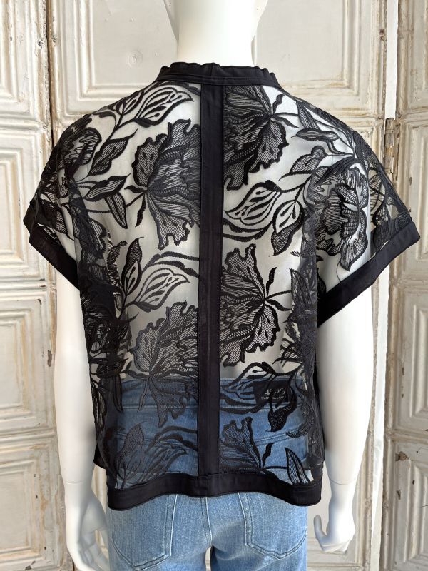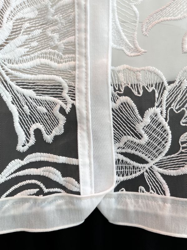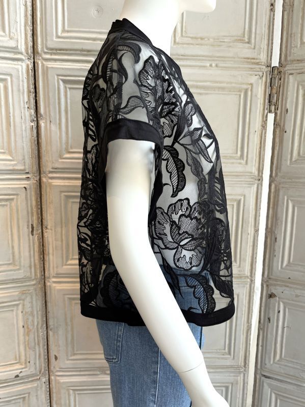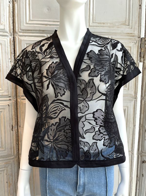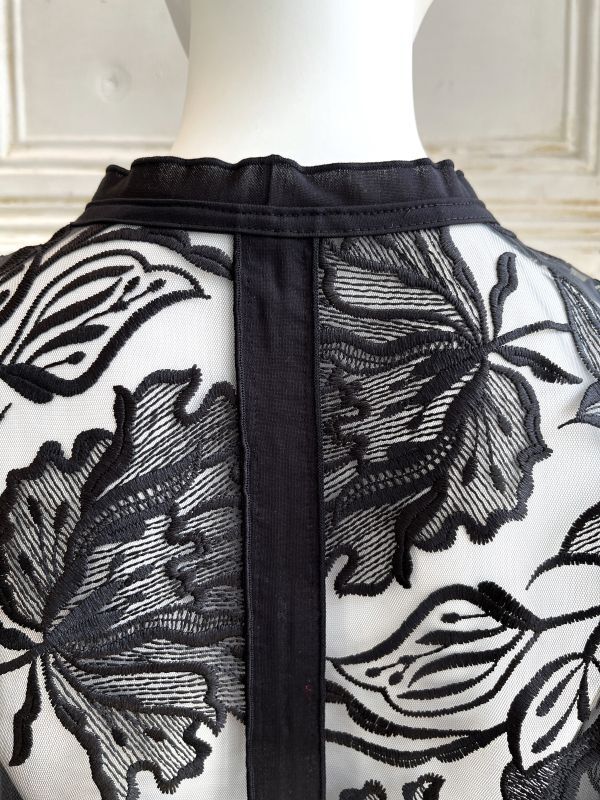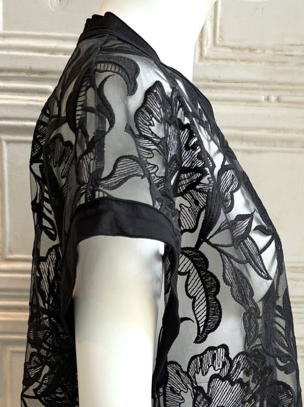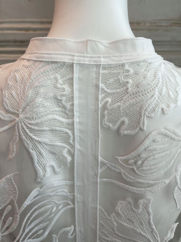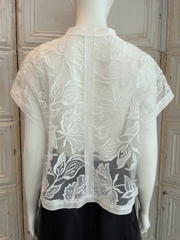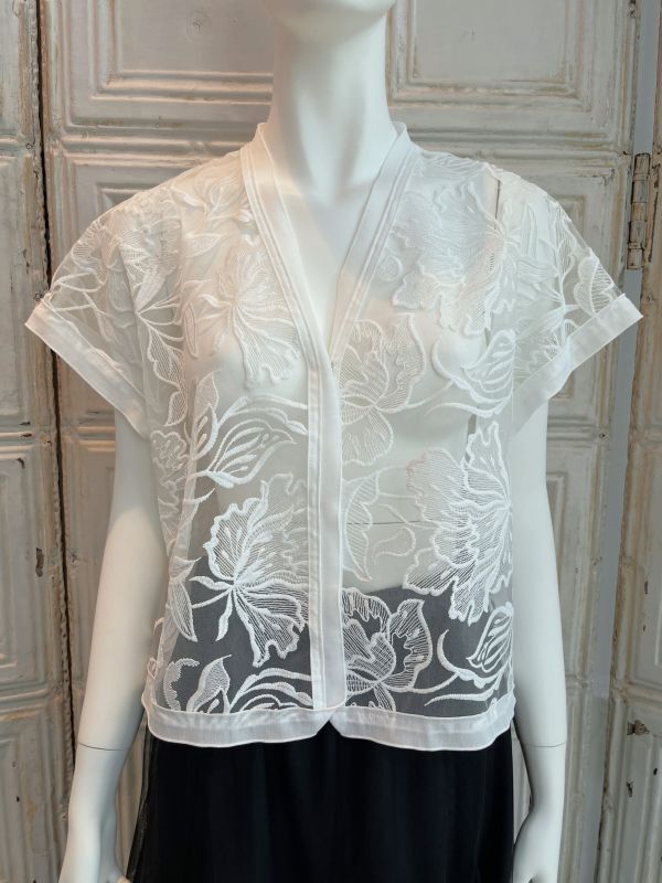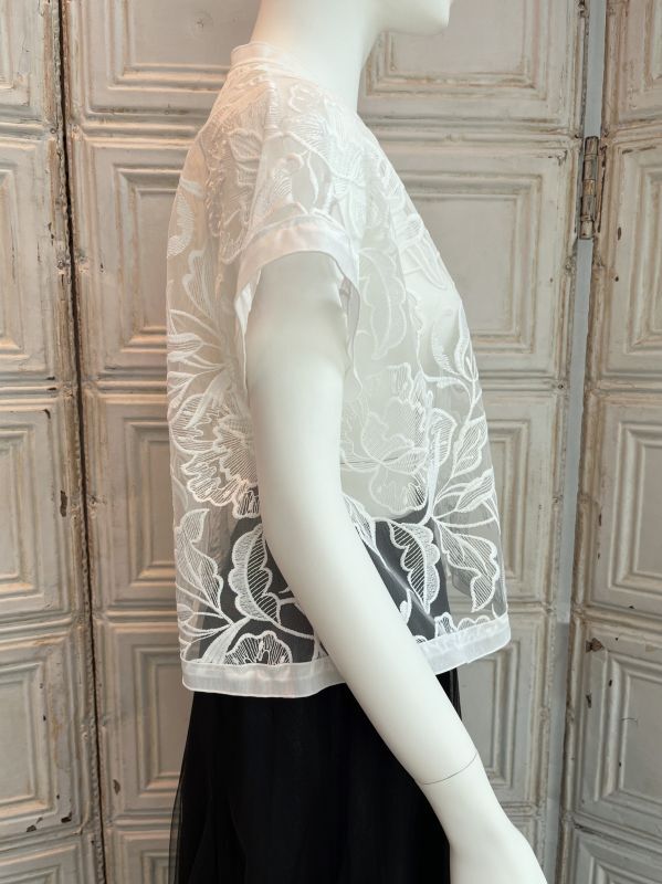 清涼感のある大胆な柄の刺繍を施したレイヤードにぴったりのチュールレースジレ。