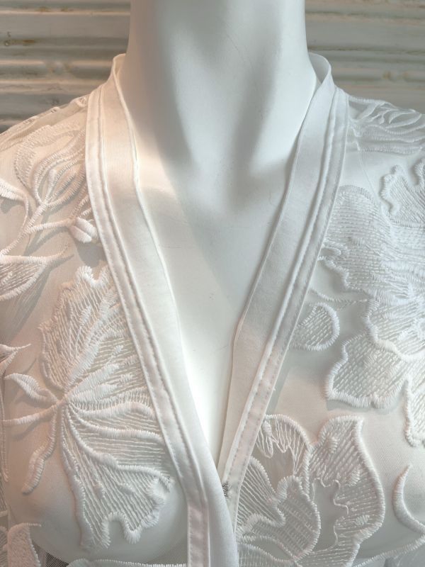立体的でエレガントな透け感は纏うだけで着映えする一枚です。