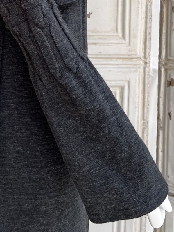 袖の編目の切り替えの位置にこだわり腕をすっきり長くみせてくれます。