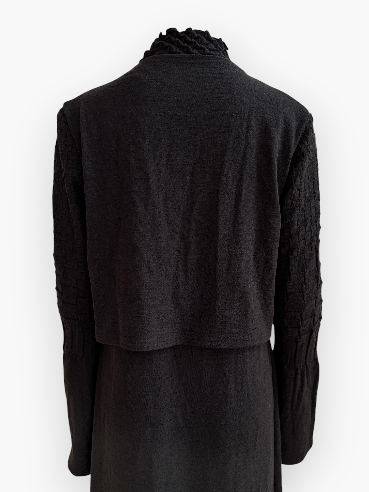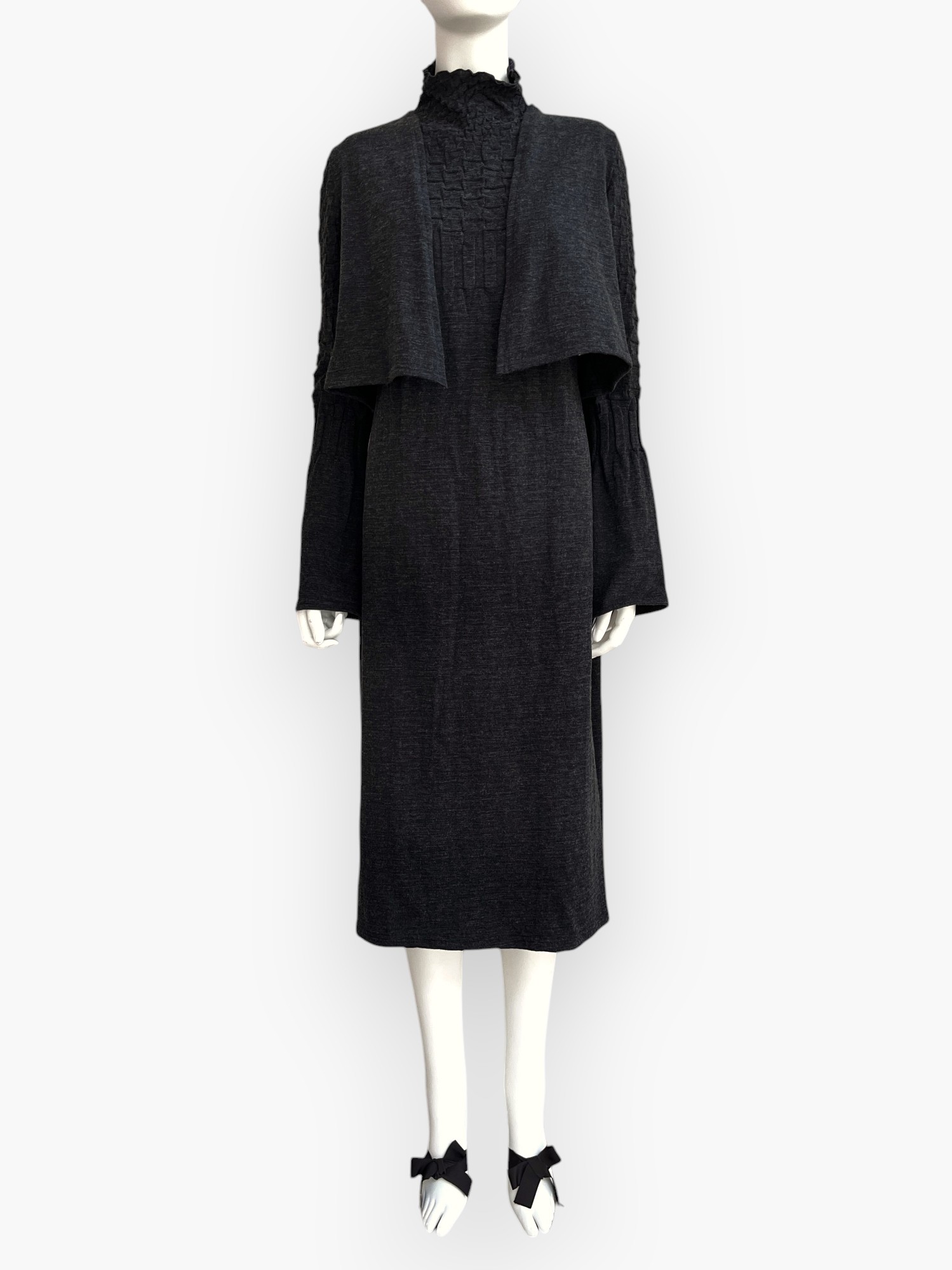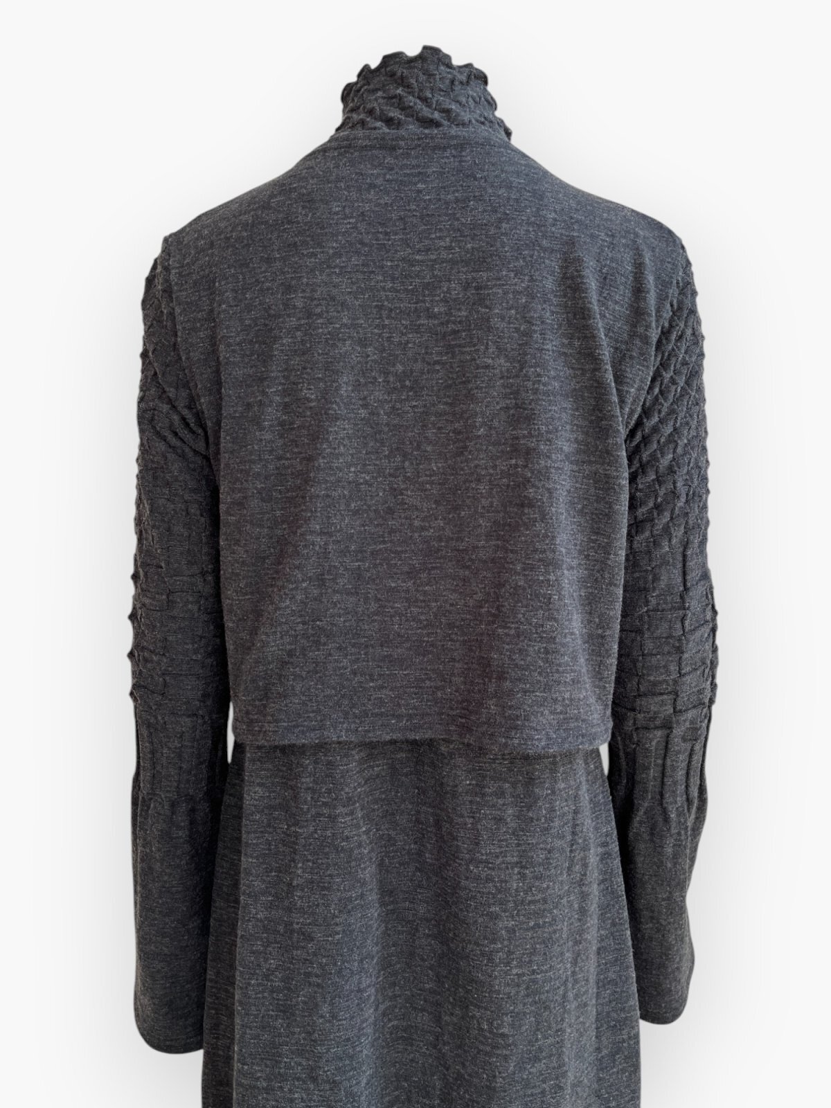 ほどよいドレープ性と収縮糸によるストレッチ性により着心地も向上した素材。