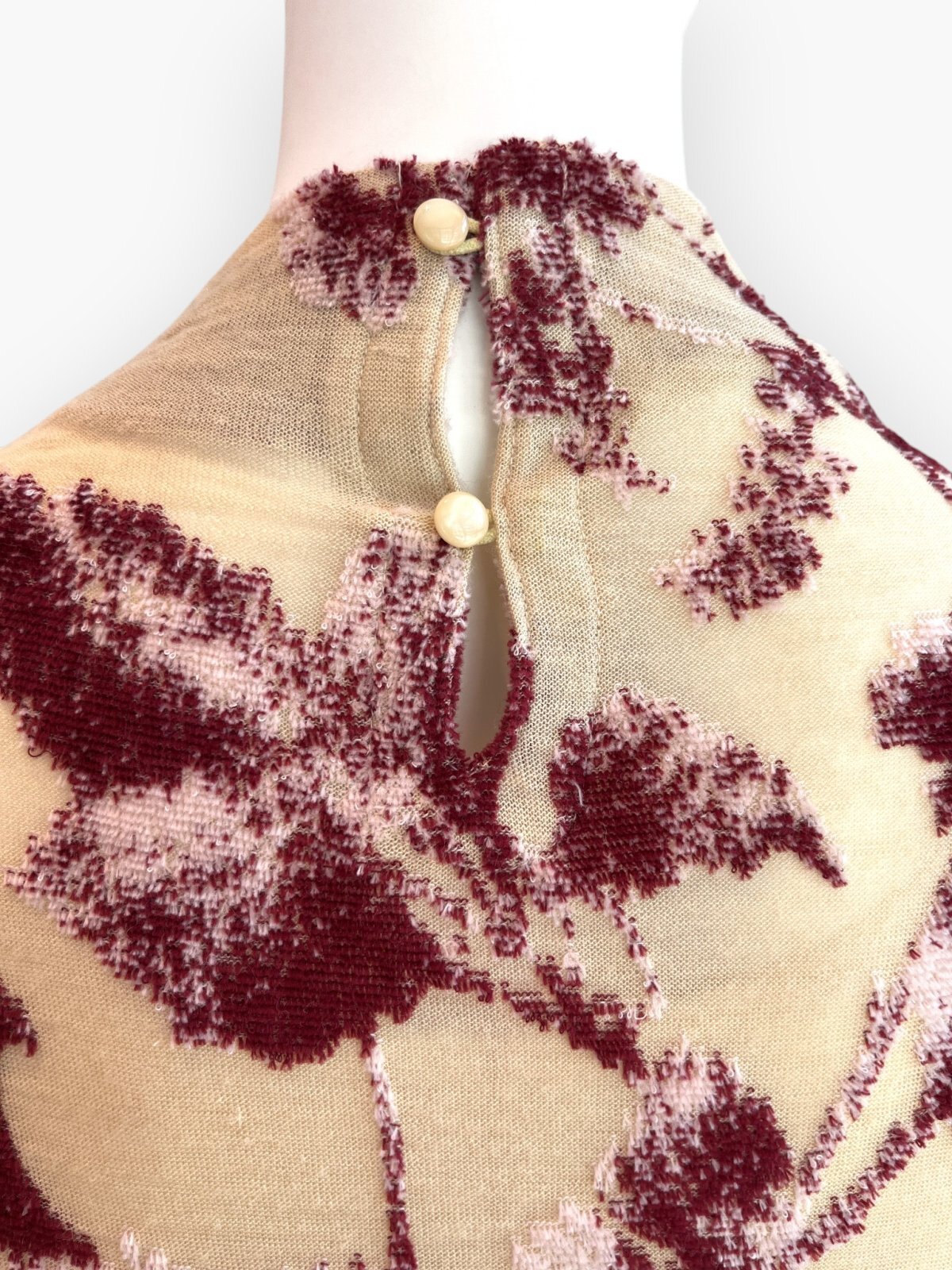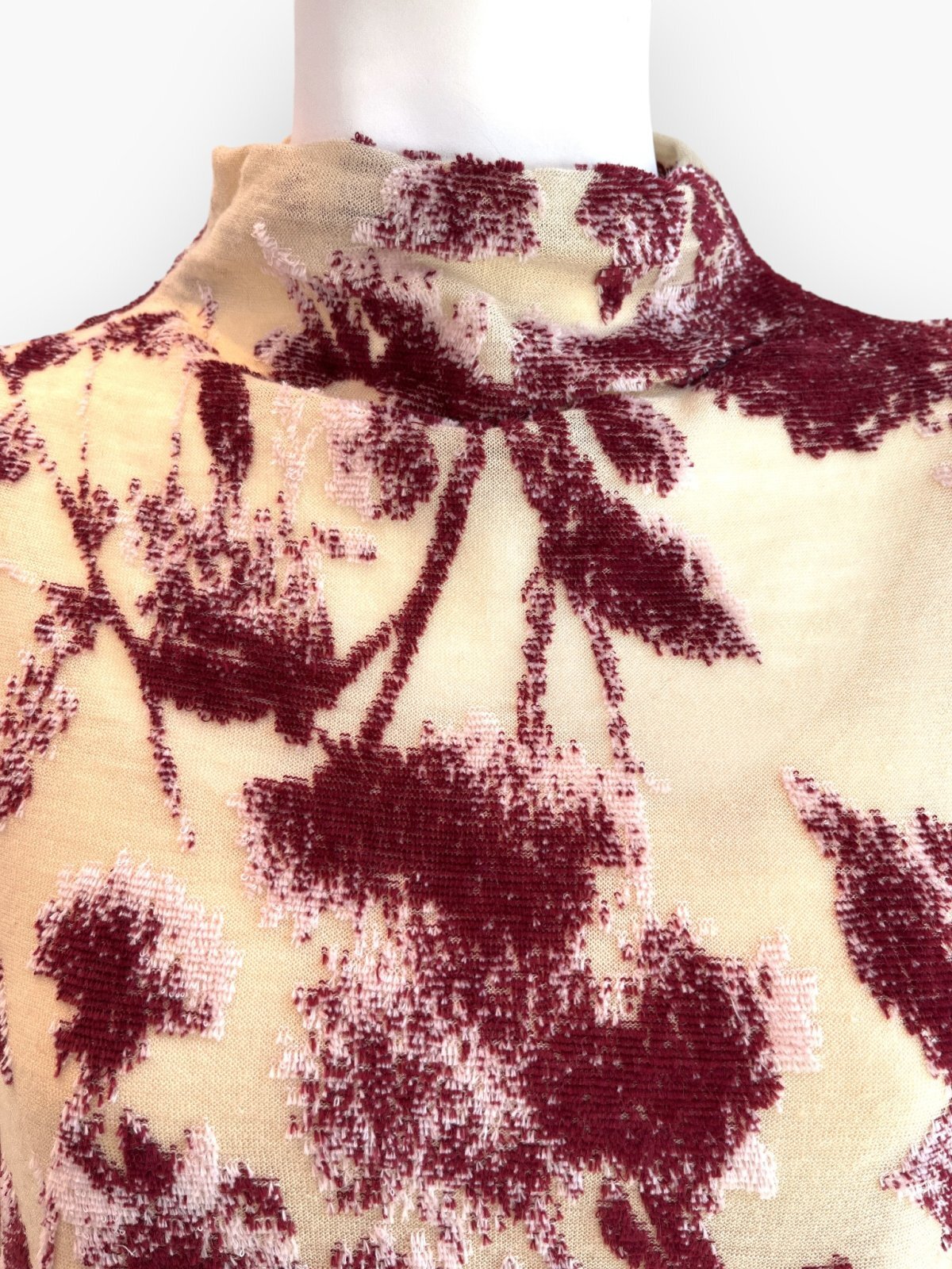 オリジナルのボタニカル柄ジャガードをベロア調の滑らかなタッチに仕上げ高級感を出しました。