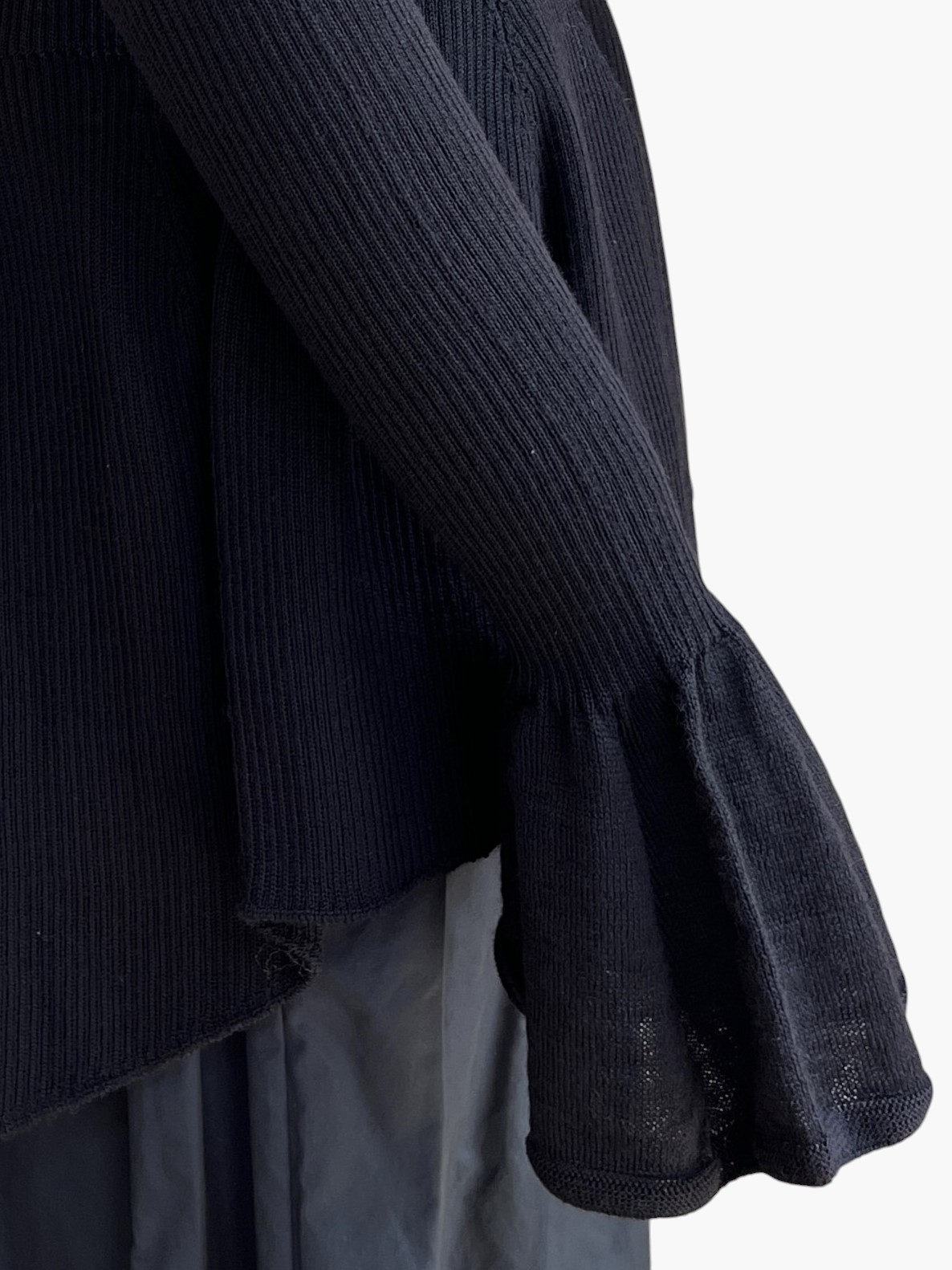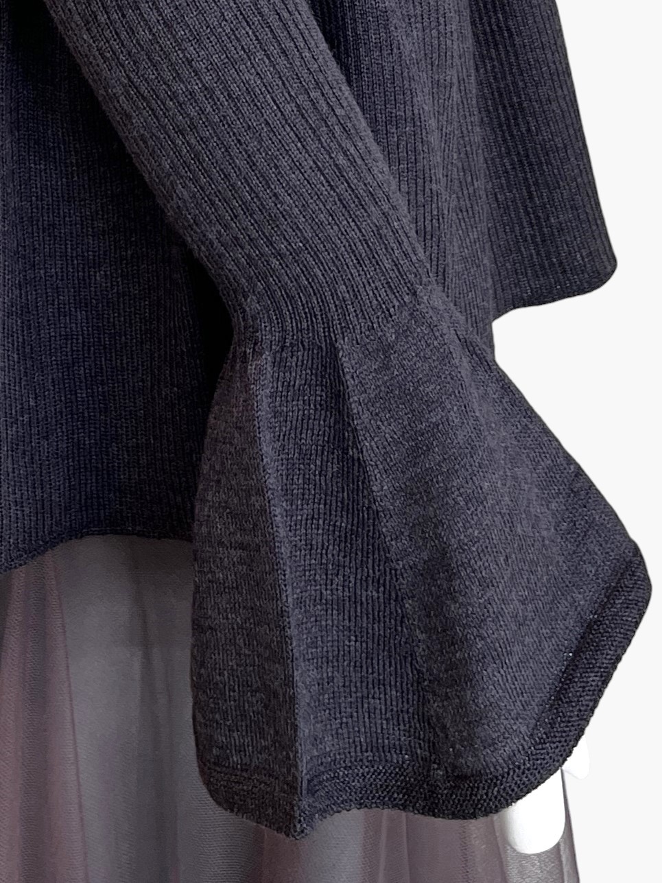 ワイドパンツやフレアスカートとの相性も抜群のニットです。