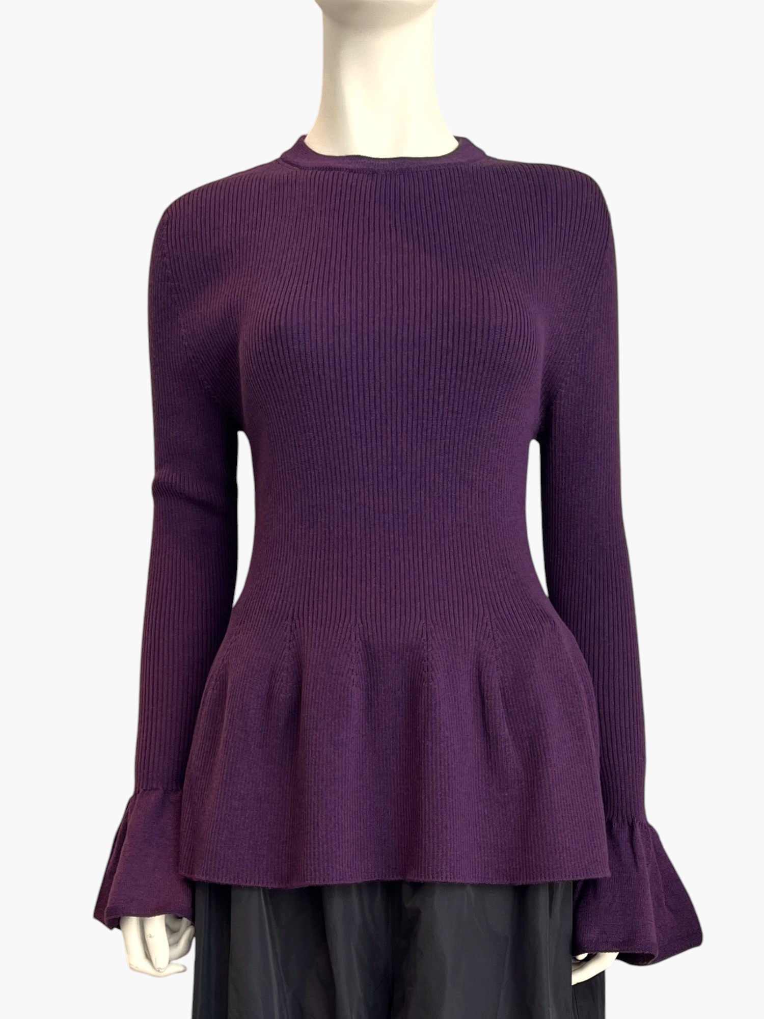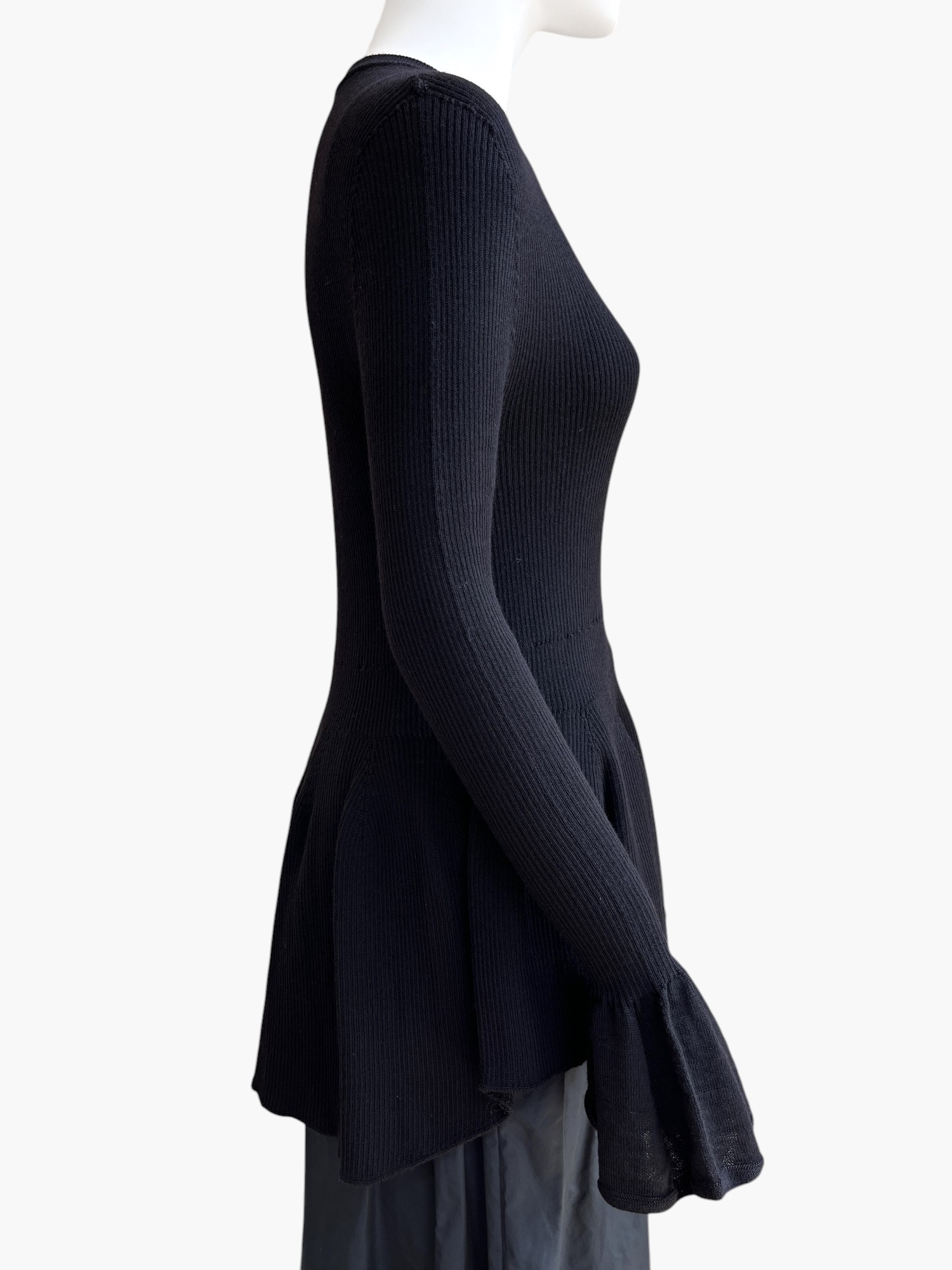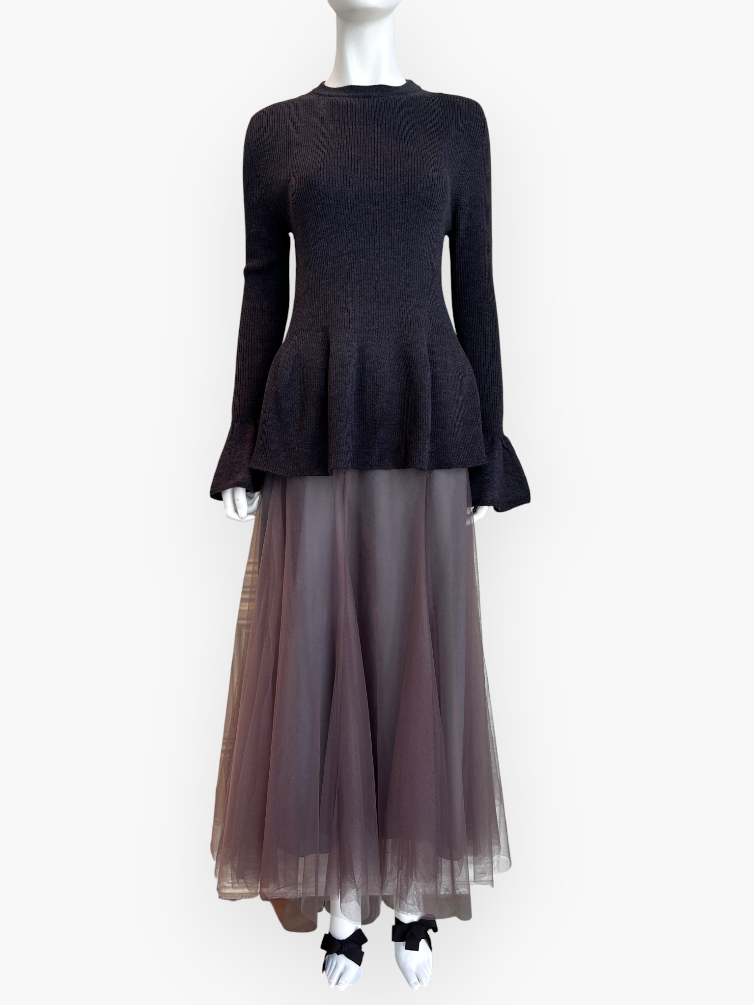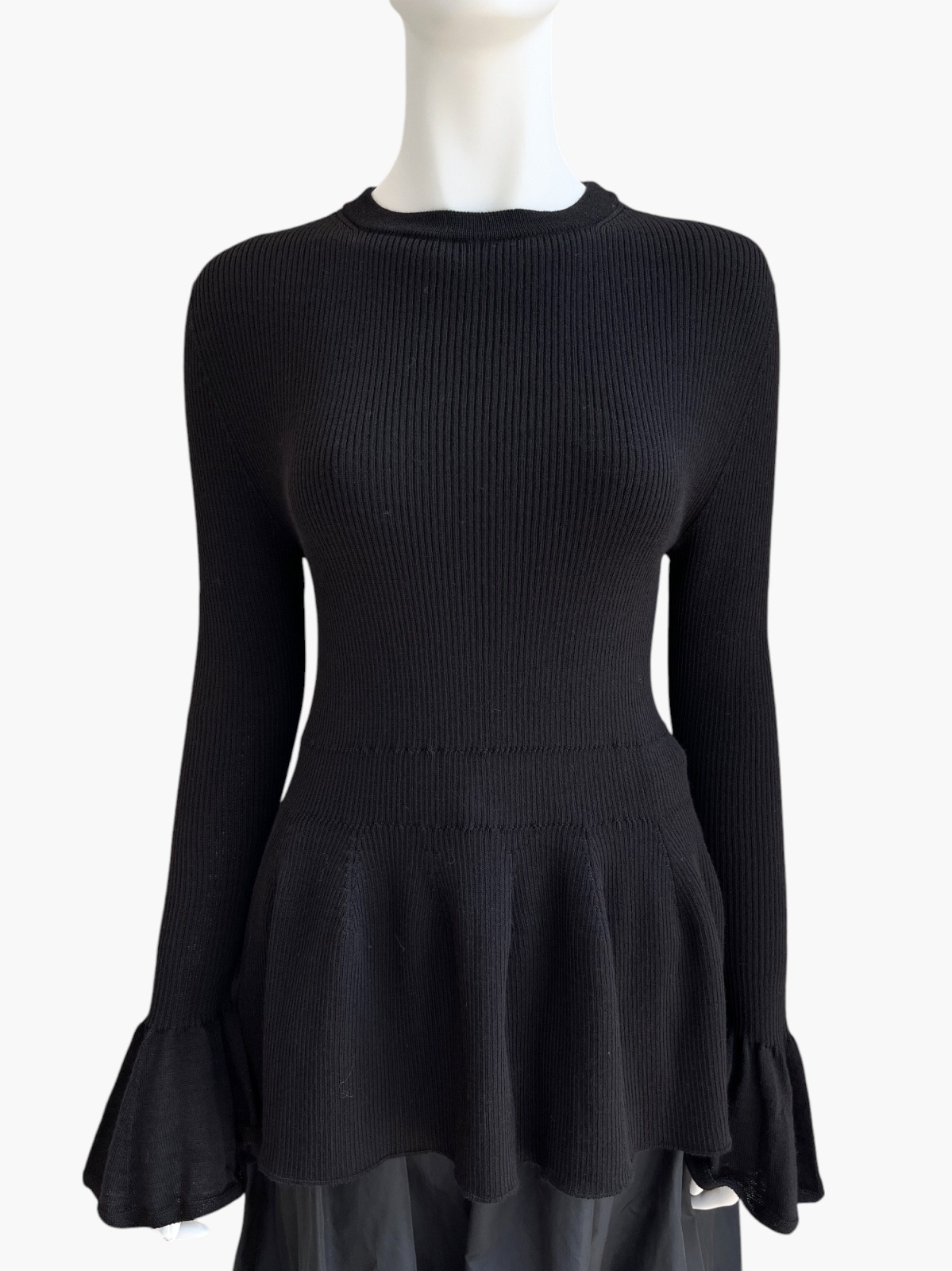 フィット&フレアなデザインが女性らしいニットプルオーバー。