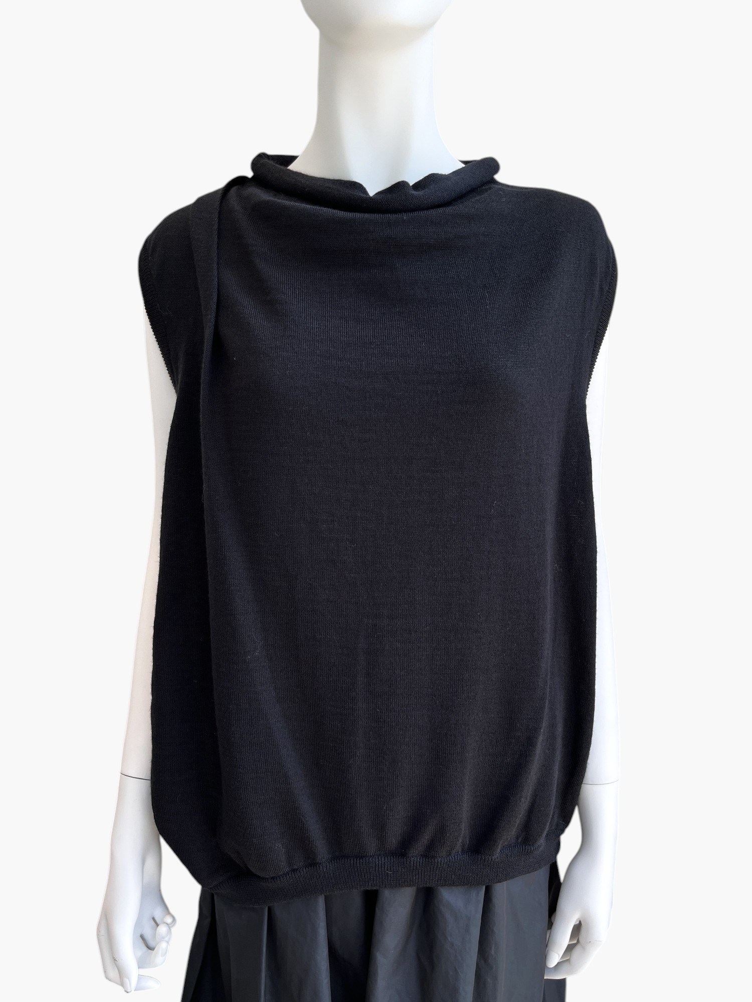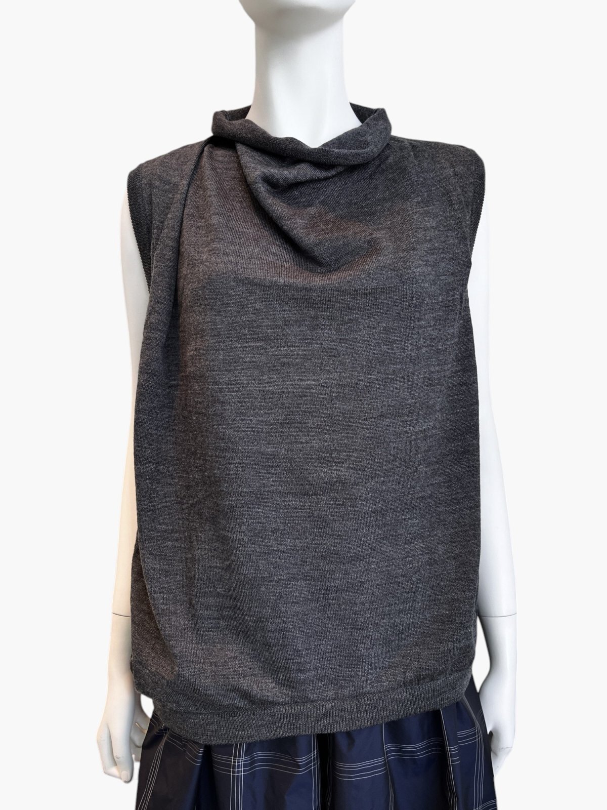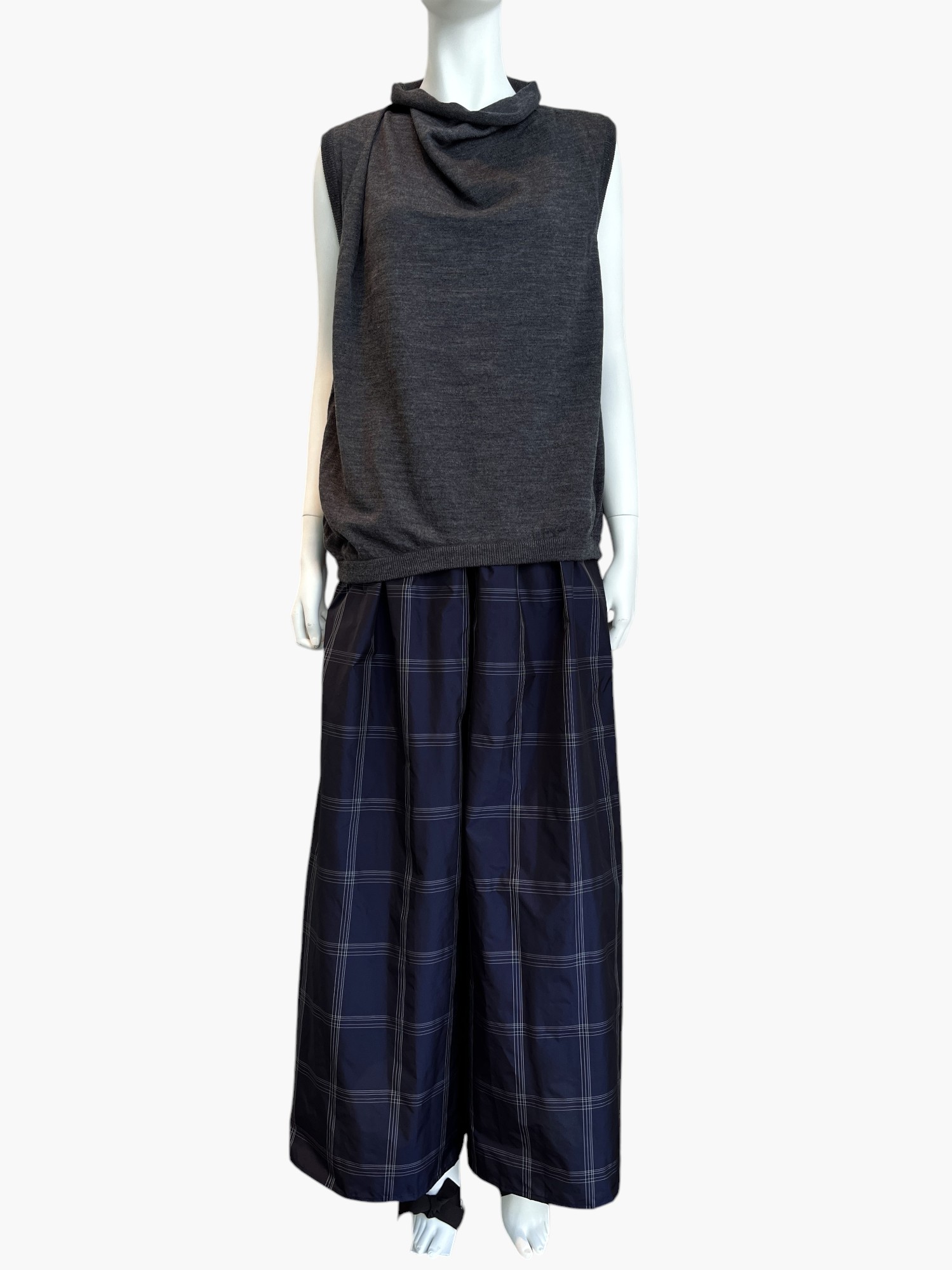 アシンメトリーなタック使いでニュアンスを出したハイゲージニット。