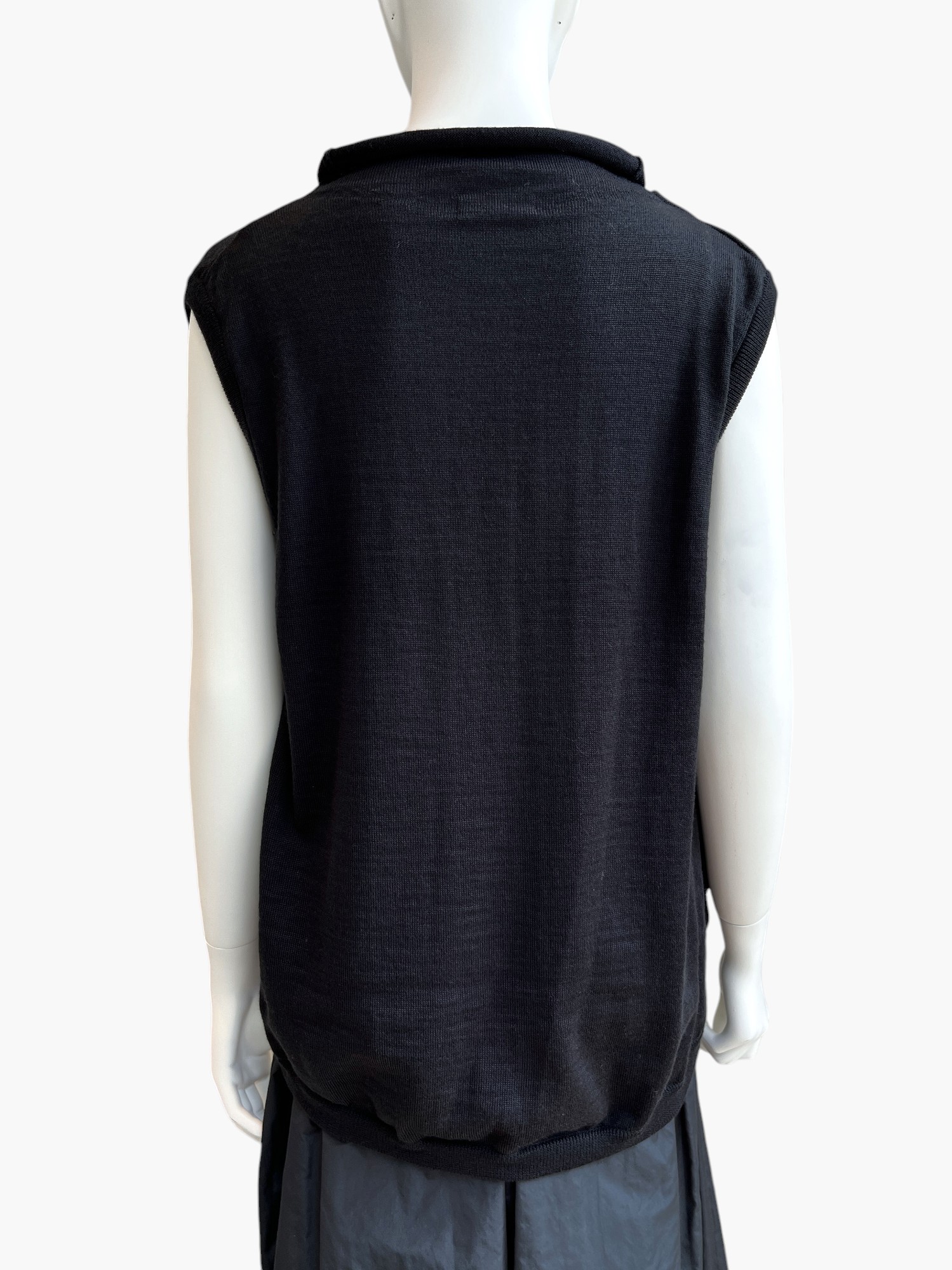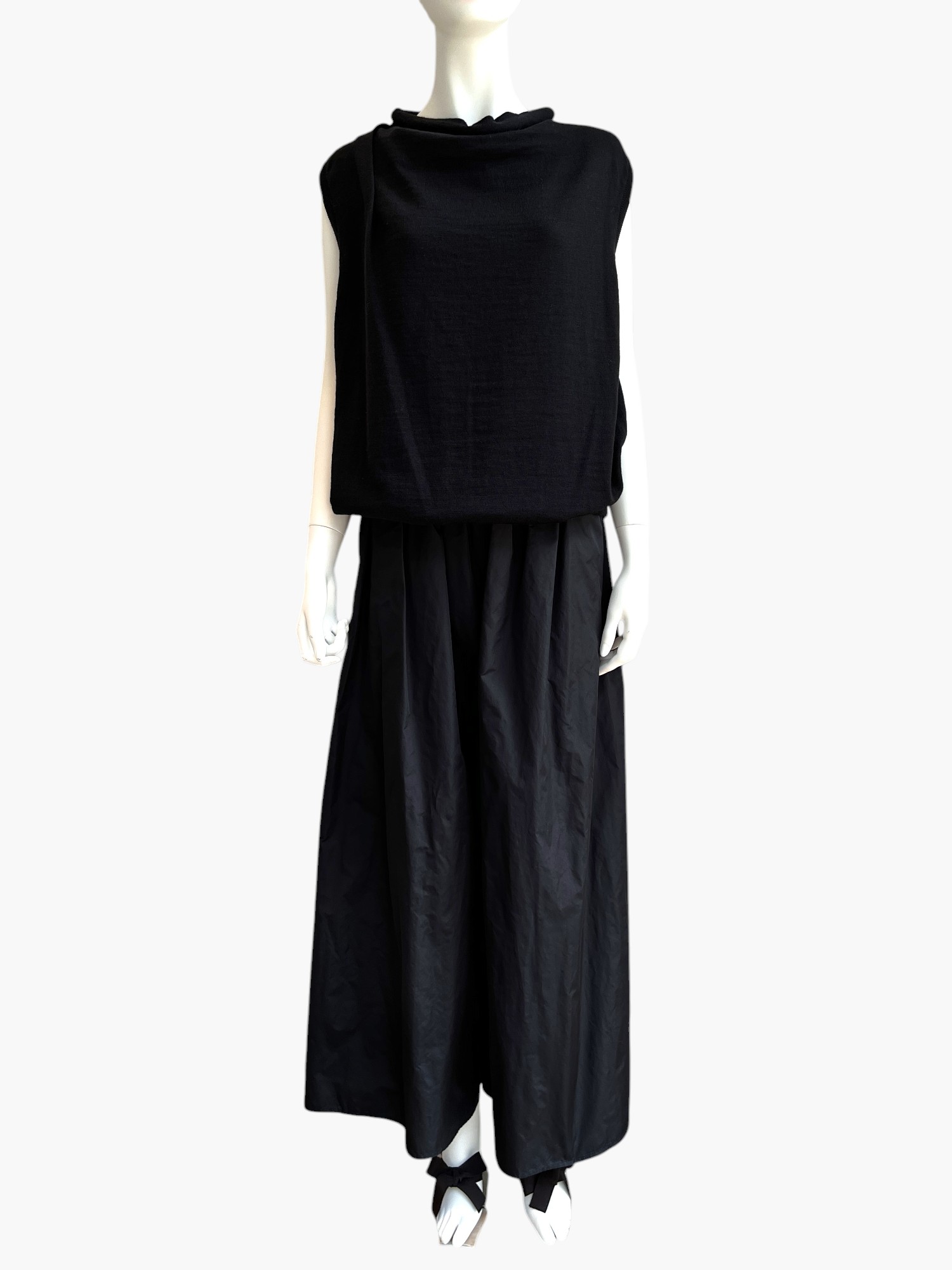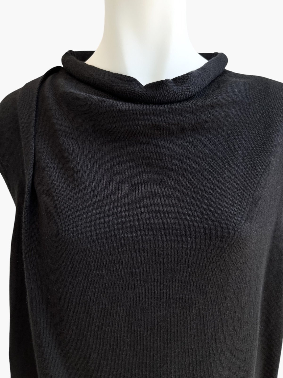 アシンメトリーなタック使いでニュアンスを出したハイゲージニット。