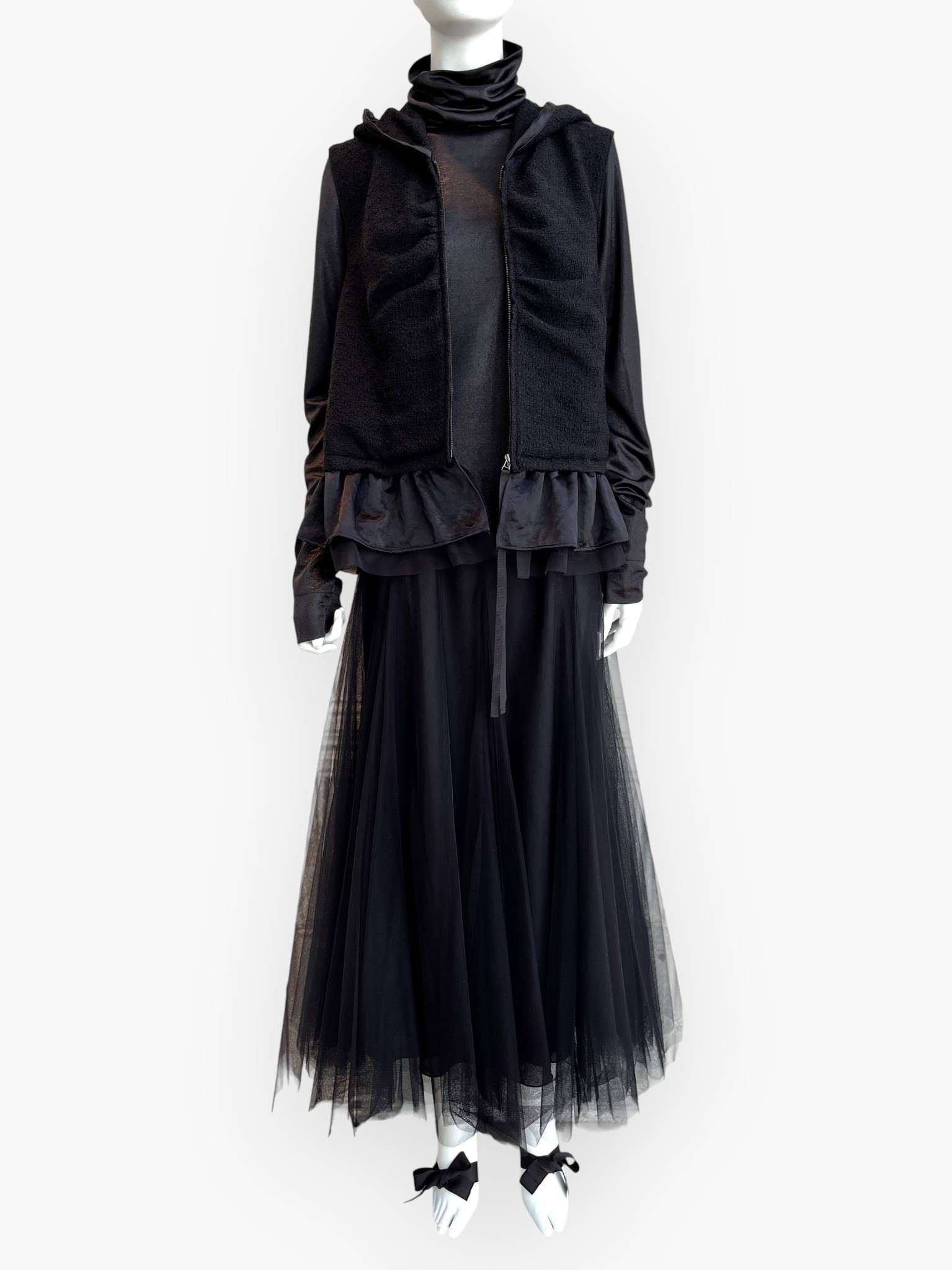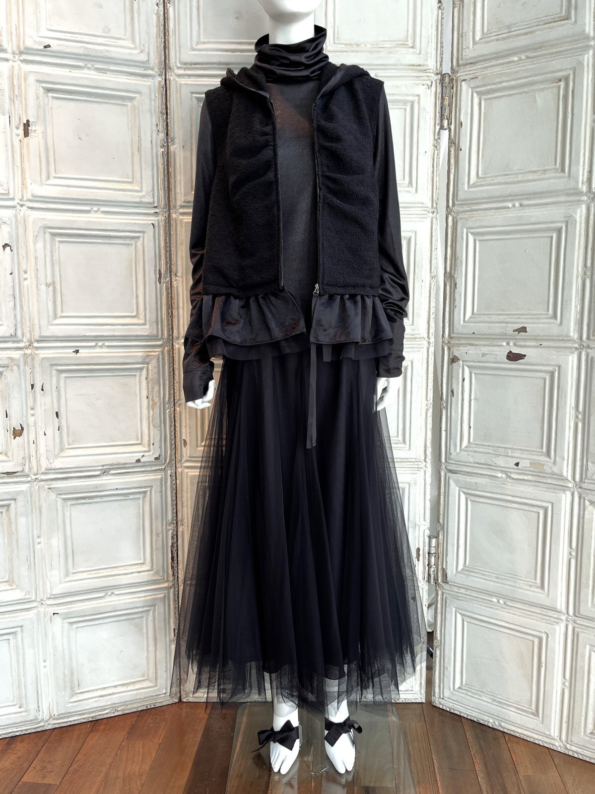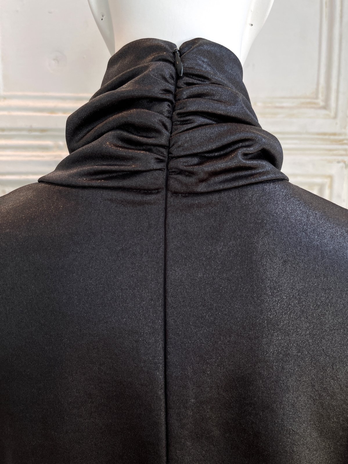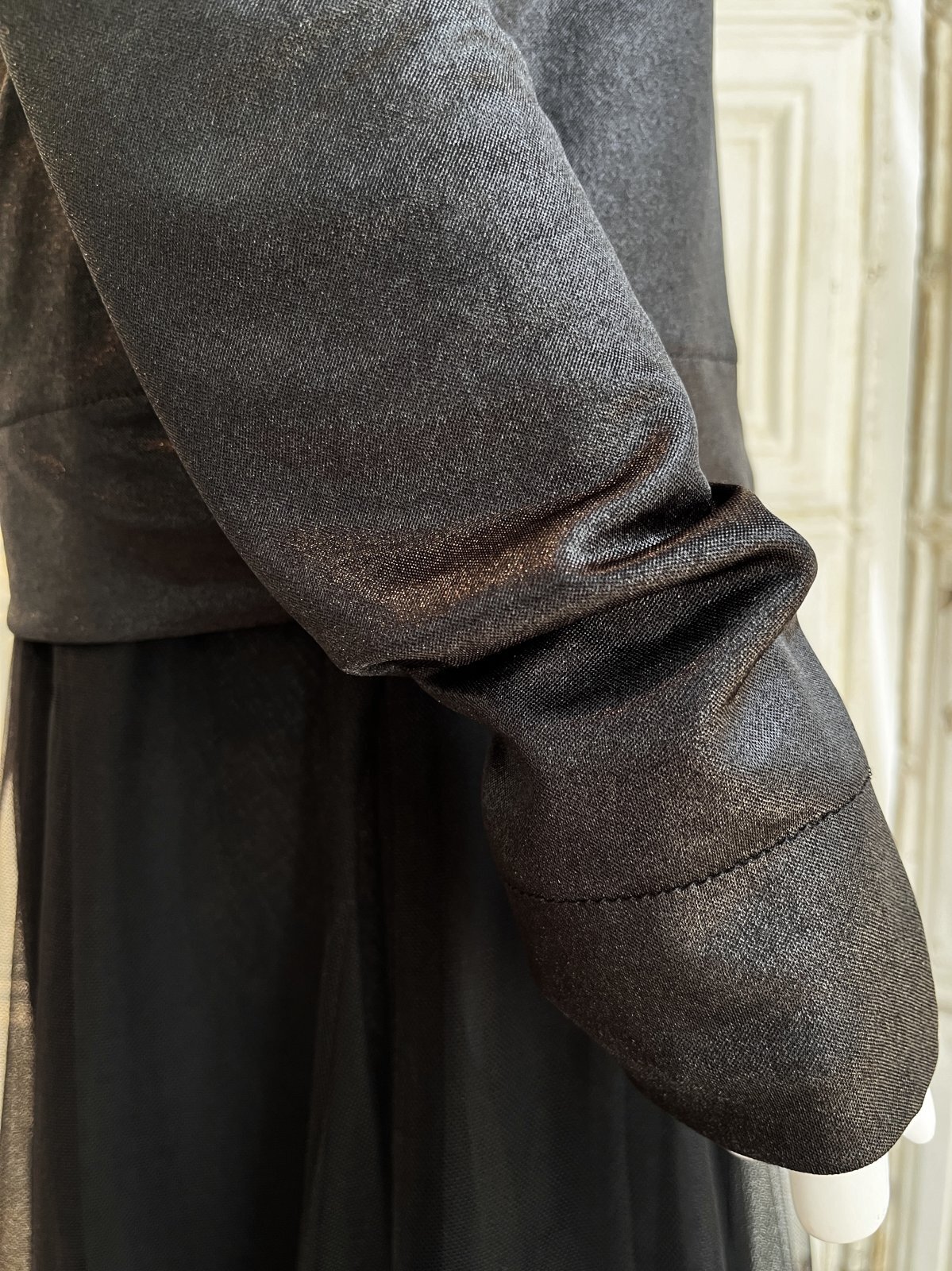 何にでも合わせやすいベーシックなスタンドネックのインナーを、きらめく素材でワンランクアップさせました。