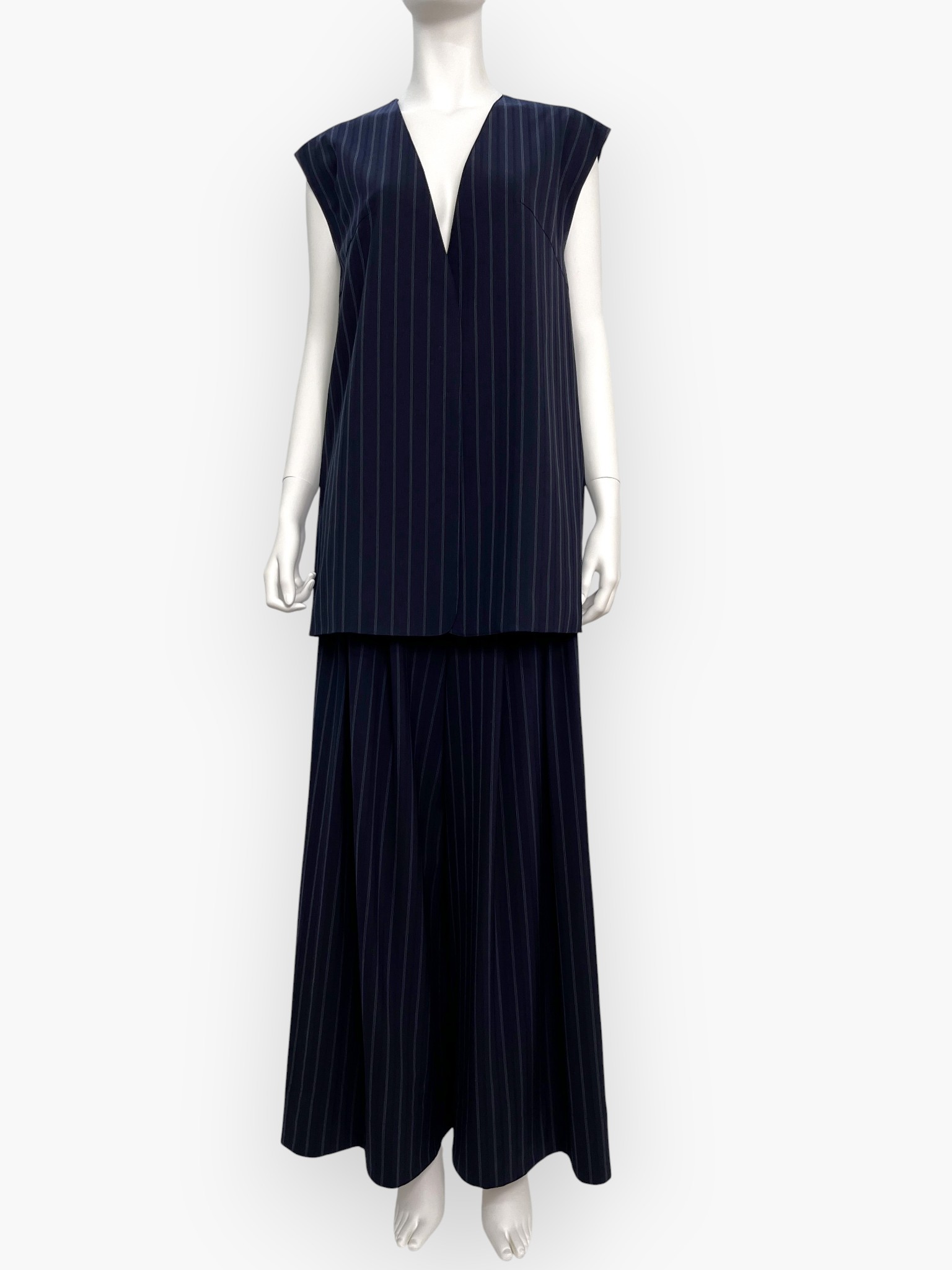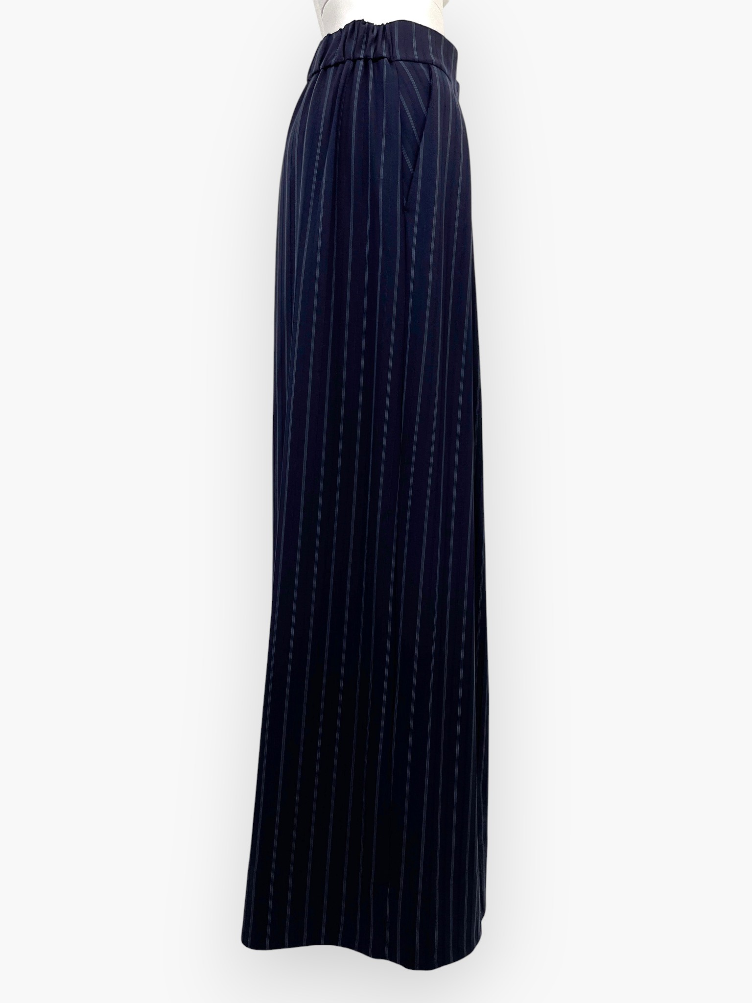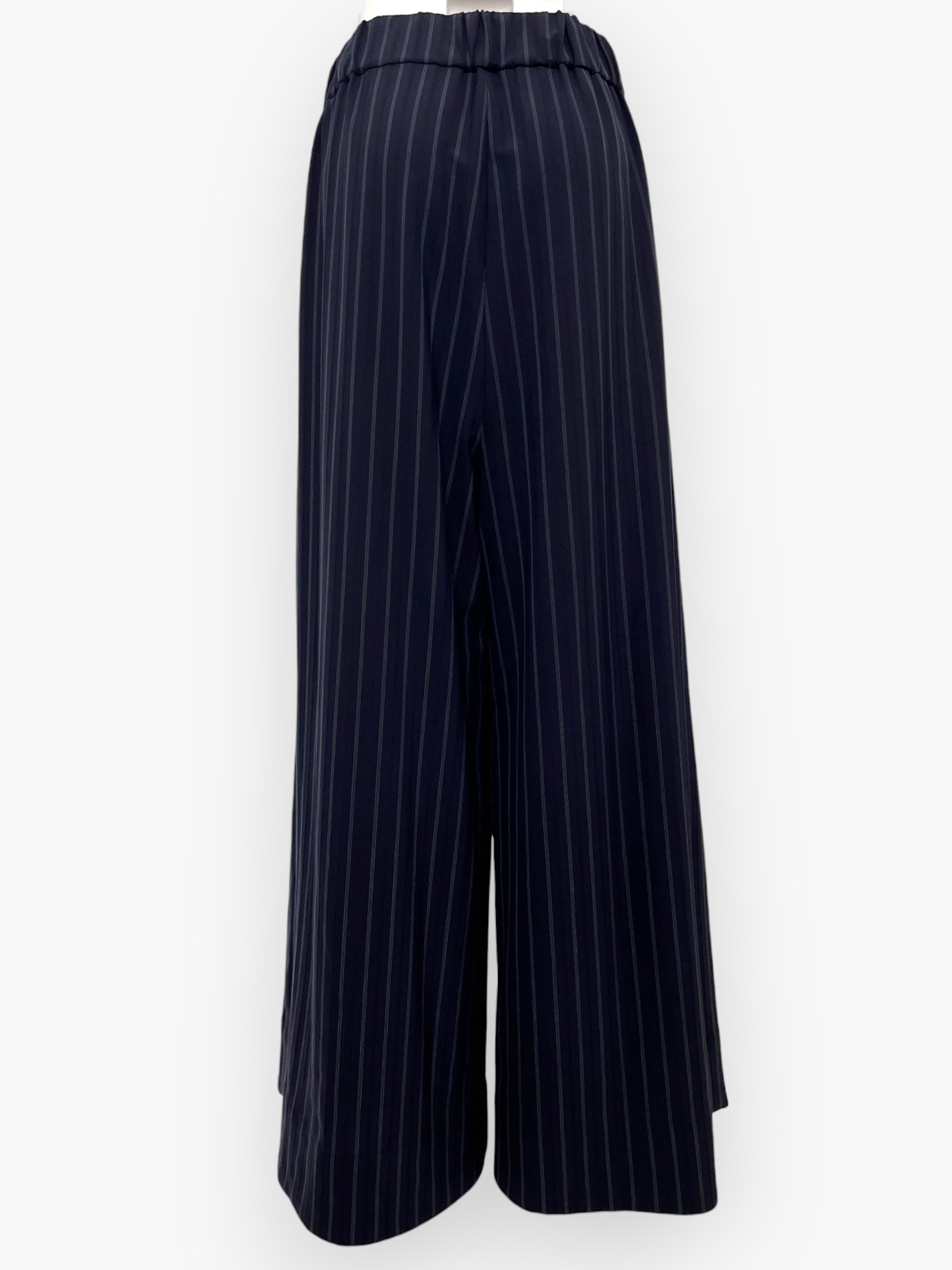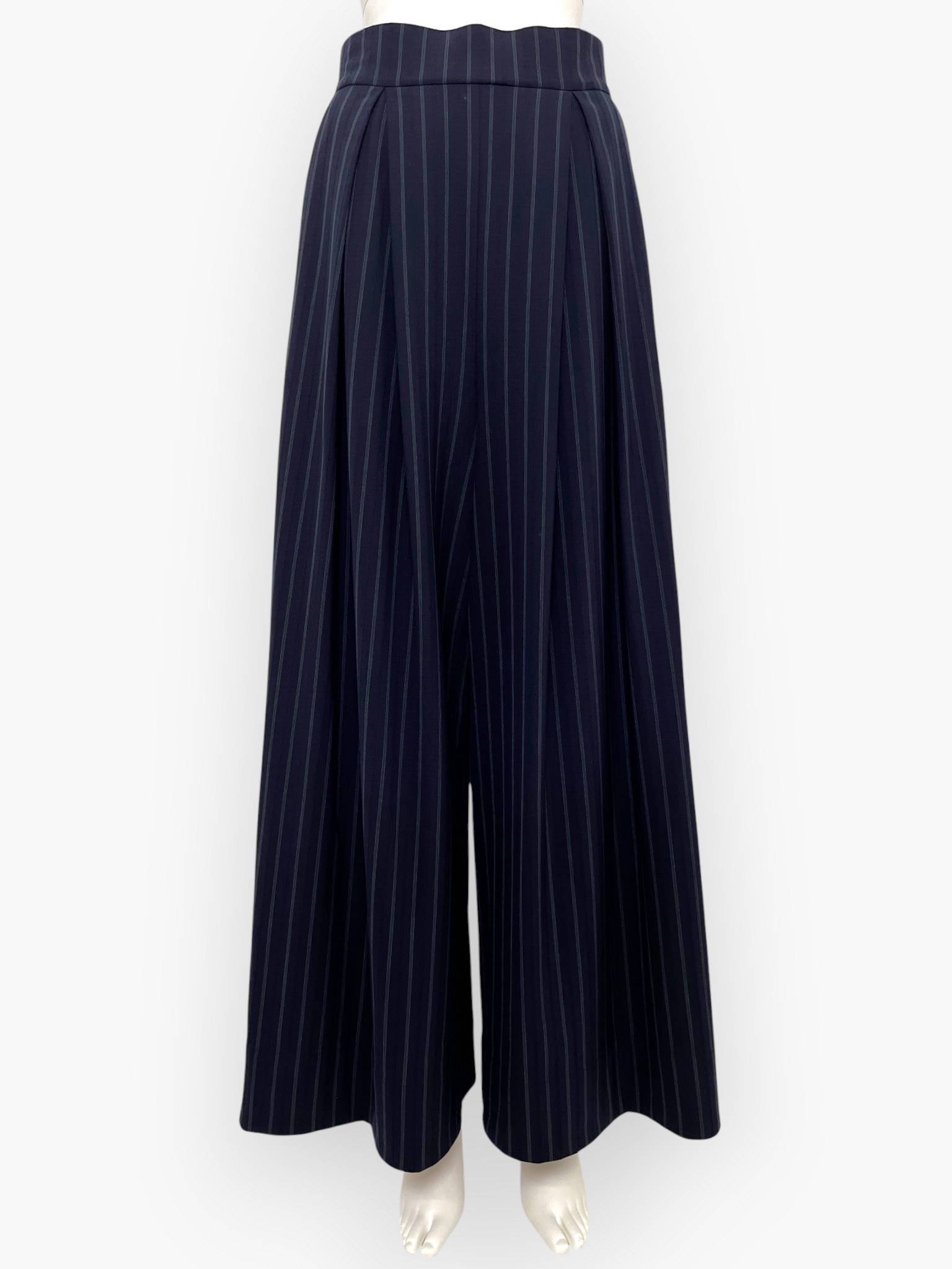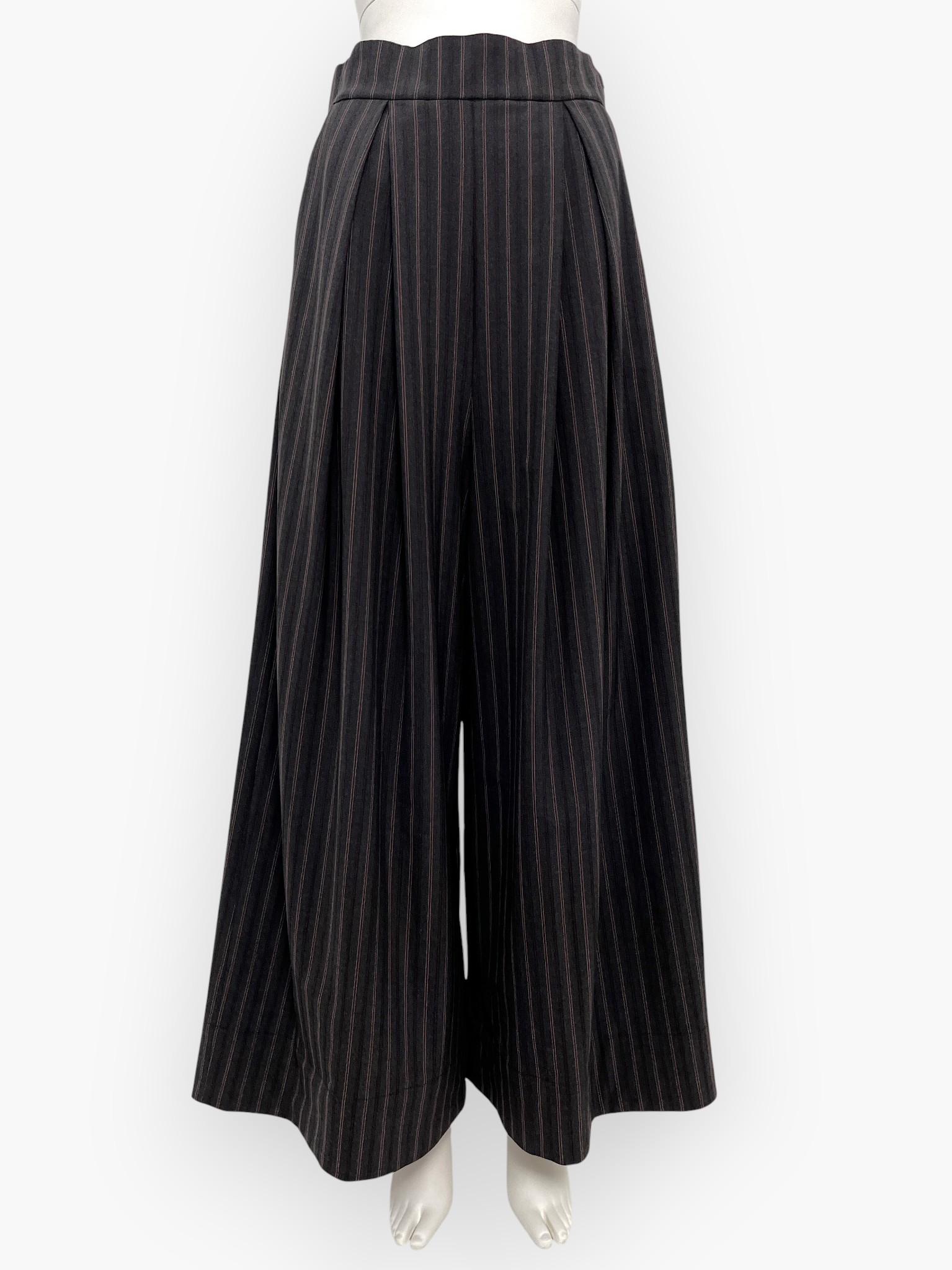 定番のタック入りワイドパンツにストライプ柄が登場。