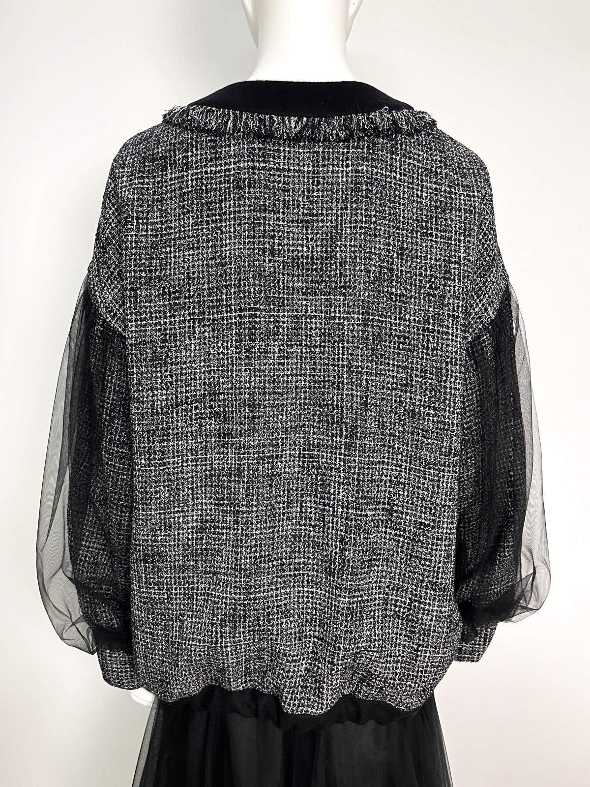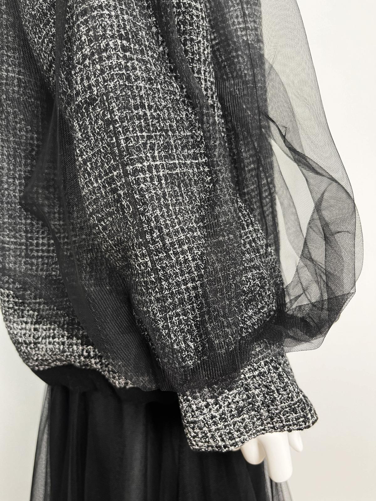 ボリューミーな袖のチュール使いで着映えるブルゾン。