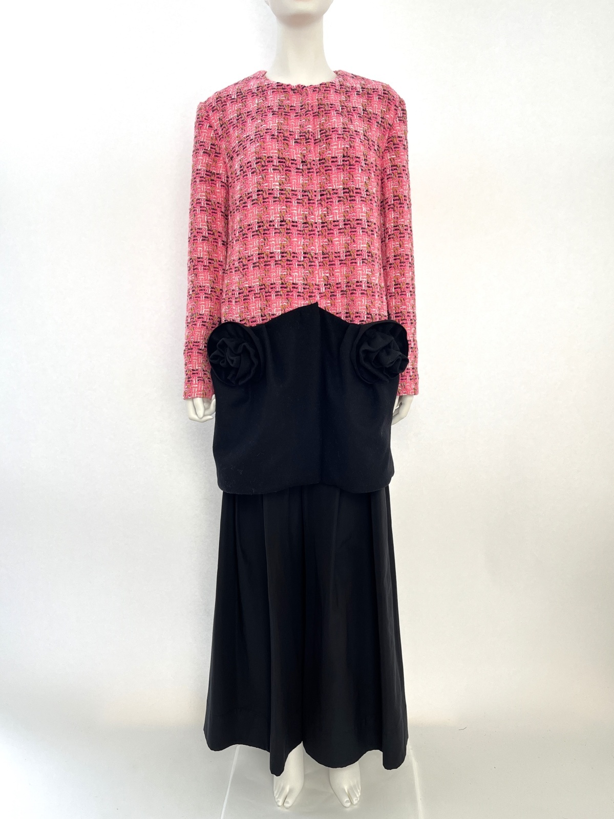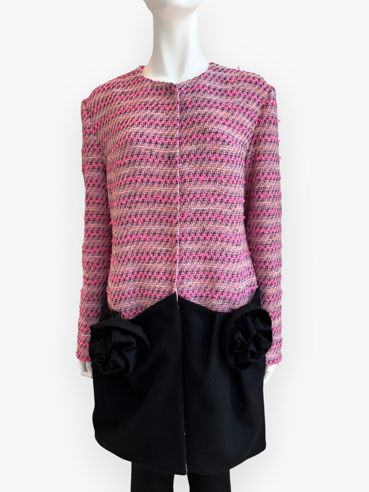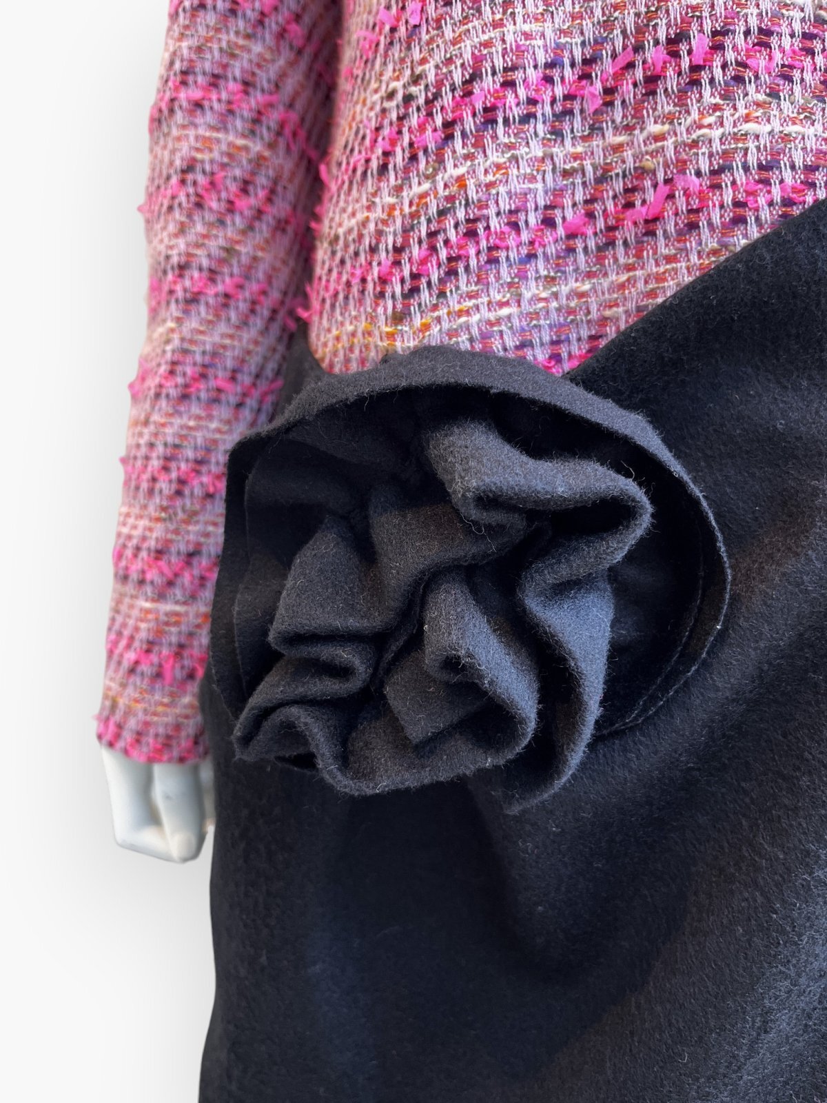 ブラックのメルトンをドッキングさせてメリハリをつけ、ポケットにはバラのモチーフを施した特別な一着です。