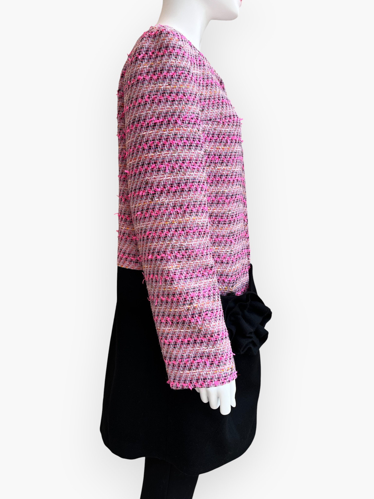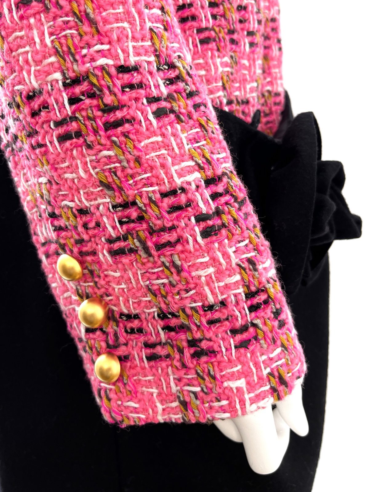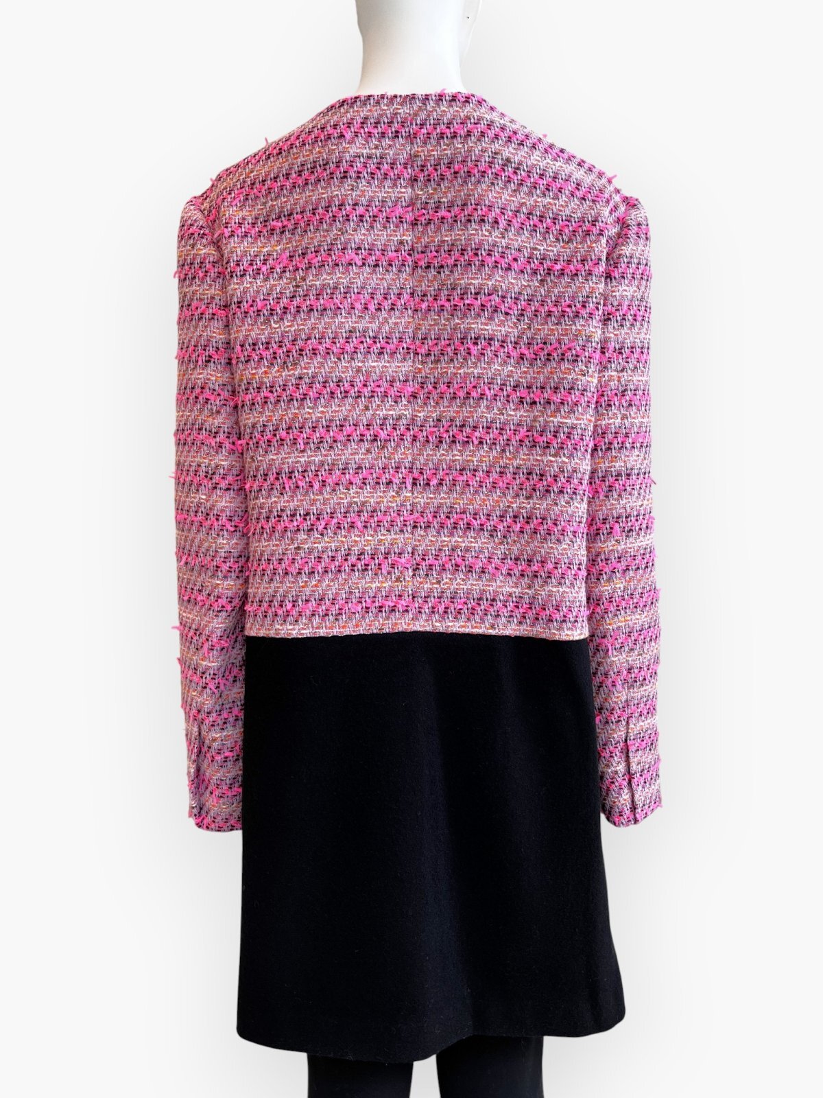 爽やかなピンクをイエローや黒で引き締めた(ピンク32)とパープル系のピンクに蛍光ピンクが映える(ピンク33)の2種類のツイードはどちらも上質な鮮度をプラスしてくれます。