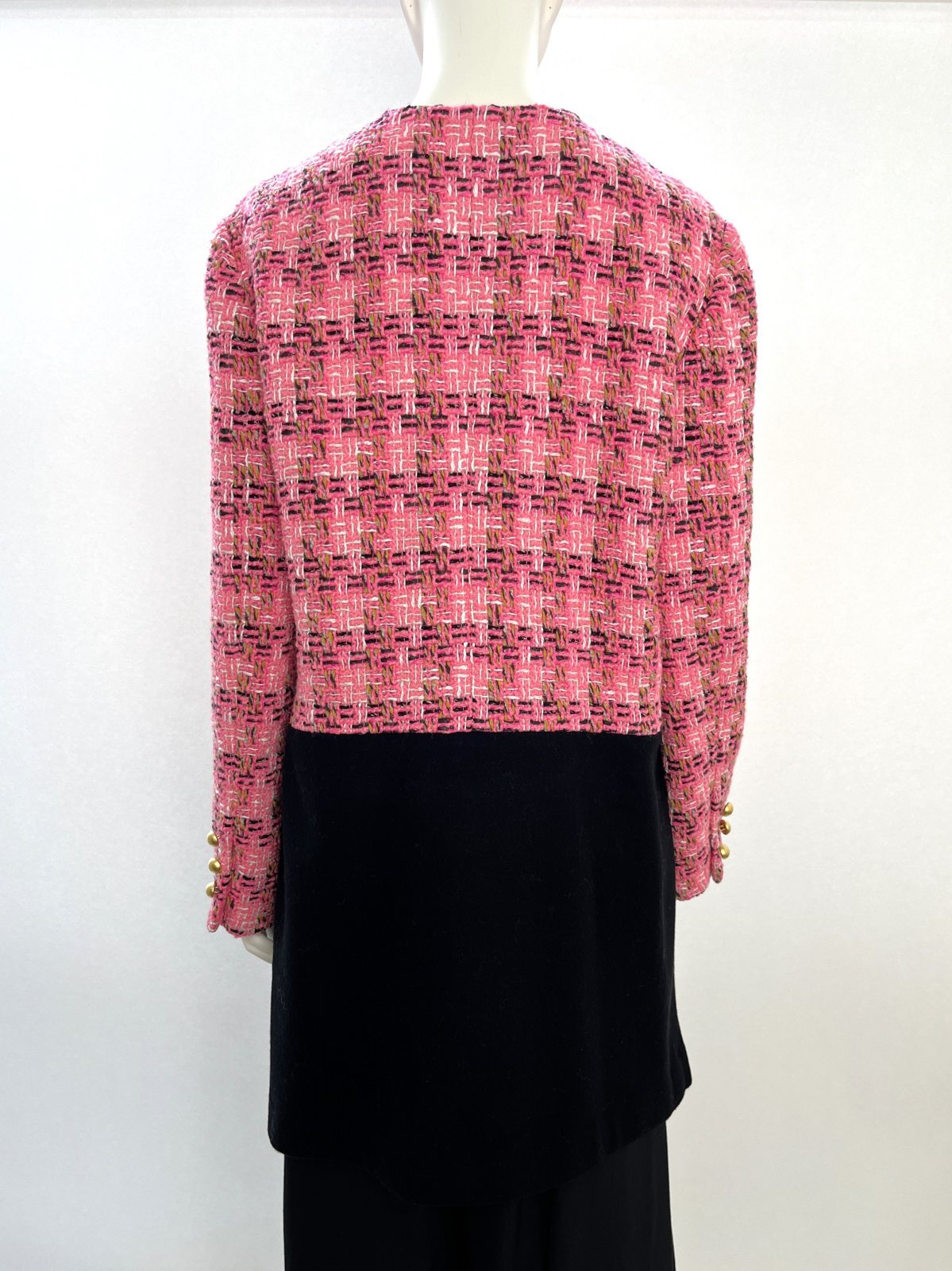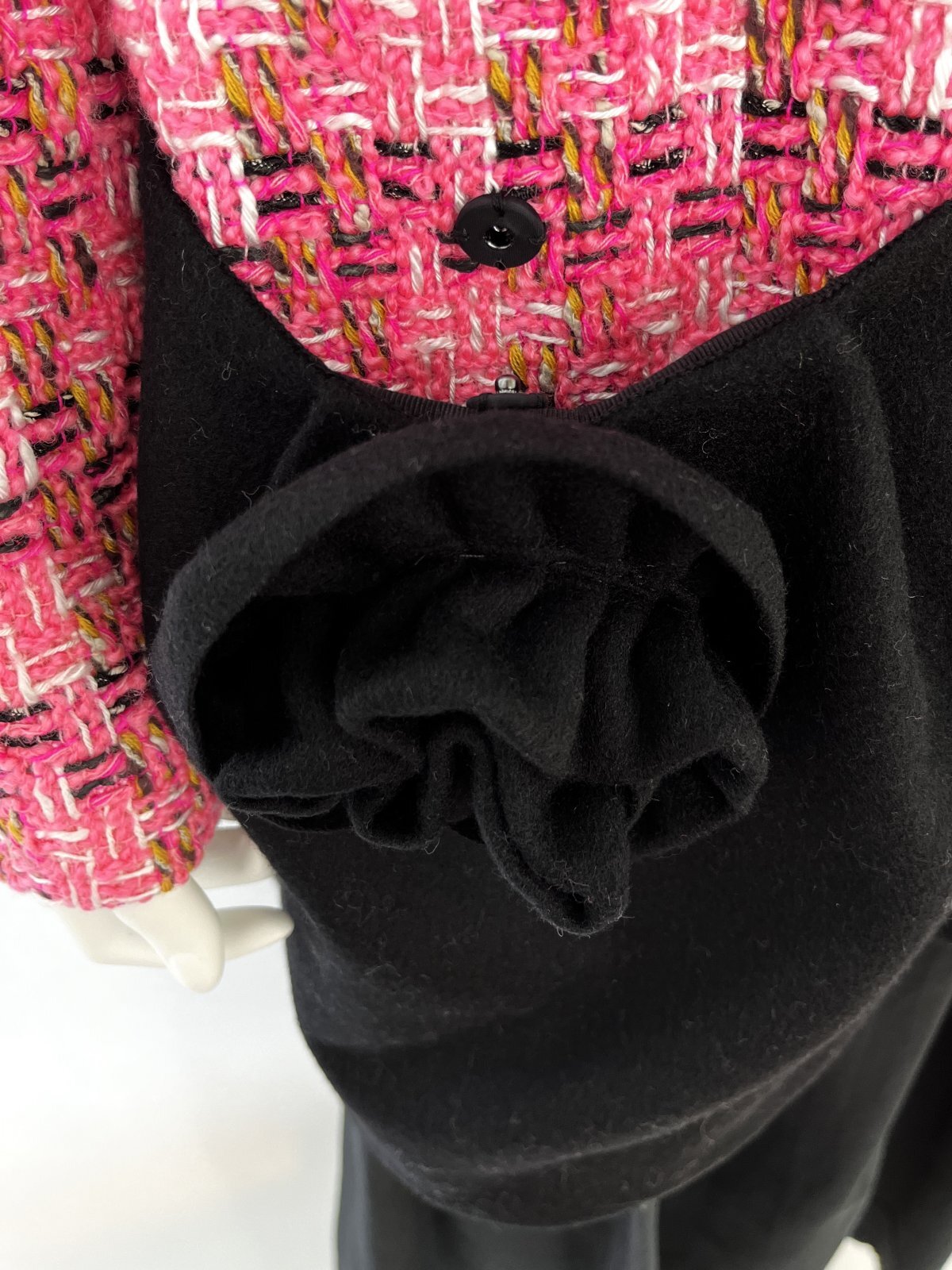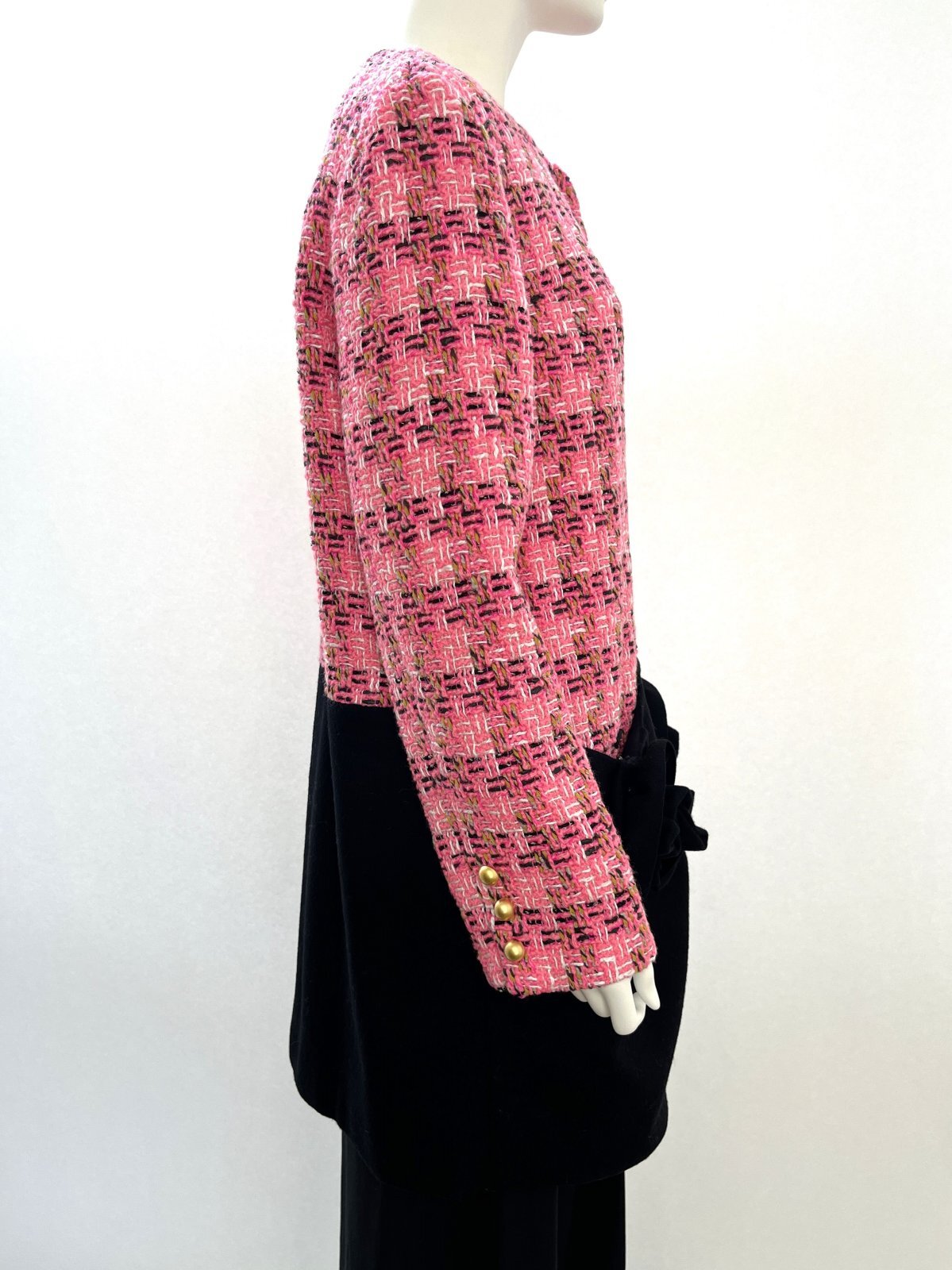 爽やかなピンクをイエローや黒で引き締めた(ピンク32)とパープル系のピンクに蛍光ピンクが映える(ピンク33)の2種類のツイードはどちらも上質な鮮度をプラスしてくれます。