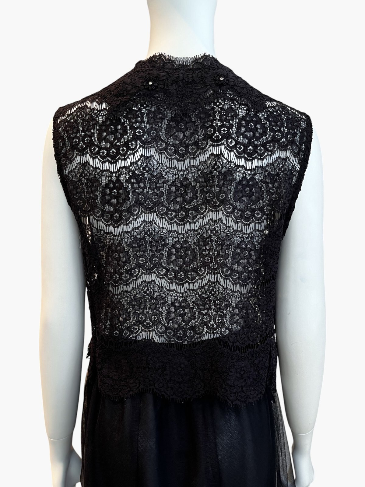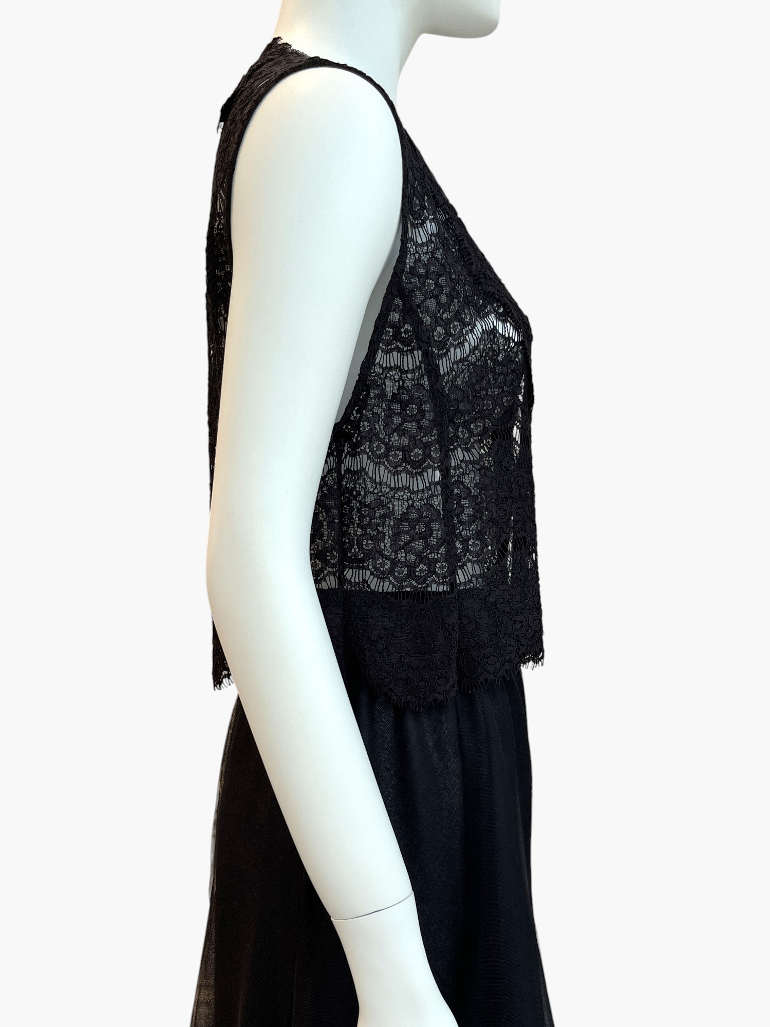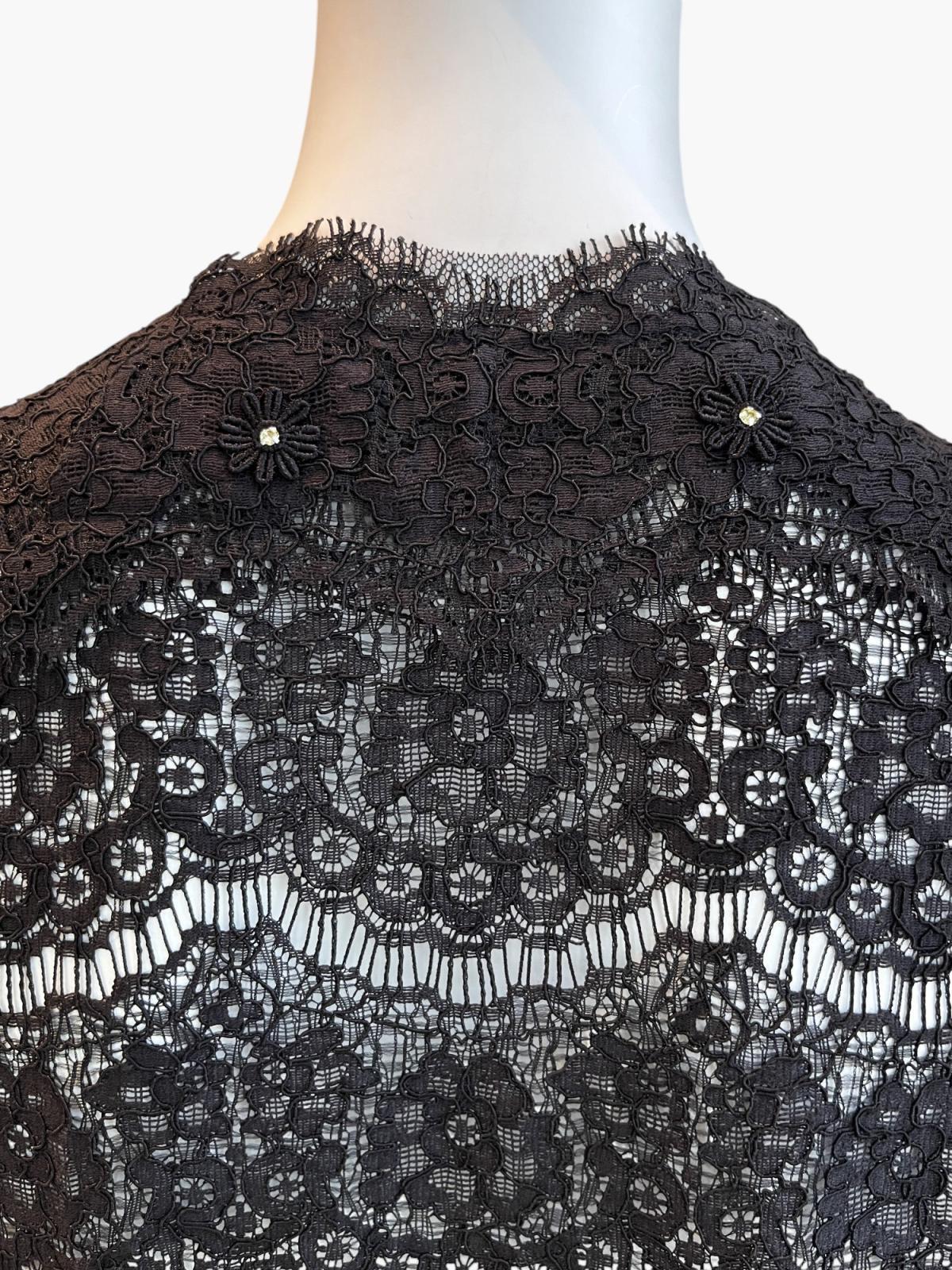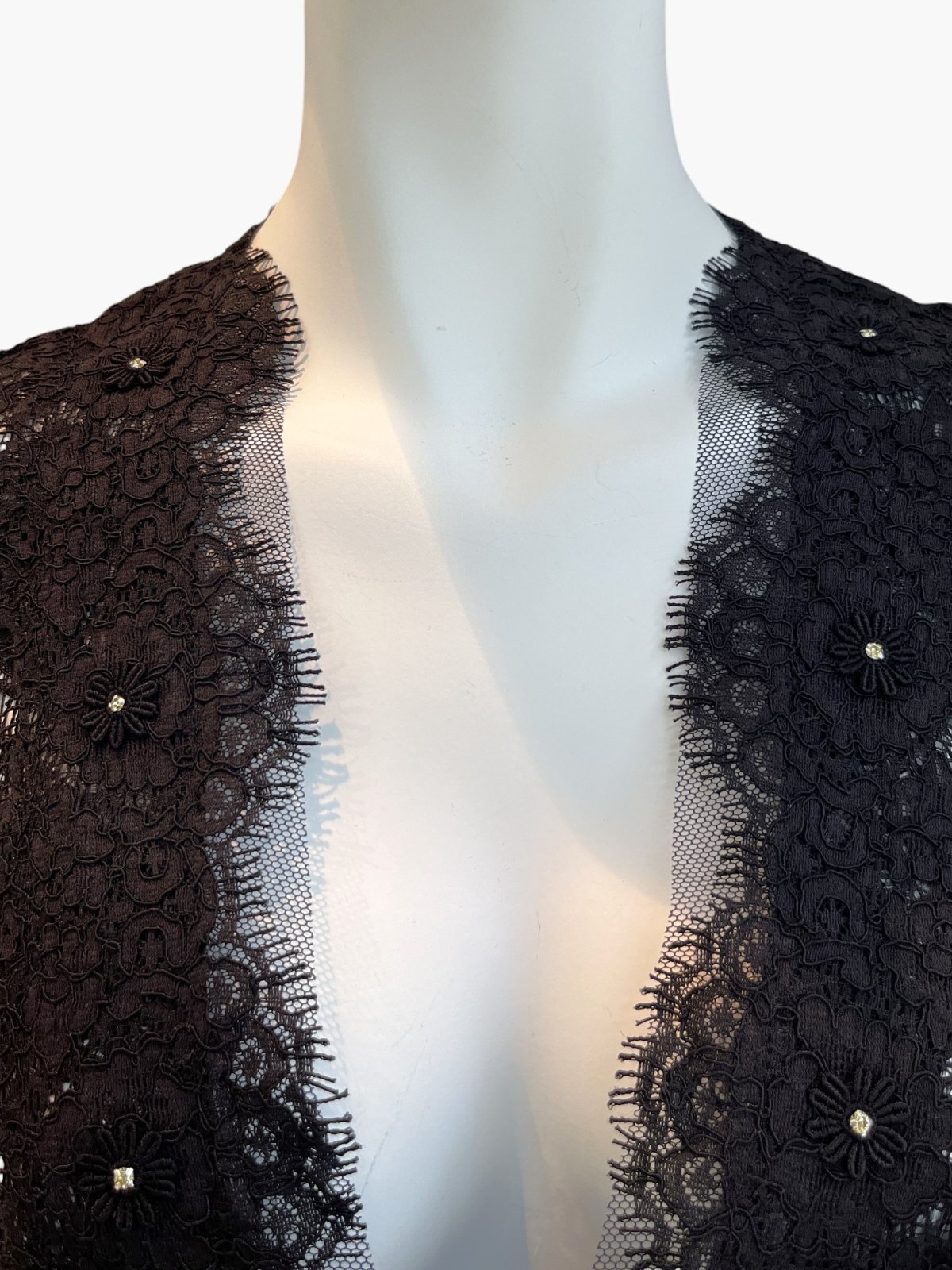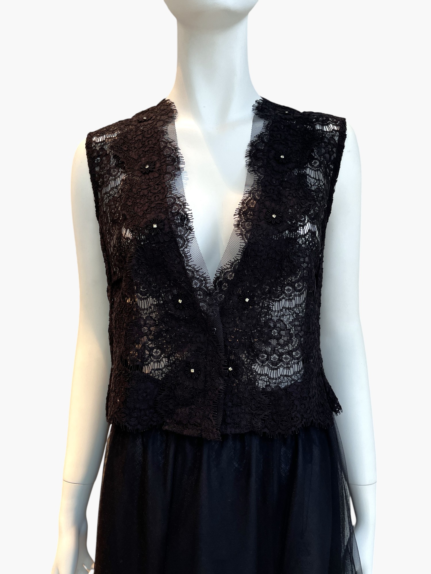 フラワーモチーフのアイラッシュレースを贅沢に使用したショートジレ。