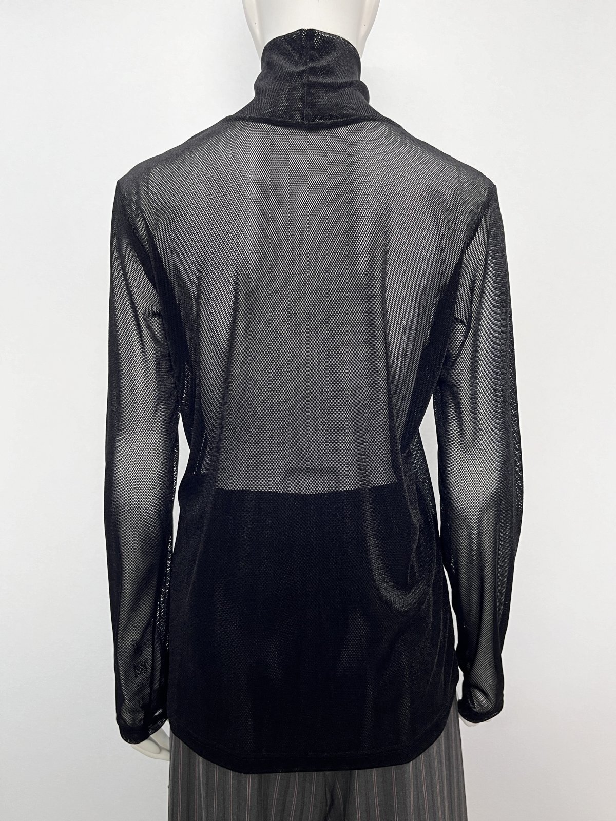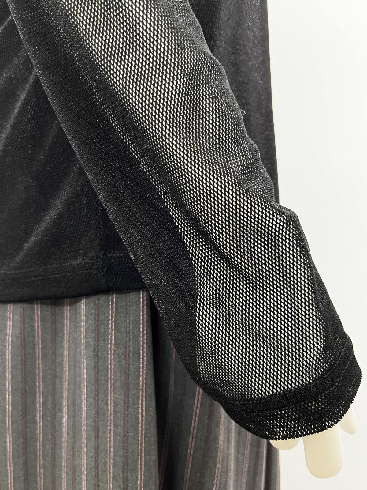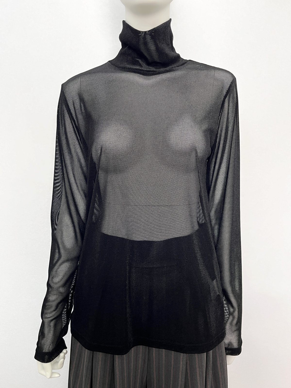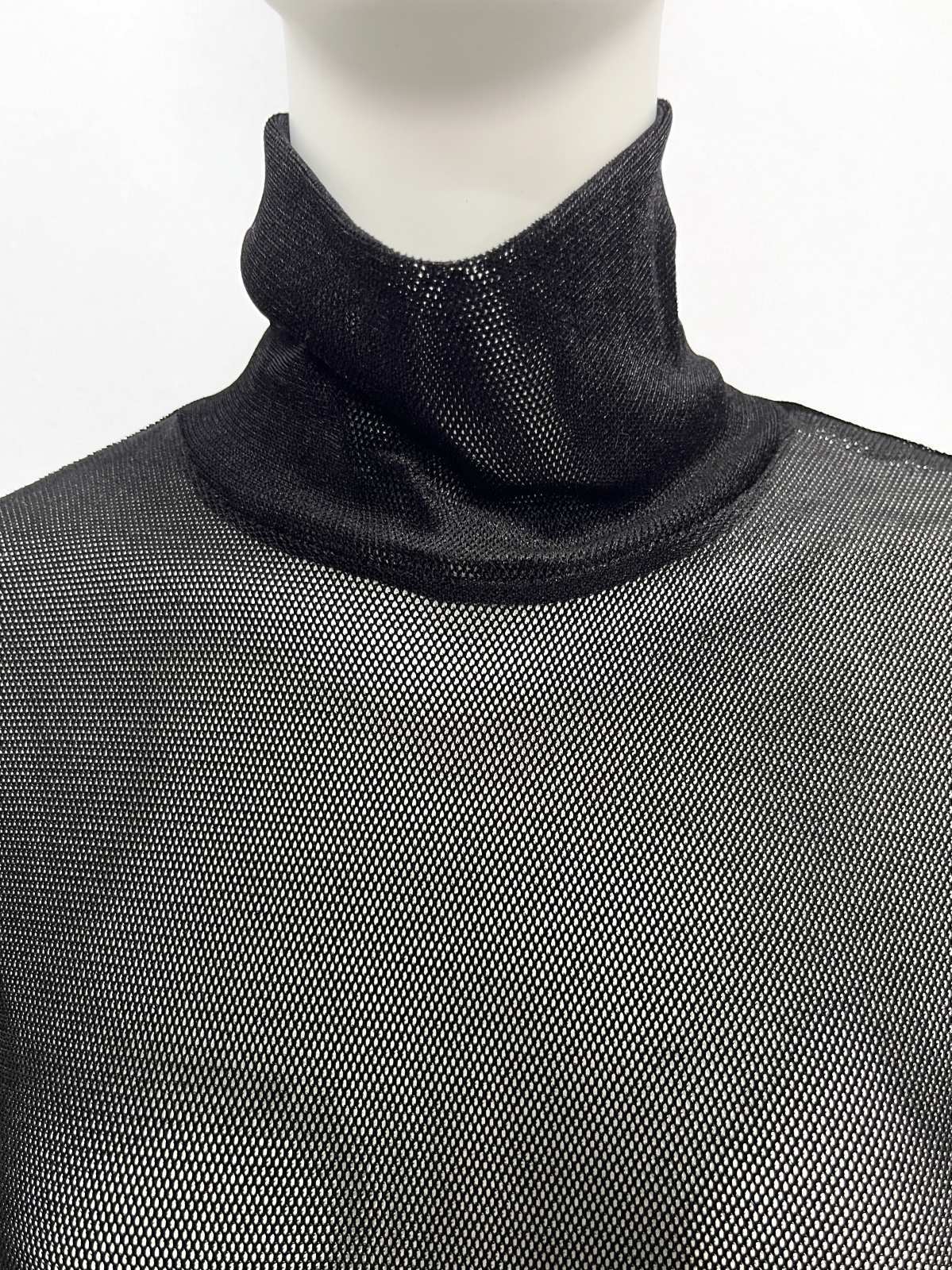 何にでも合わせやすいベーシックなスタンドネックのインナーを、ベロアメッシュ素材でワンランクアップさせました。