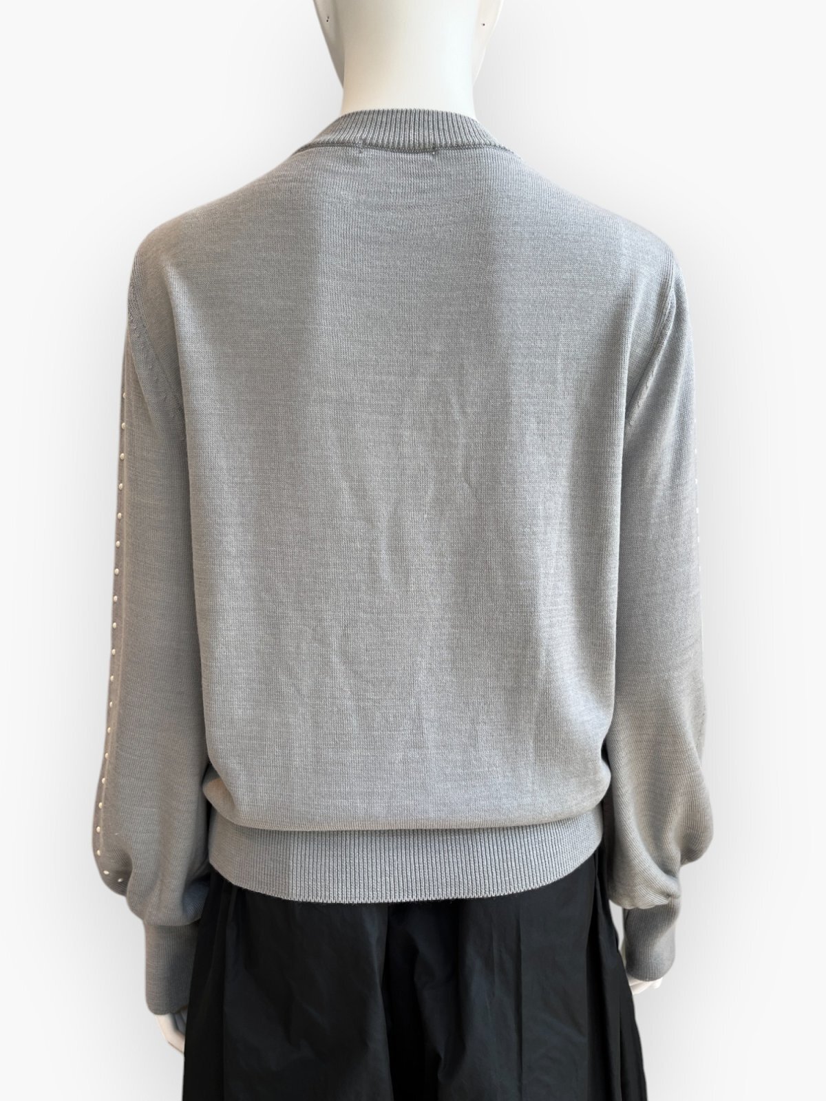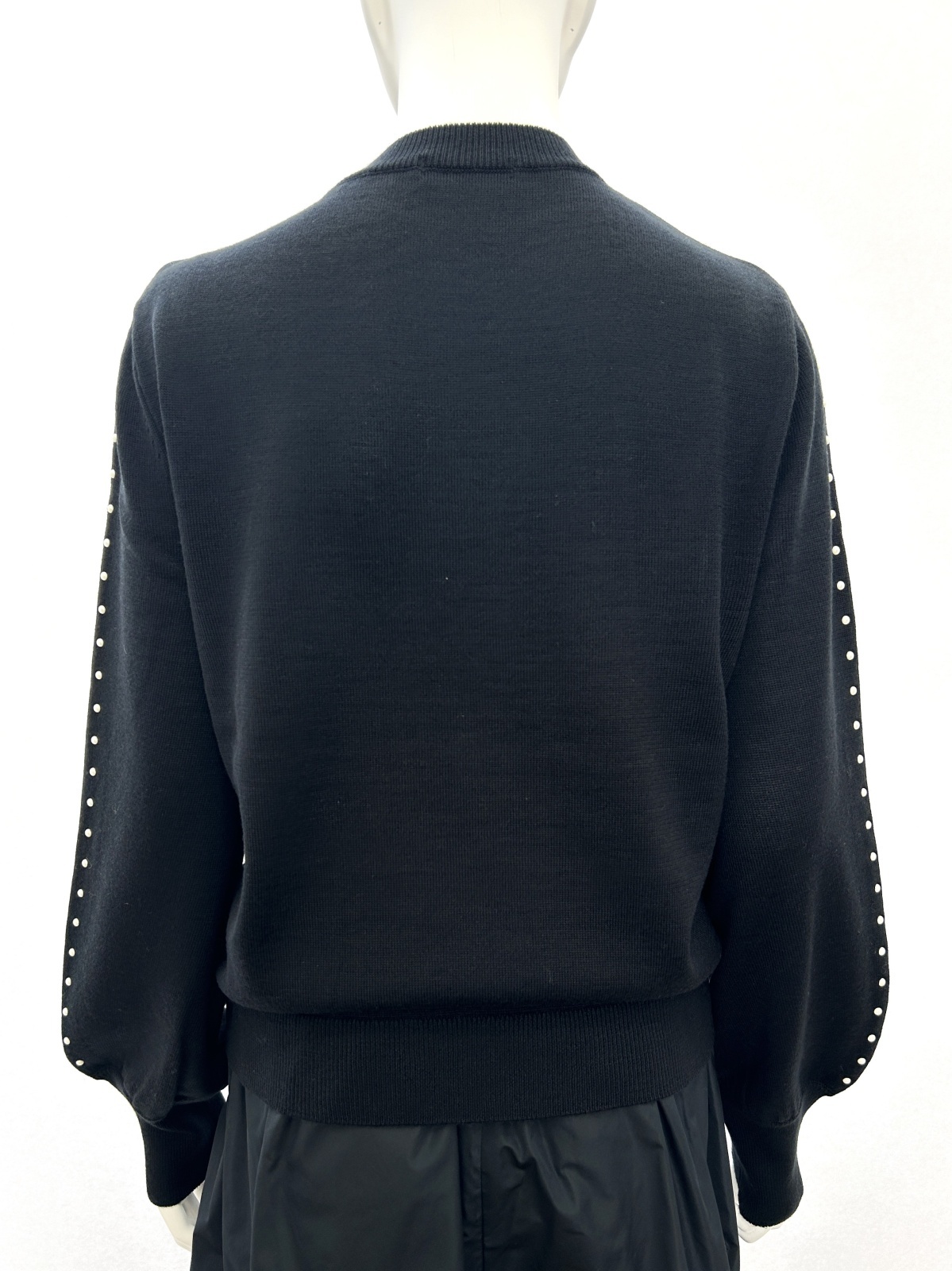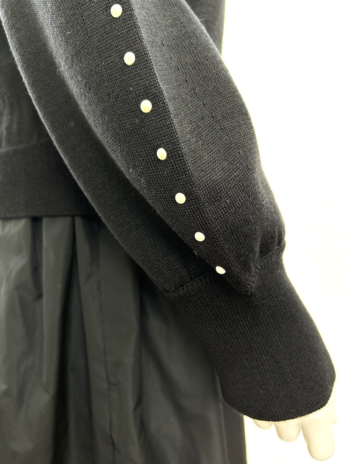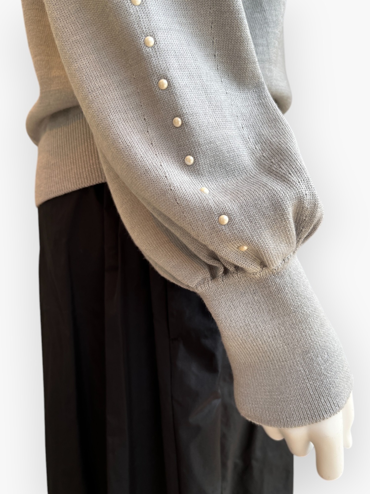 ぷっくりとした立体感があるドームパールを袖にライン状にホットフィット加工したニット。