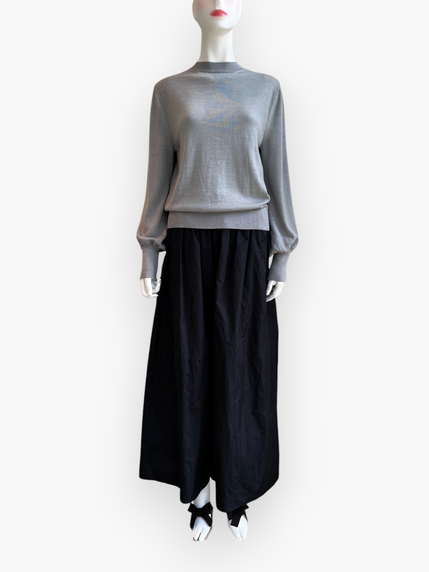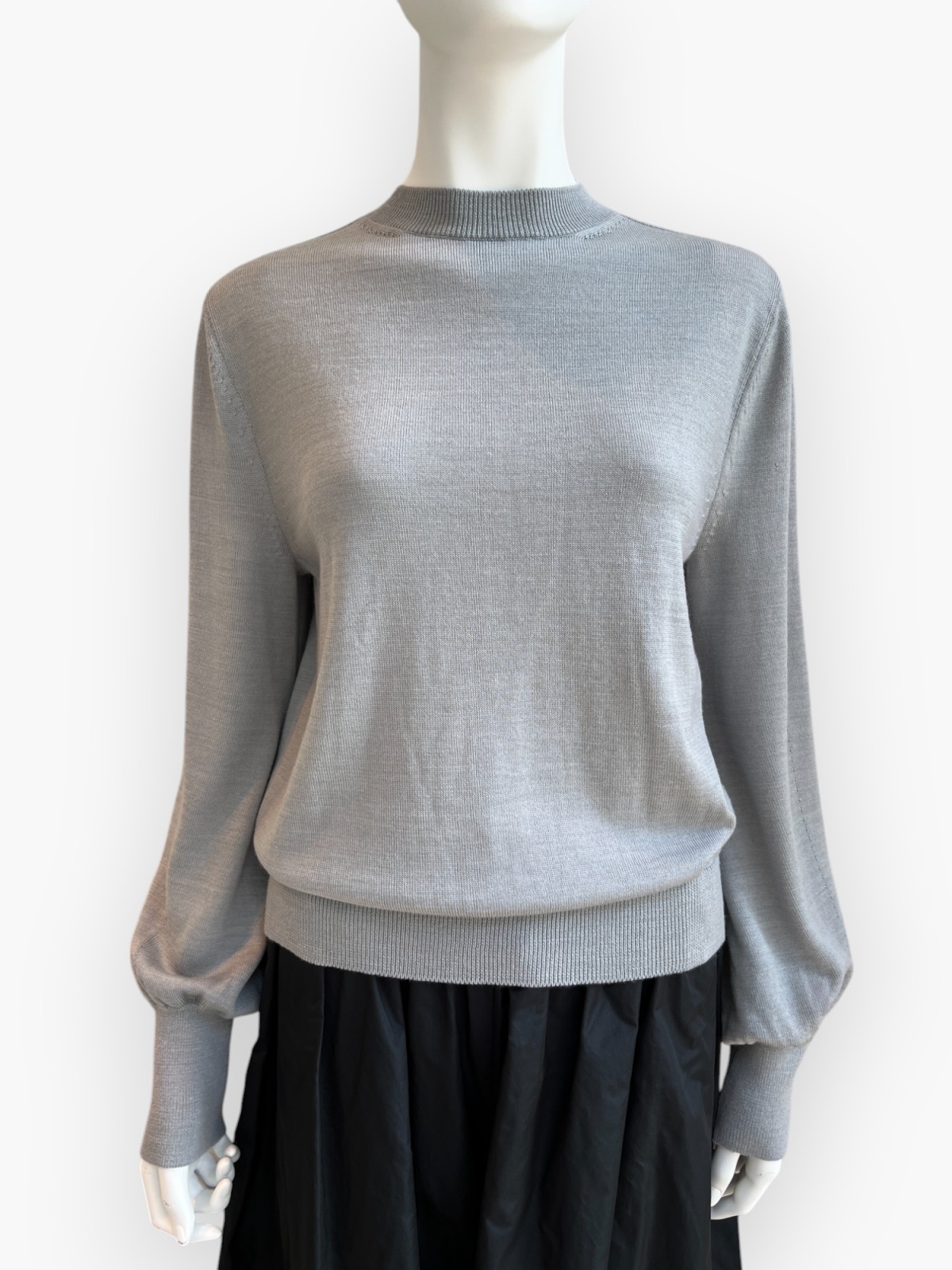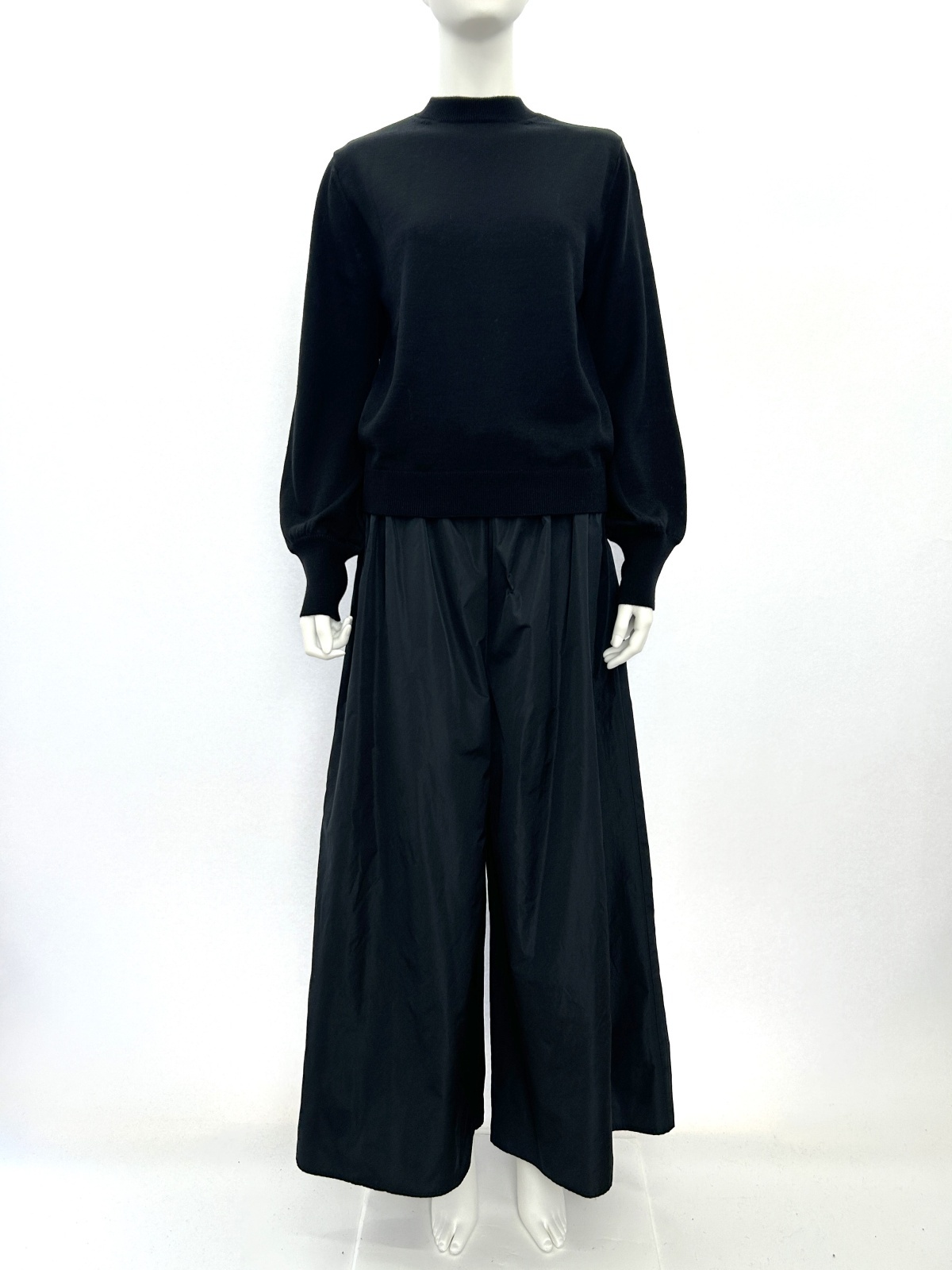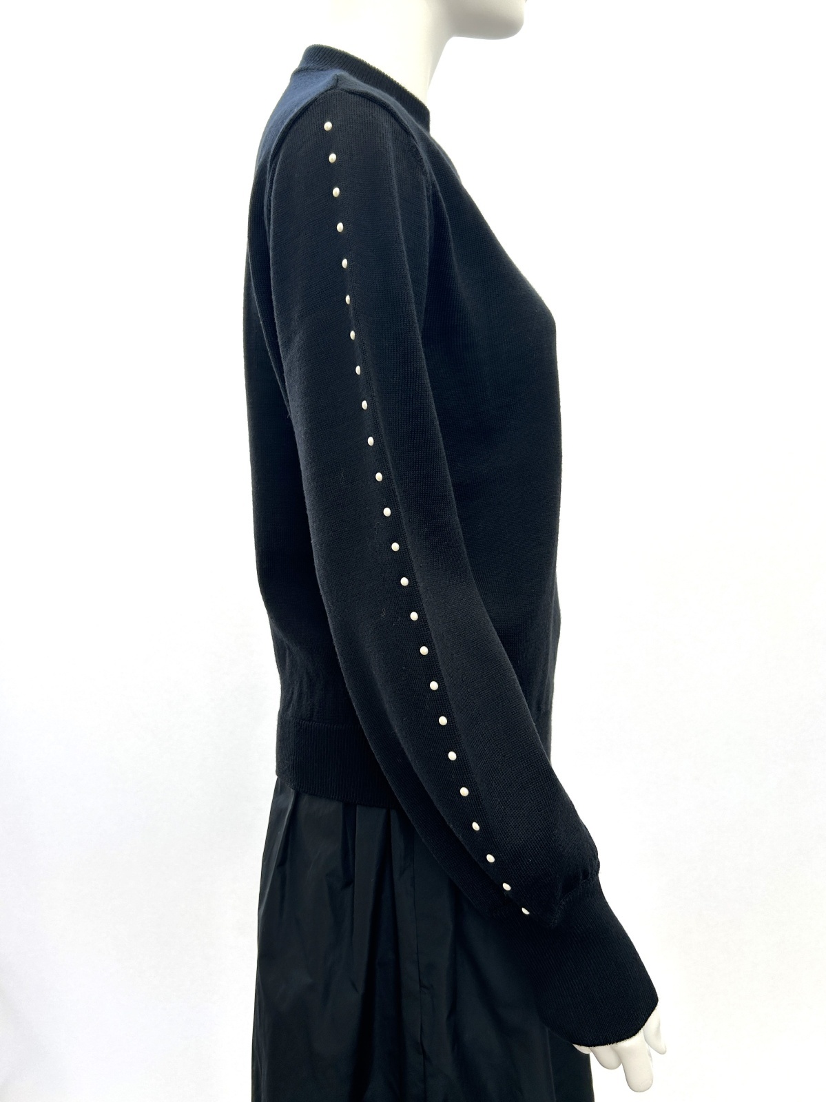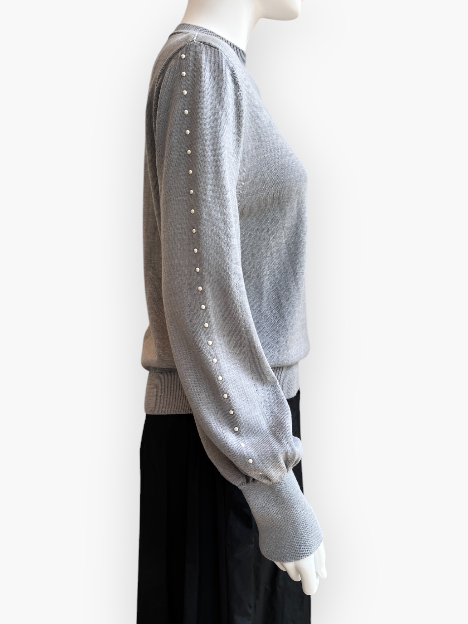 ぷっくりとした立体感があるドームパールを袖にライン状にホットフィット加工したニット。
