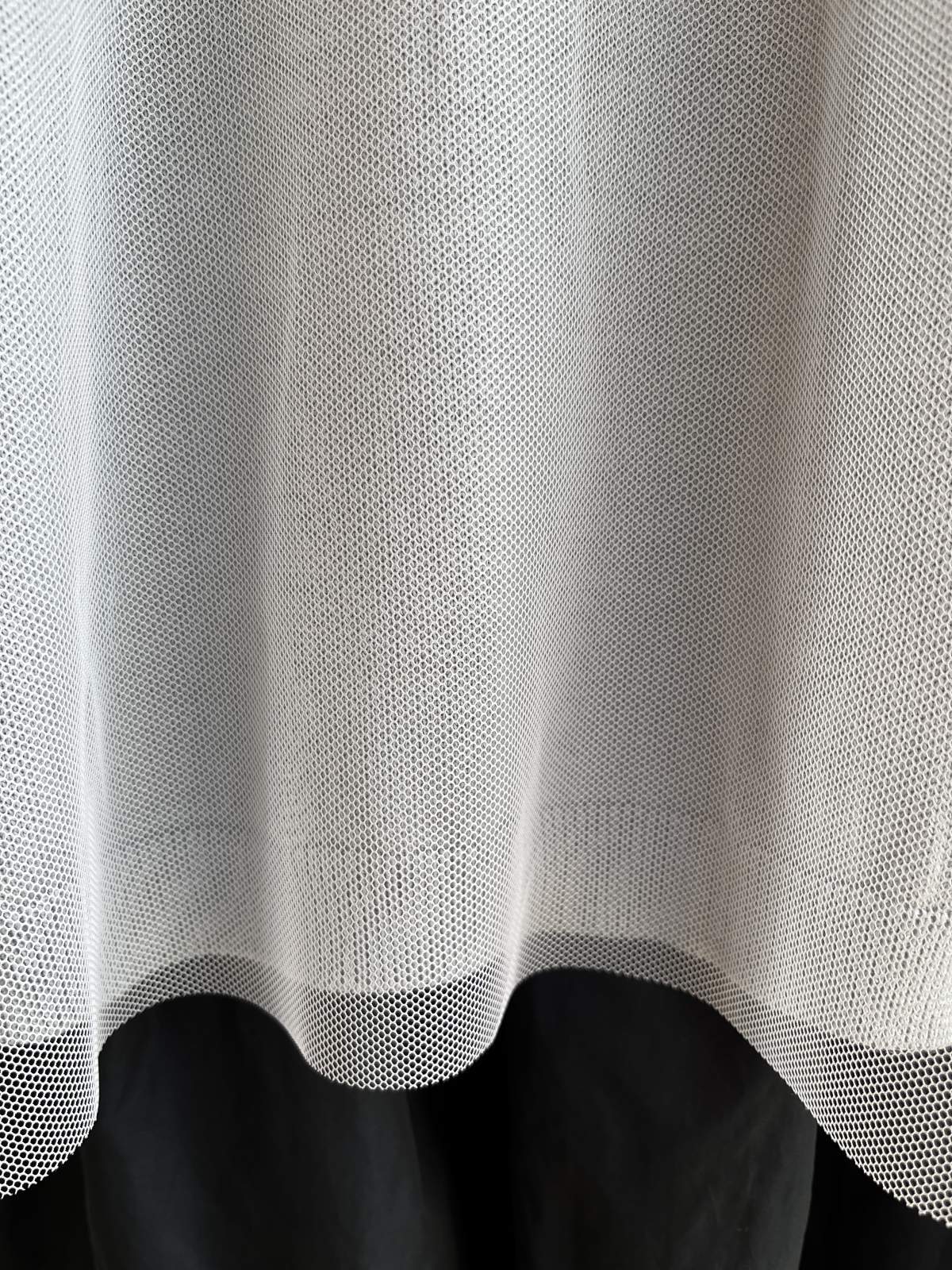 チュールの裾をたたかず、ニットとの間にエアリーな動きを出し抜け感をプラス。
