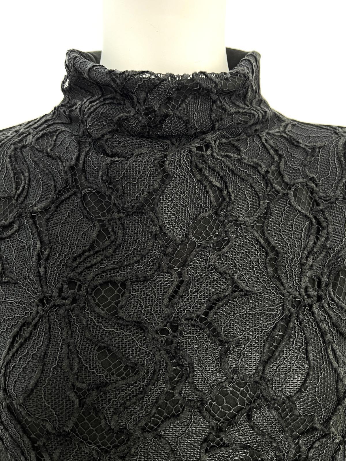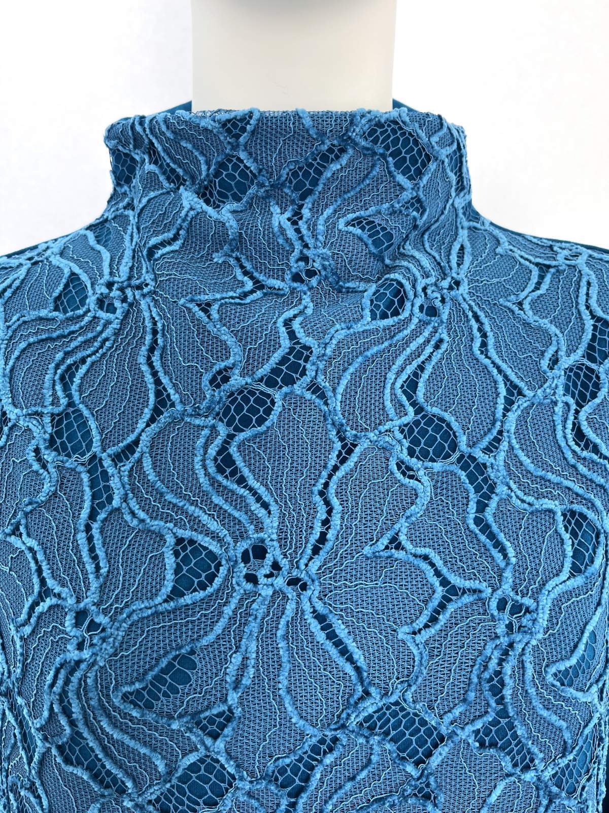 立体感があるフラワー柄レースを前面に使用したエレガントなワンピース。