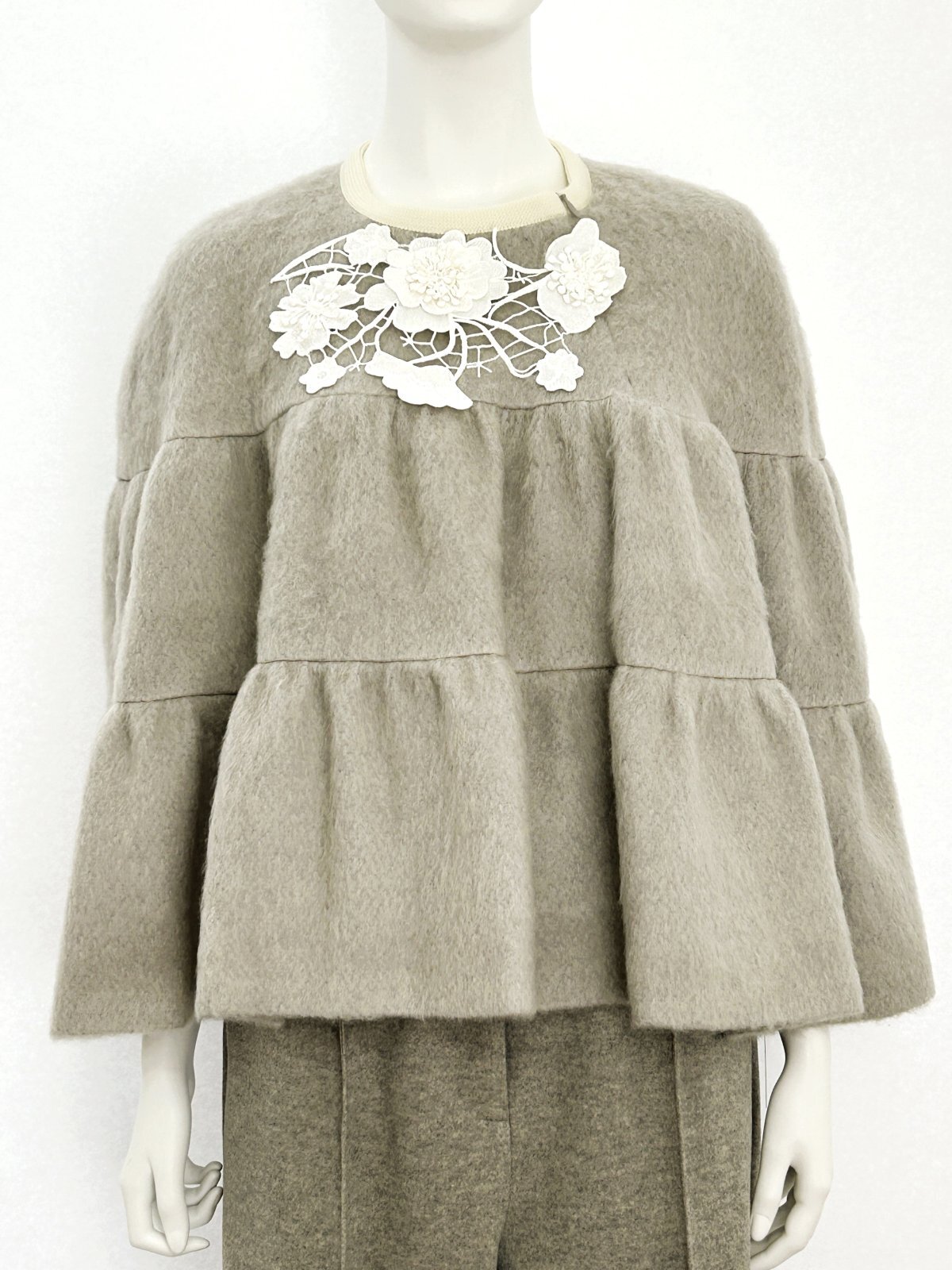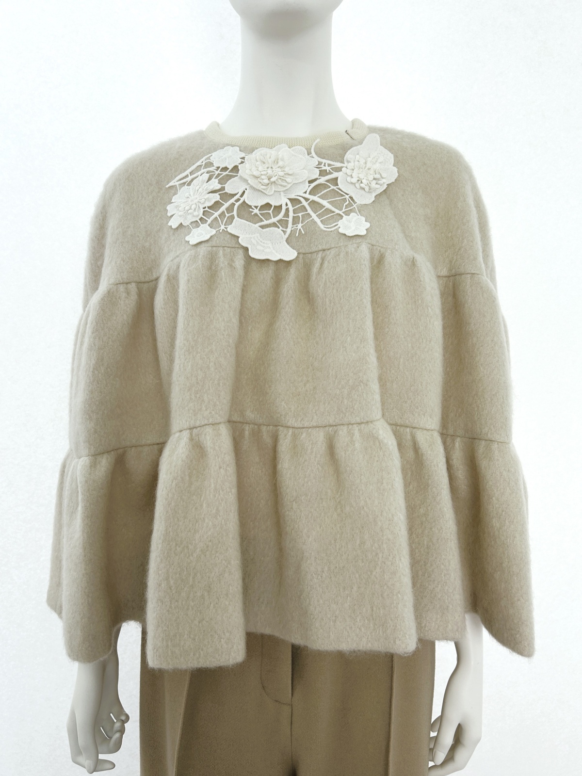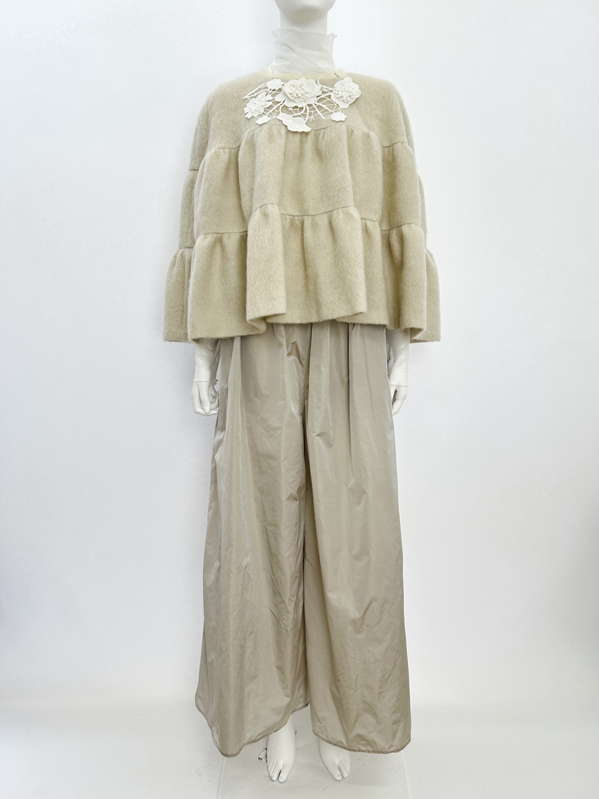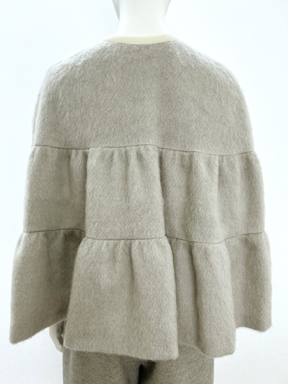 シーズンムードを高めてくれるシャギー仕立てのケープ。