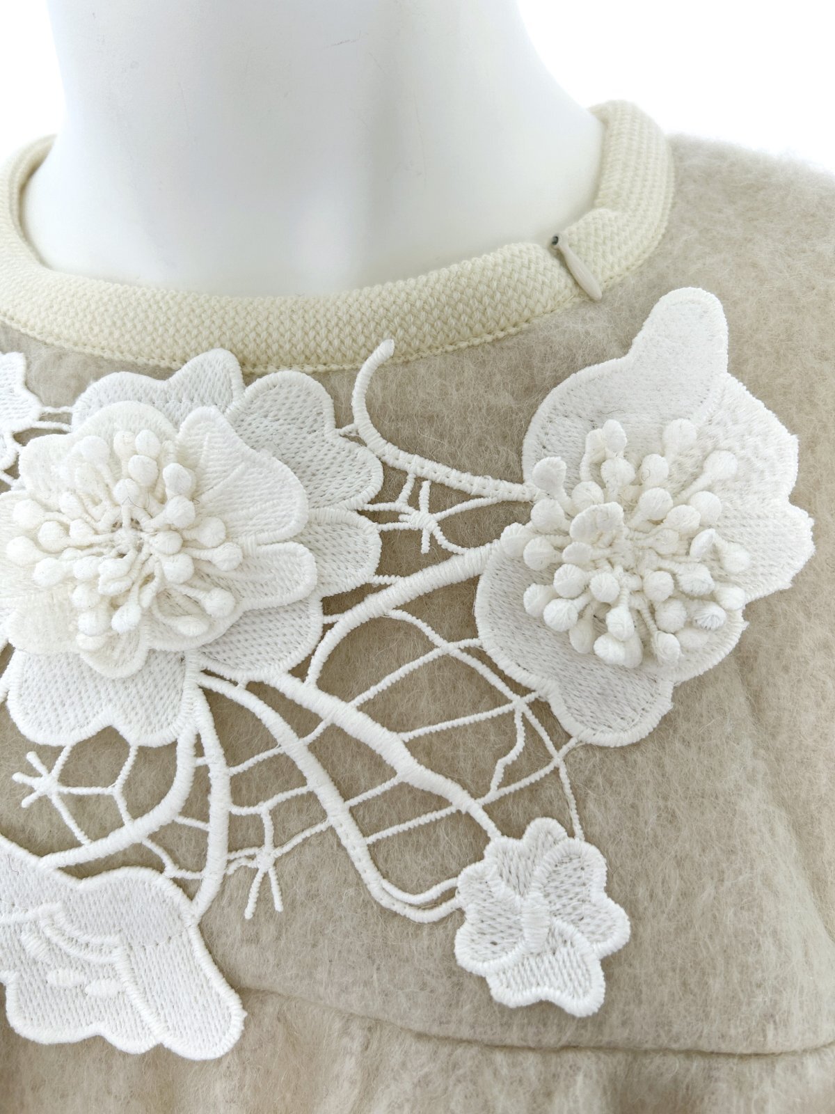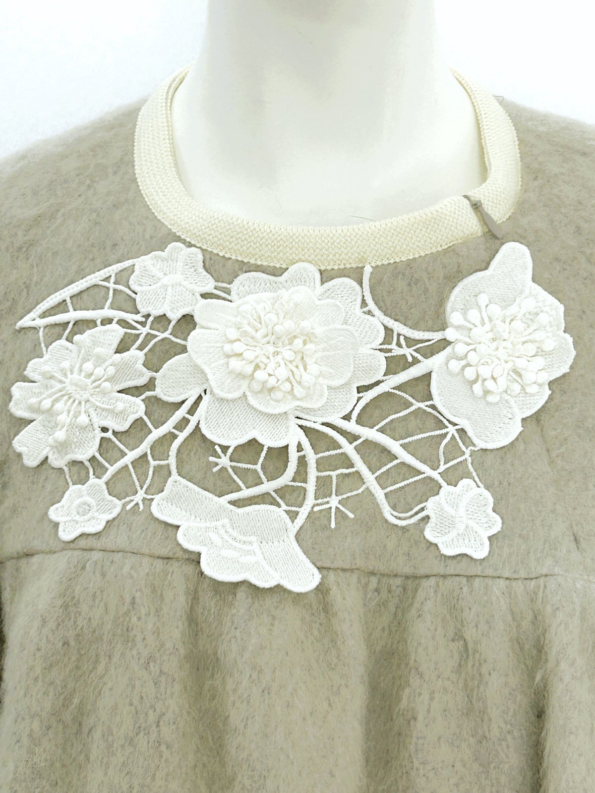 胸元の立体的なフラワーモチーフレースが高級感をプラスしてくれます。