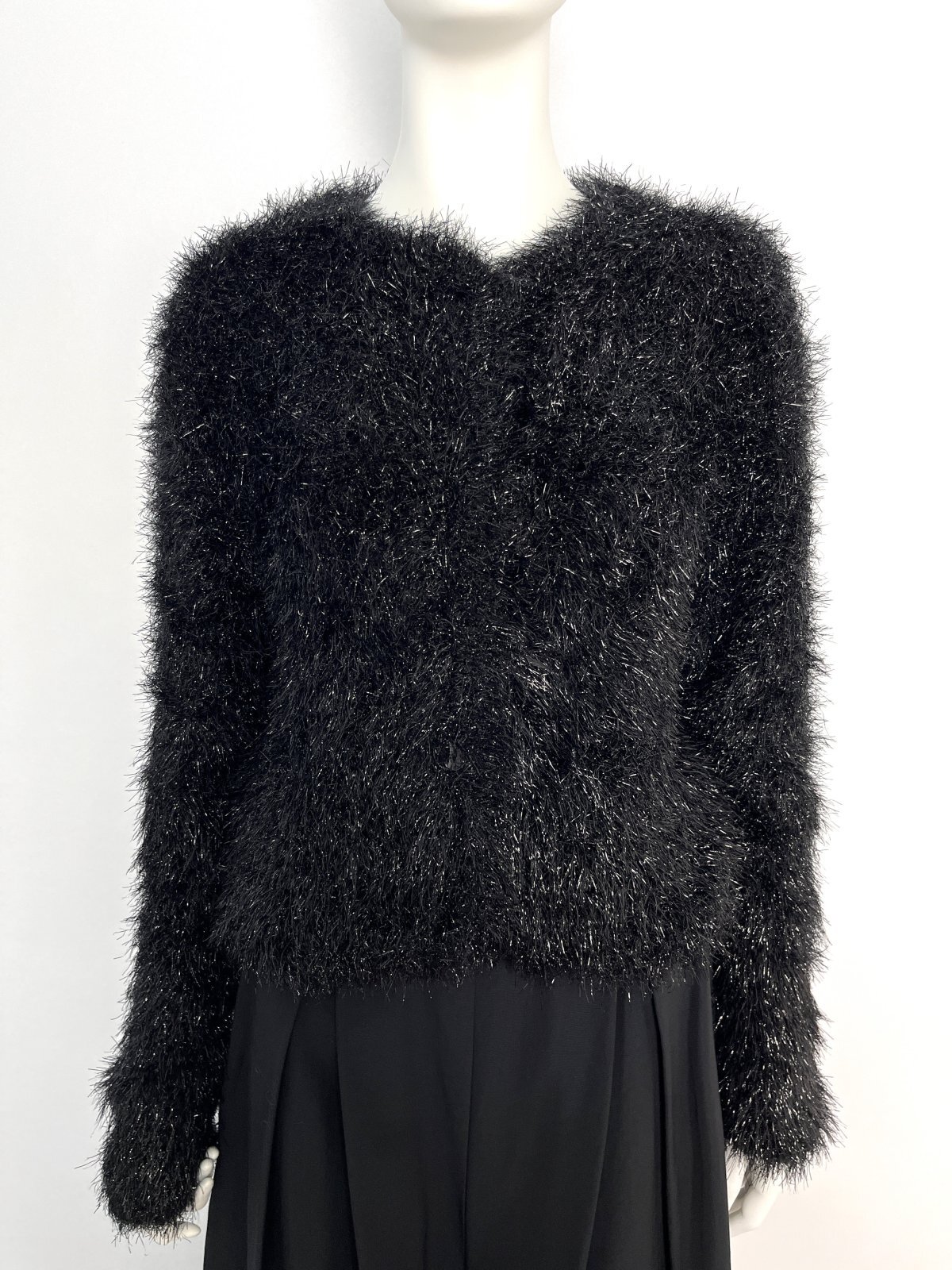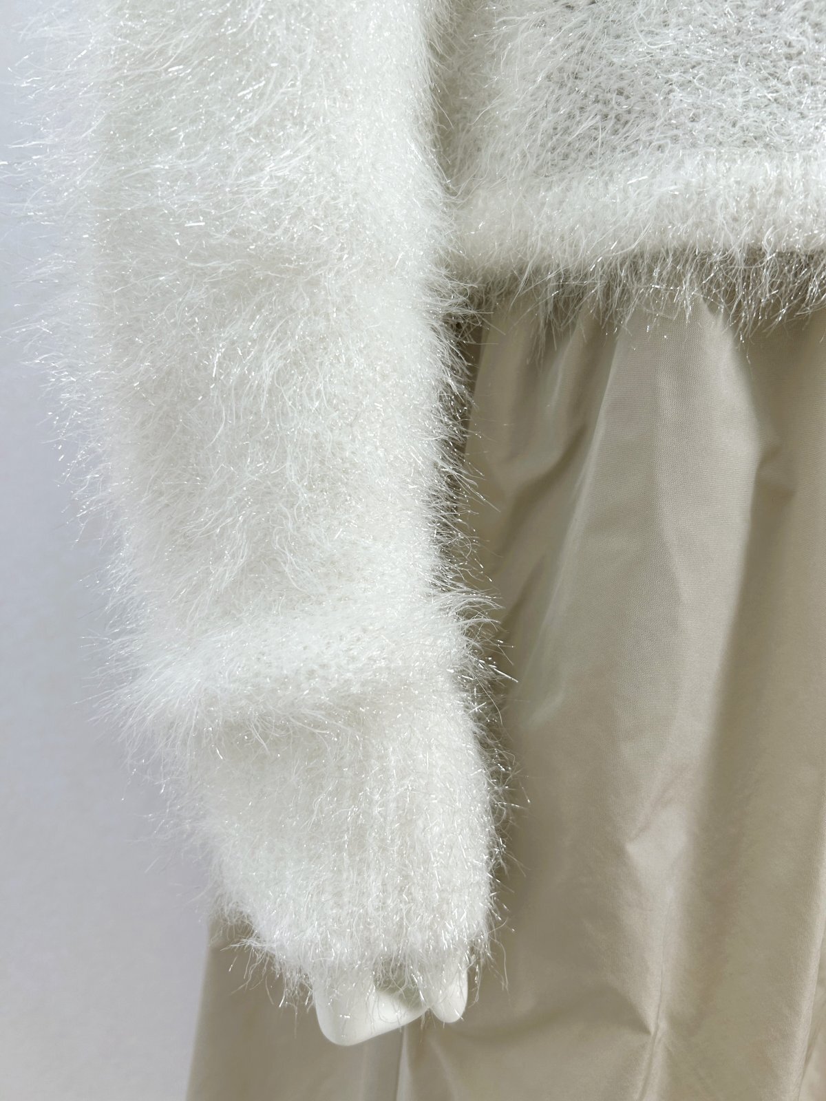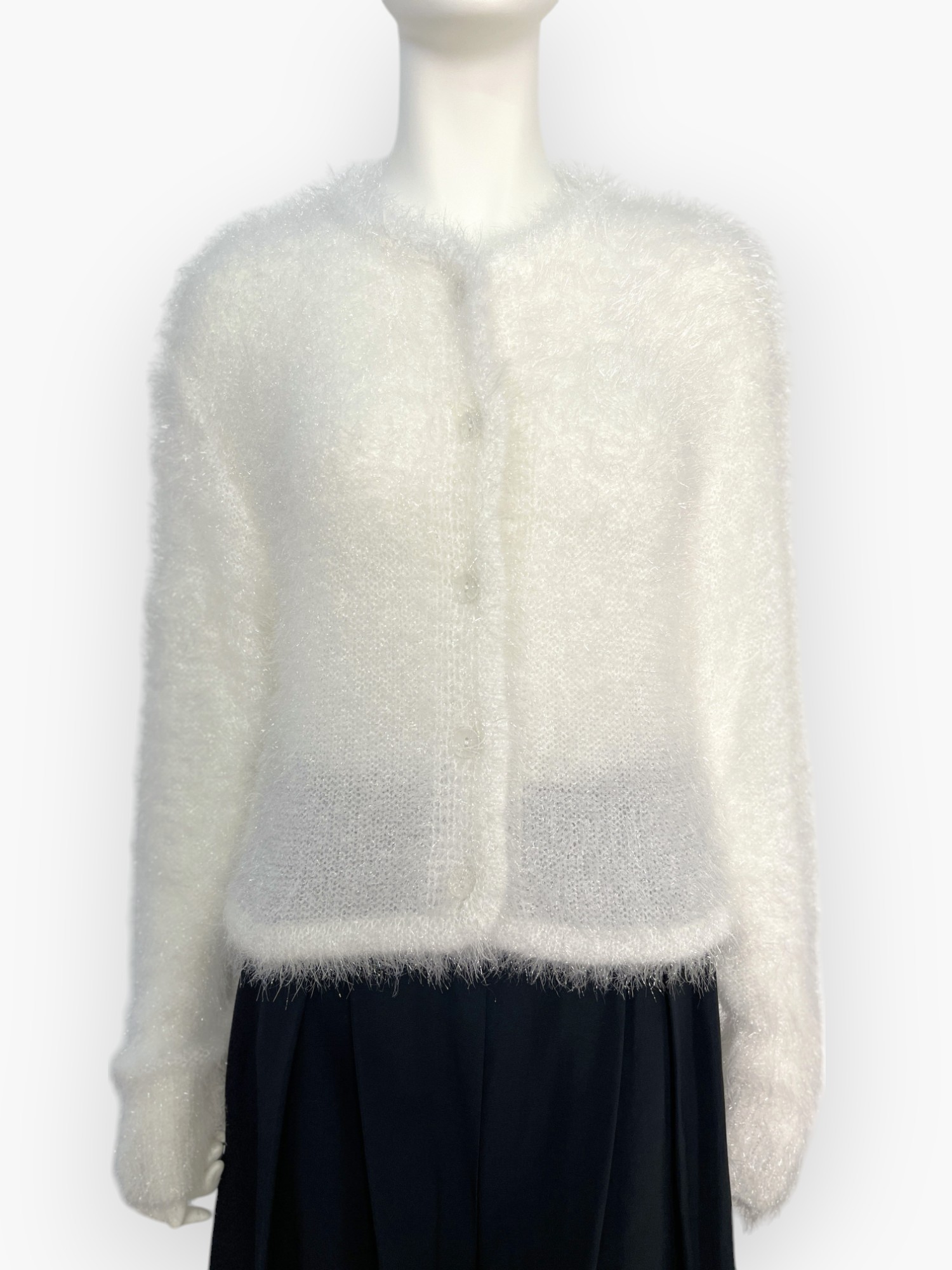 ふわふわのラメ入りシャギーがフェミニンなニットカーディガン。