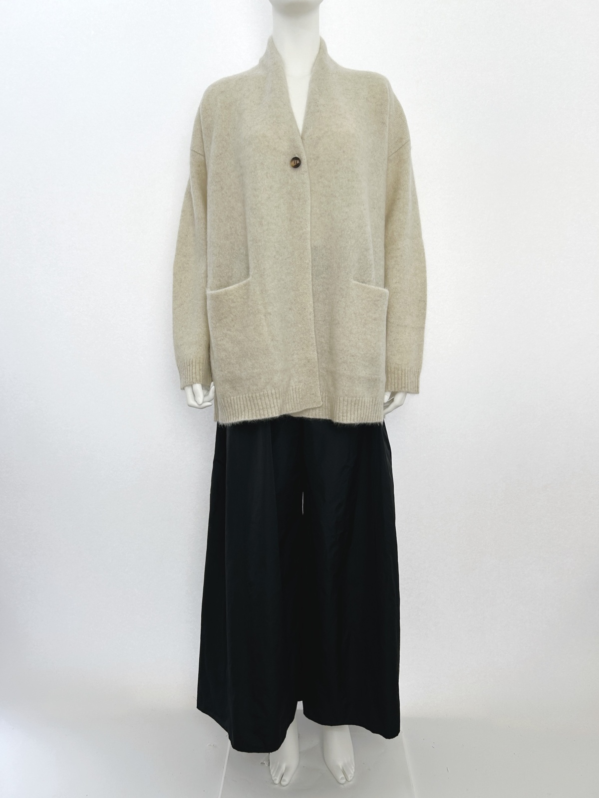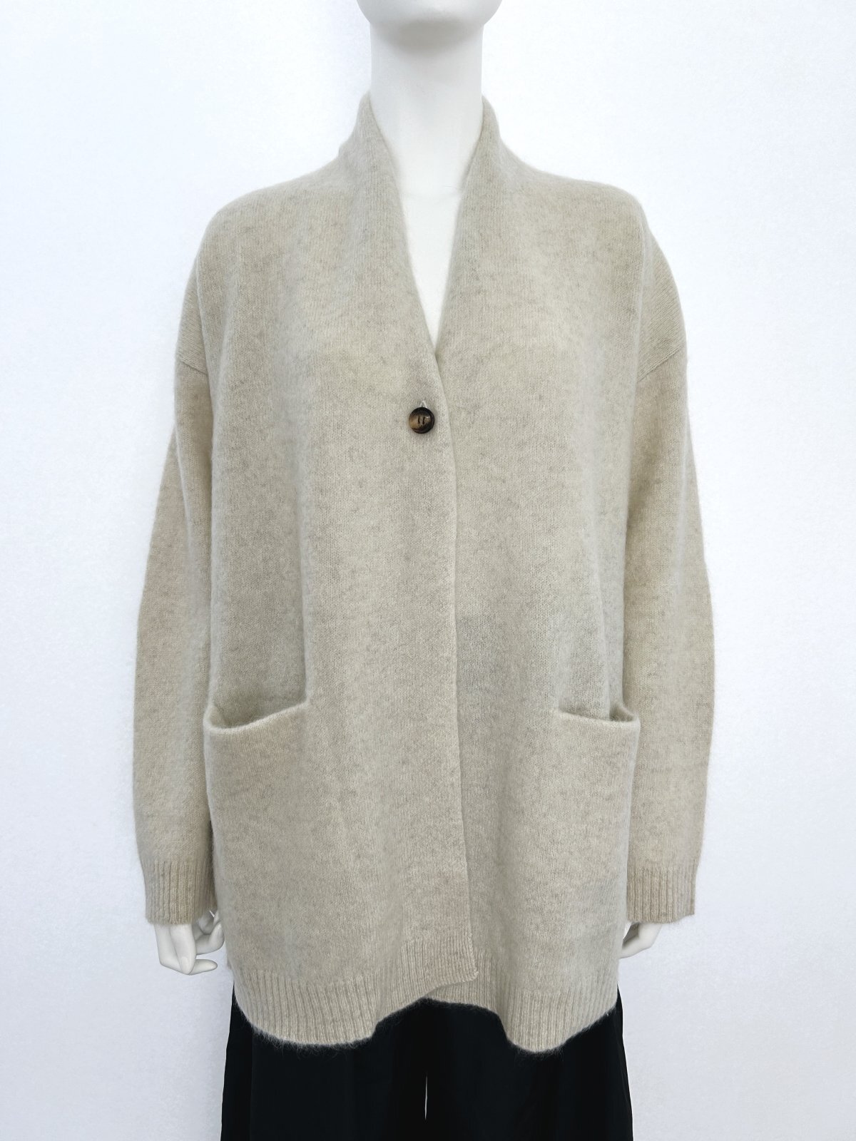 毎年人気のふんわりエアリーに編み上げたヤクのカーディガン。