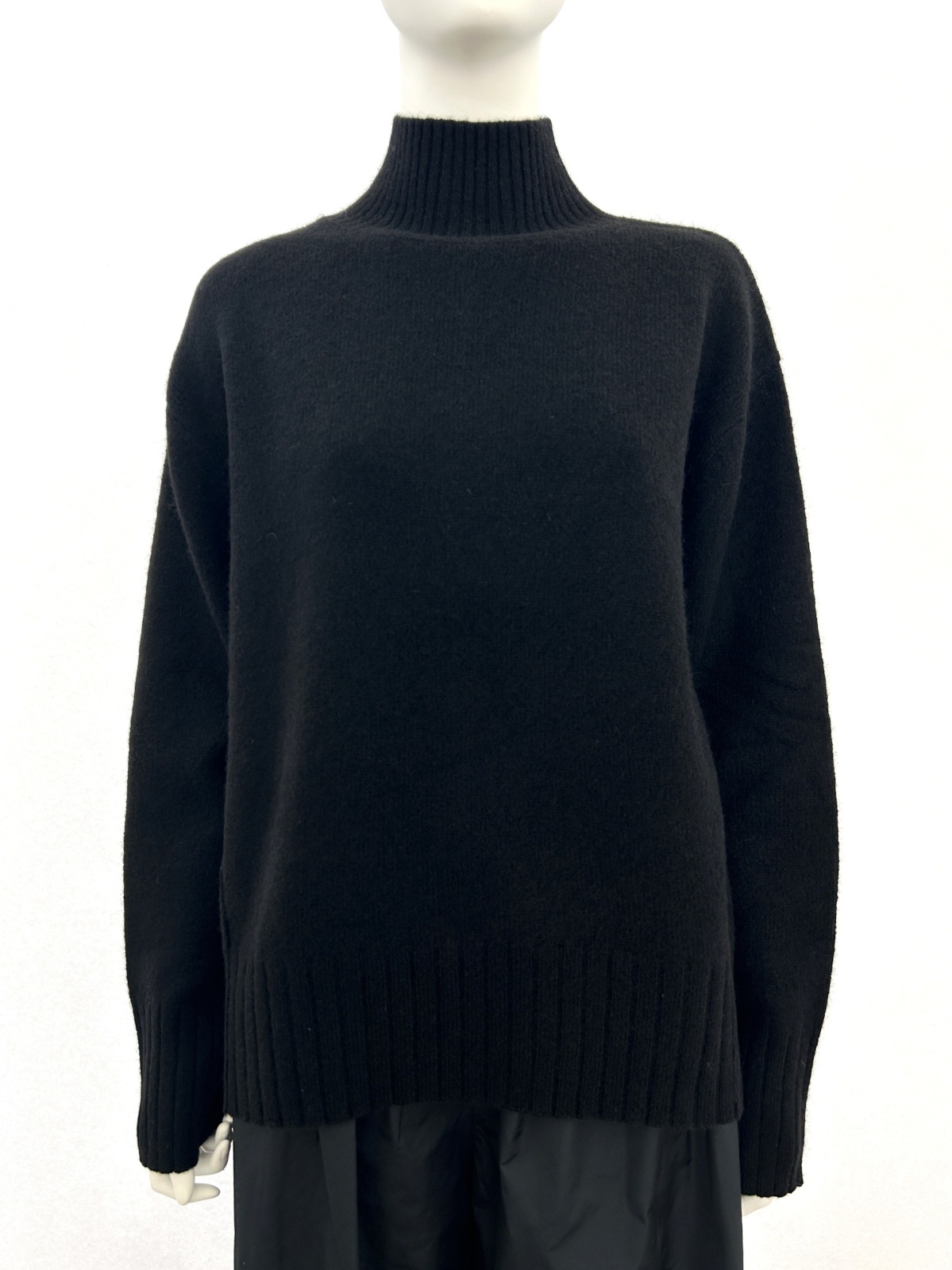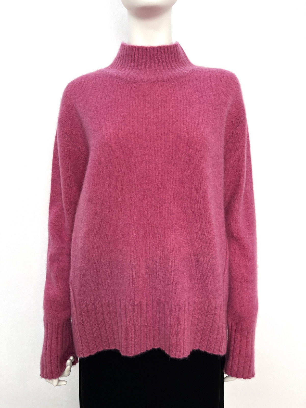 ネック、袖口、裾で編地切替のデザインを入れたシンプルなデザインです。