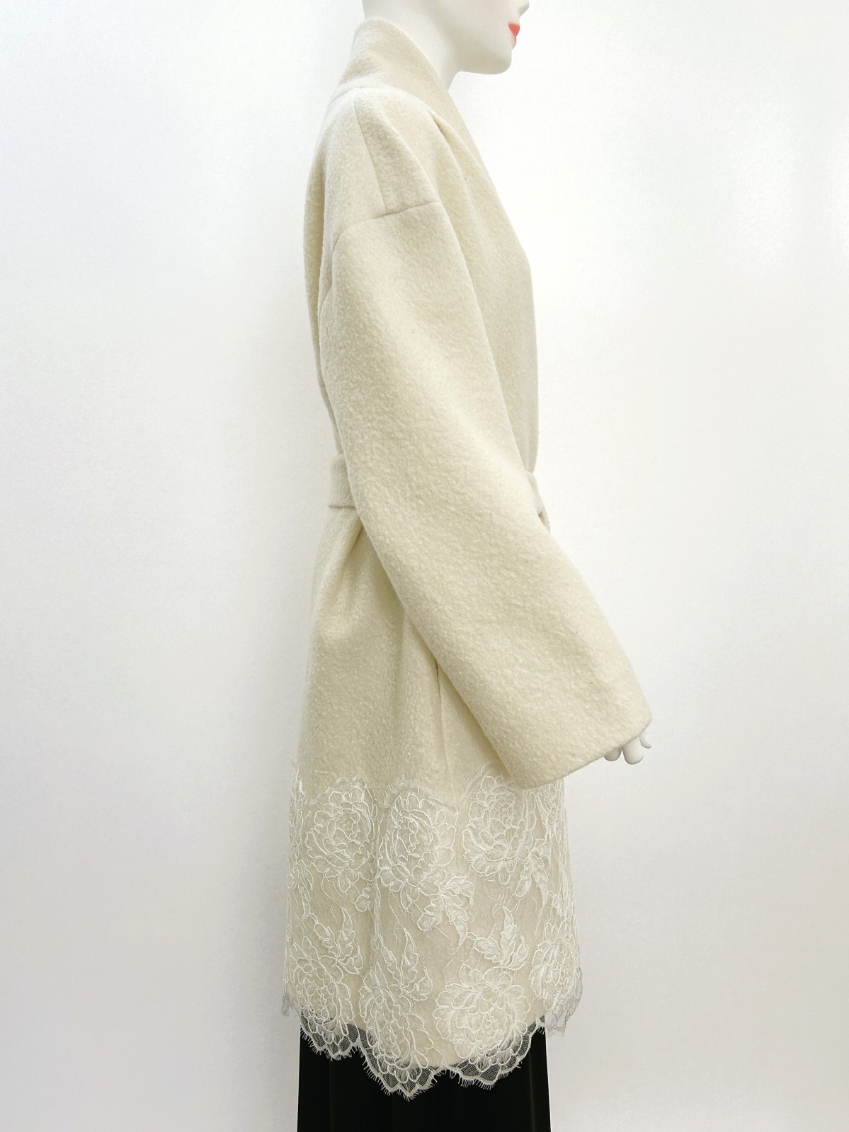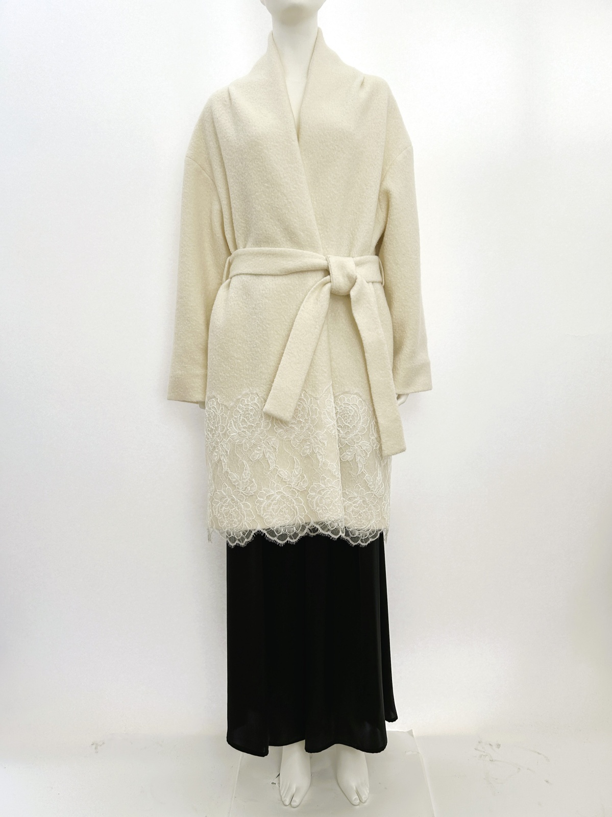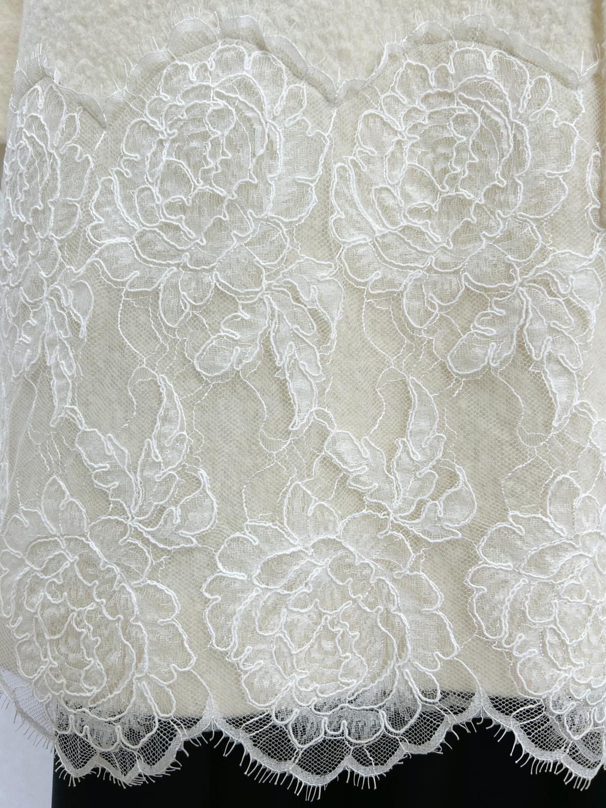 裾に施した幅広のリバーコードレースでエレガントな雰囲気に仕上げました。