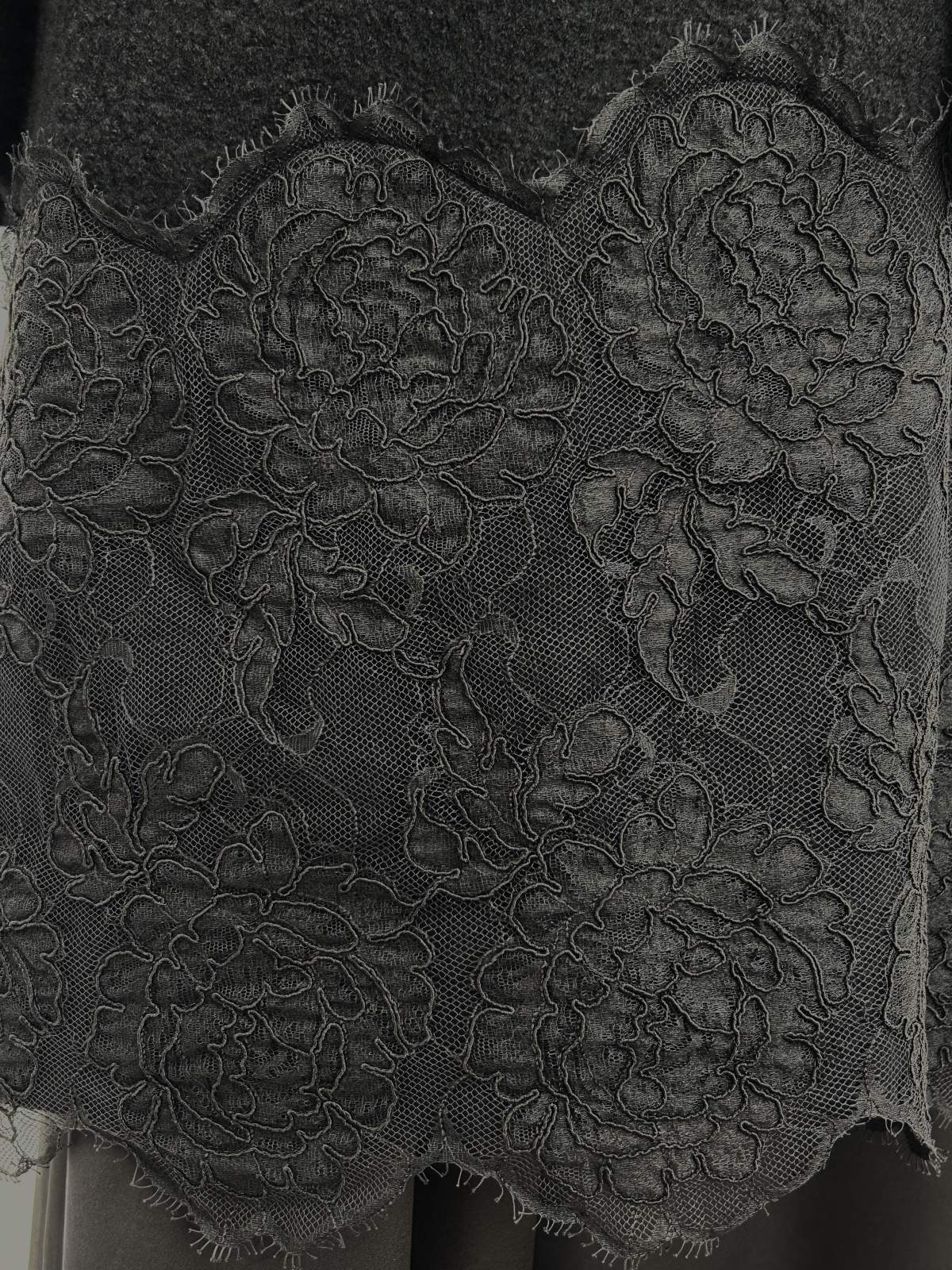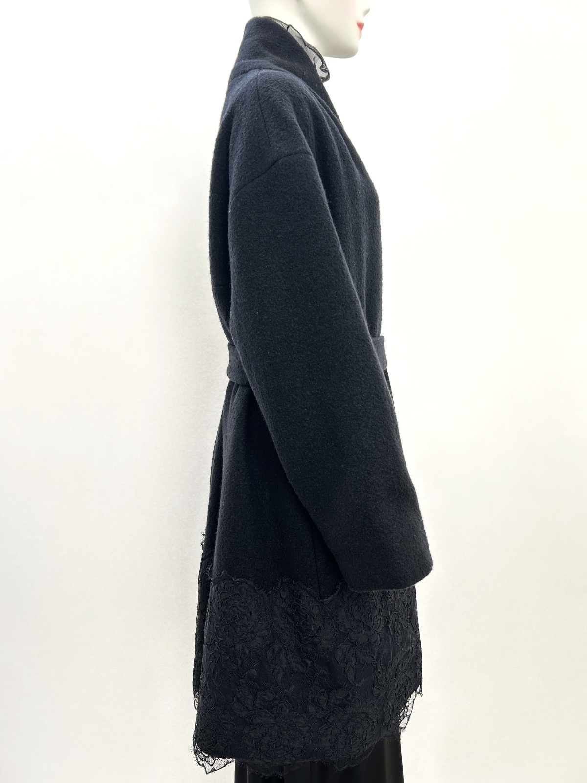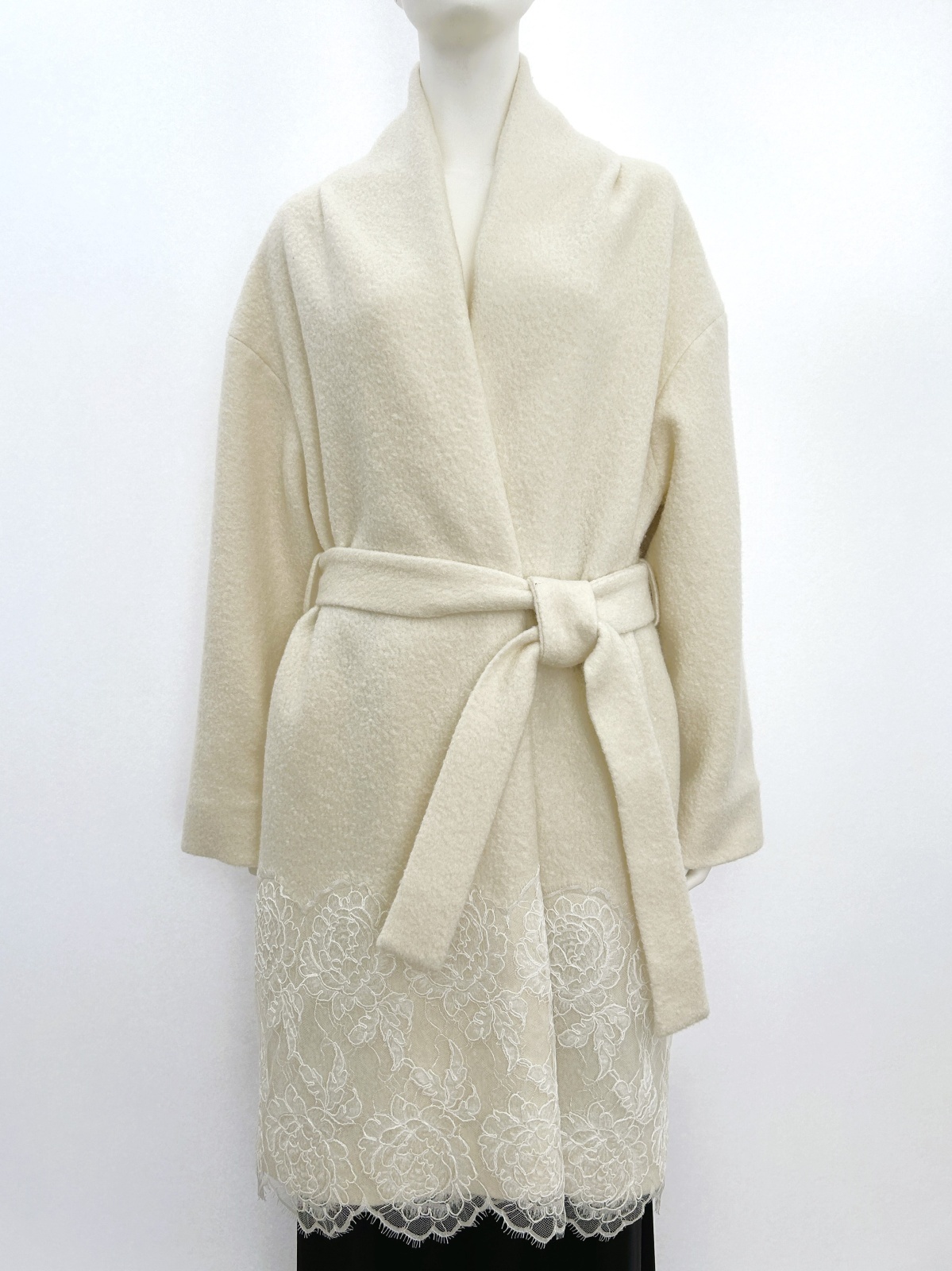 裾に施した幅広のリバーコードレースでエレガントな雰囲気に仕上げました。