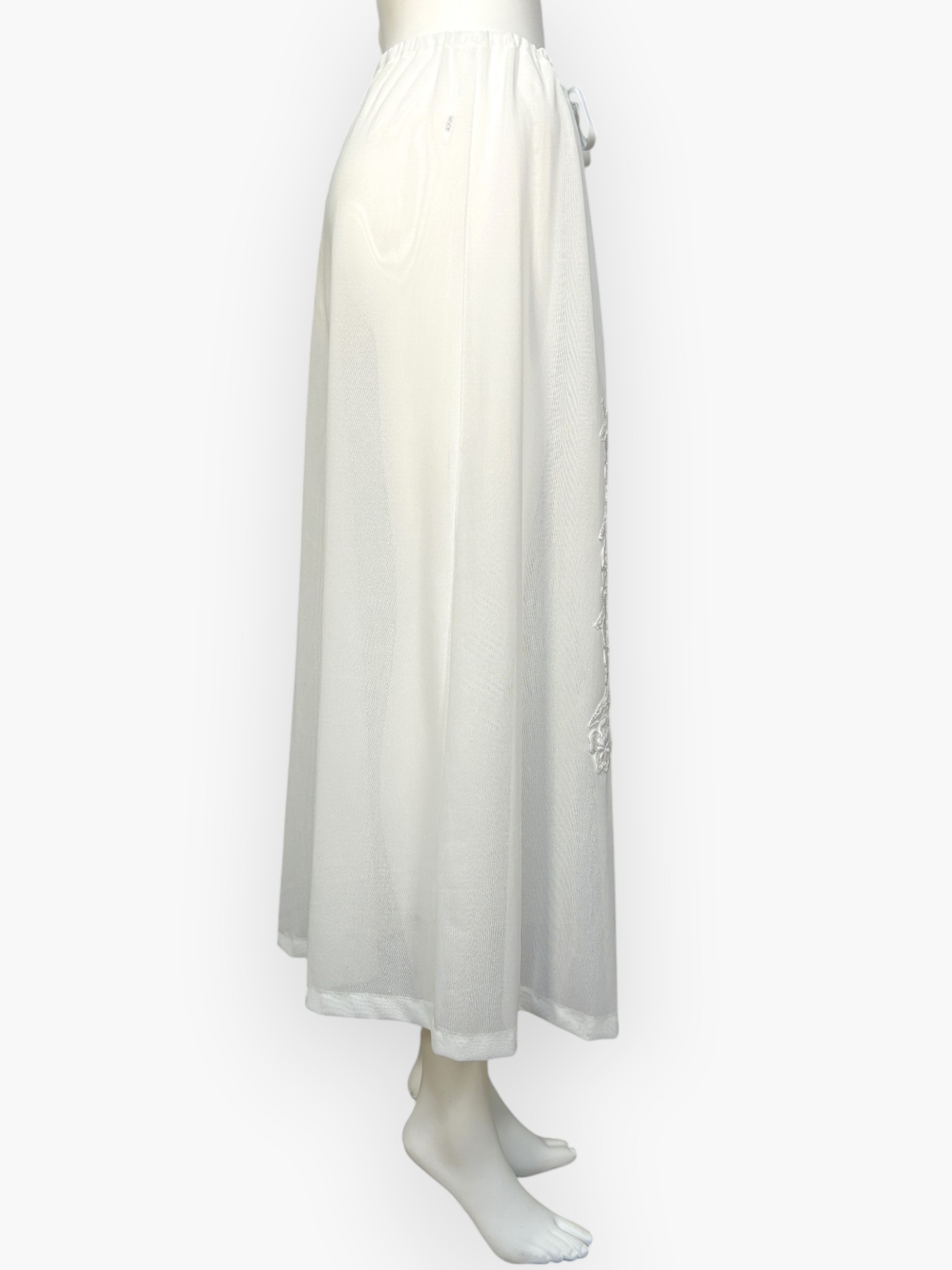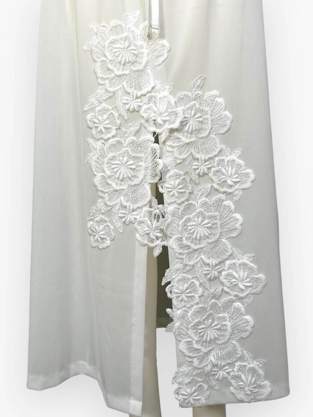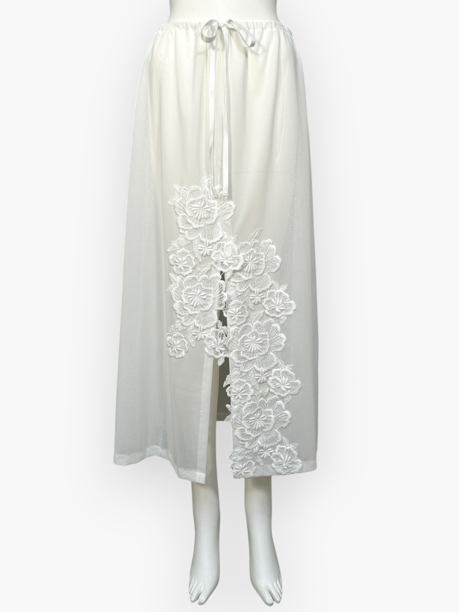 立体的なフラワーレースやウエストのリボンがポイントです。